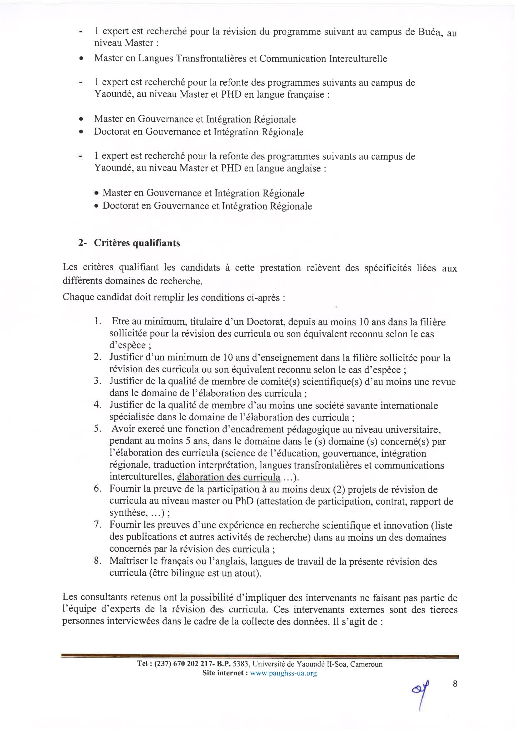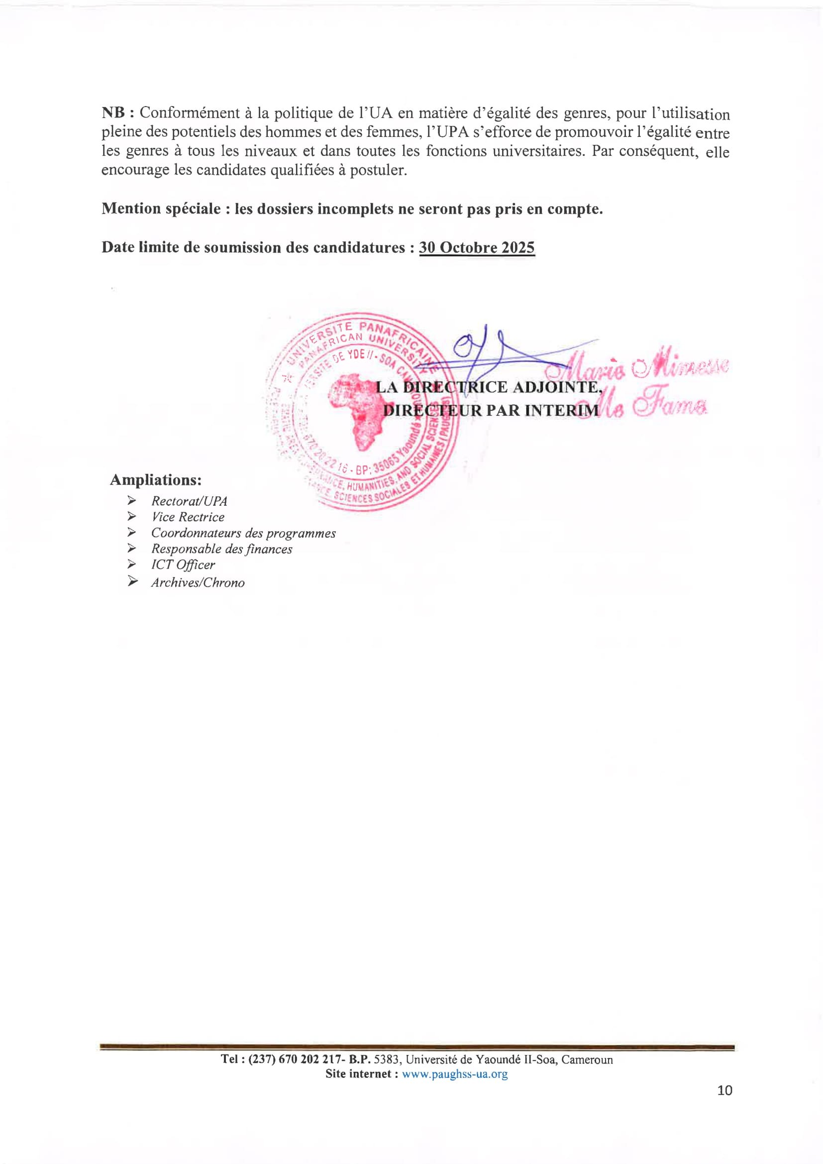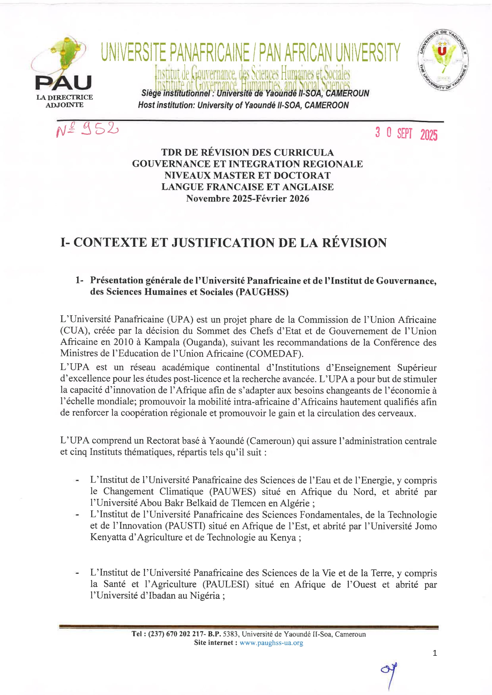 Accueil » Opportunités » Afrique » Cameroun » Appel à consultants : Révision du programme d’études PAUGHSS 2025-2026 de l’Université Panafricaine (PAU), Cameroun