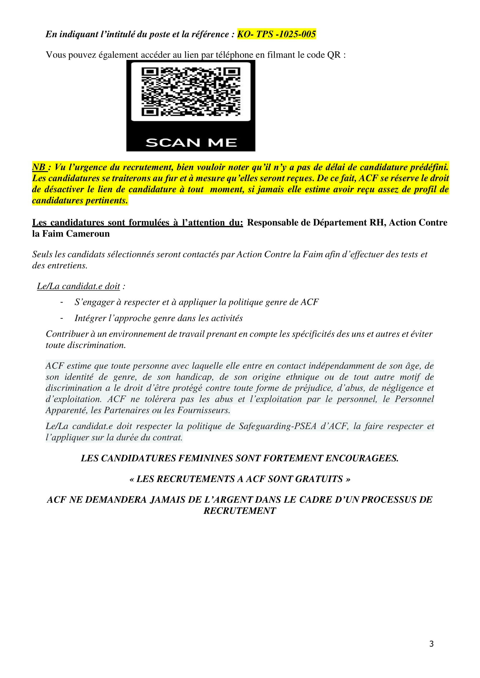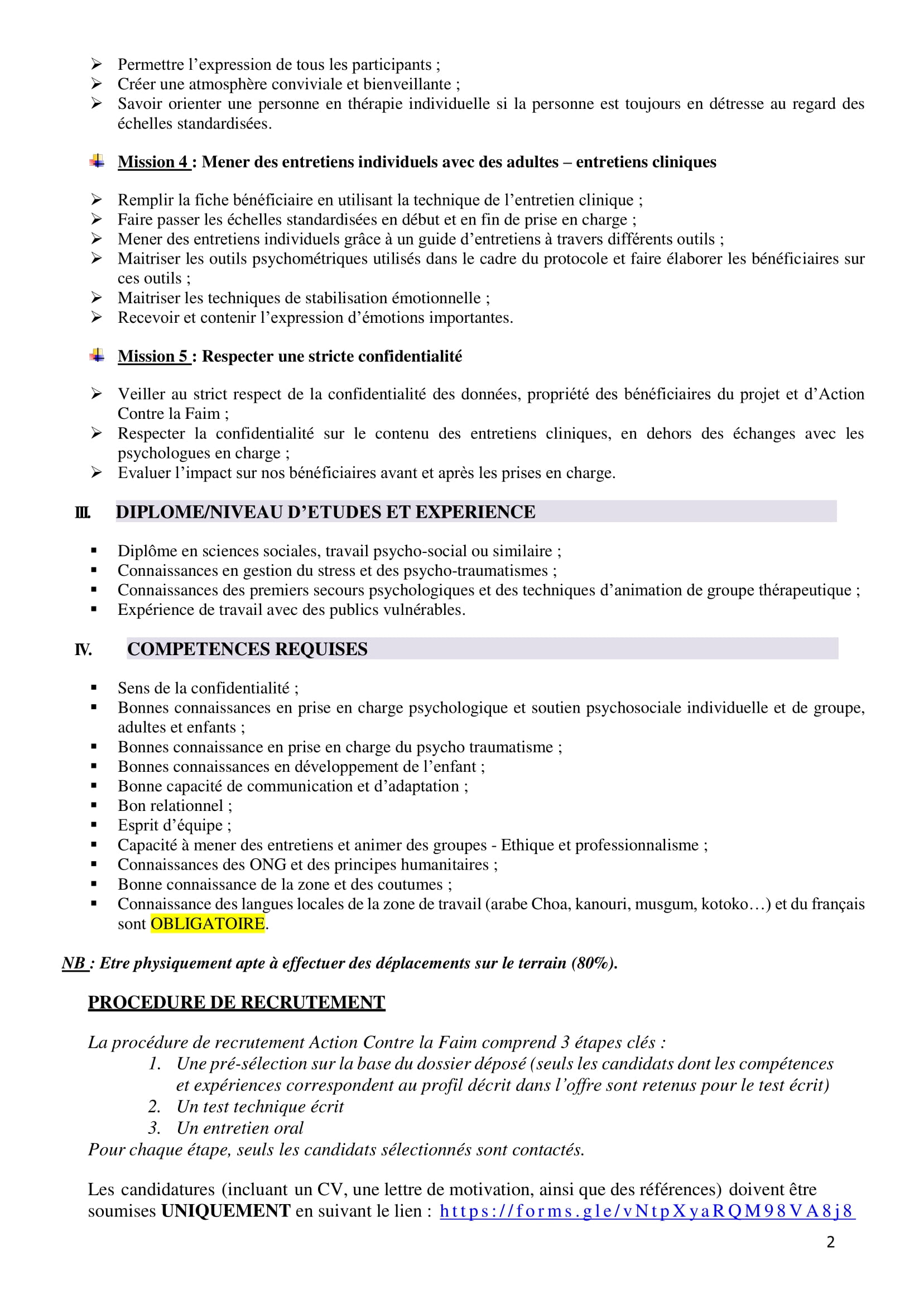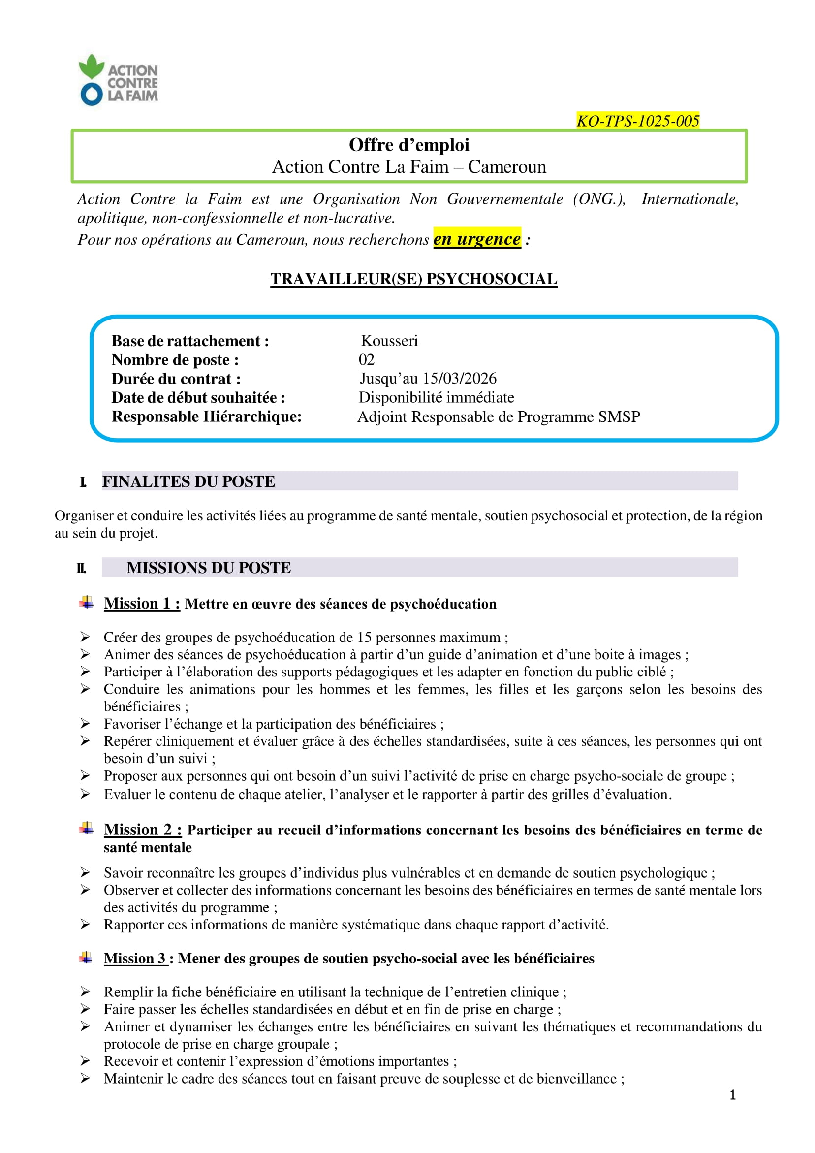 Accueil » Opportunités » Afrique » Cameroun » Urgent ! Action Contre la Faim recrute Deux (02) Travailleurs Psychosociaux à Kousseri, Cameroun