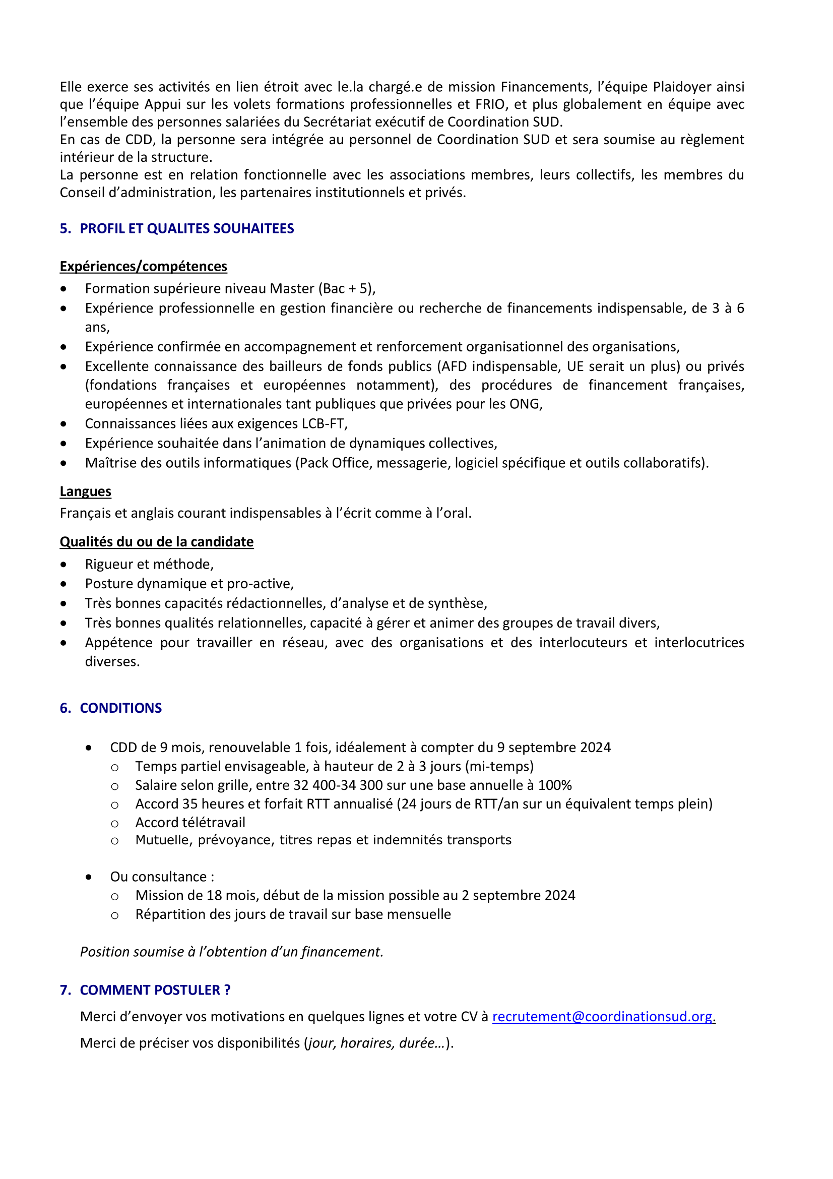 Accueil » Opportunités » Europe » France » La Coordination Sud lance un appel à candidature pour la Mission d’appui et renforcement des capacités des OSC-Conformité, Paris, France