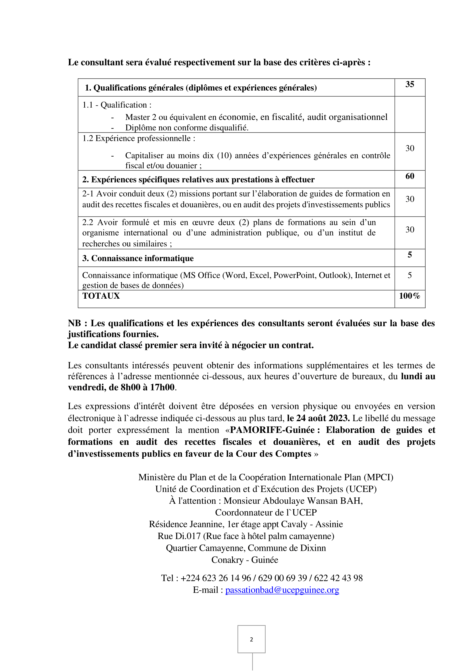 Accueil » Opportunités » Afrique » Guinée » Avis à manifestation d’intérêt pour un service de consultance basé en Guinée.