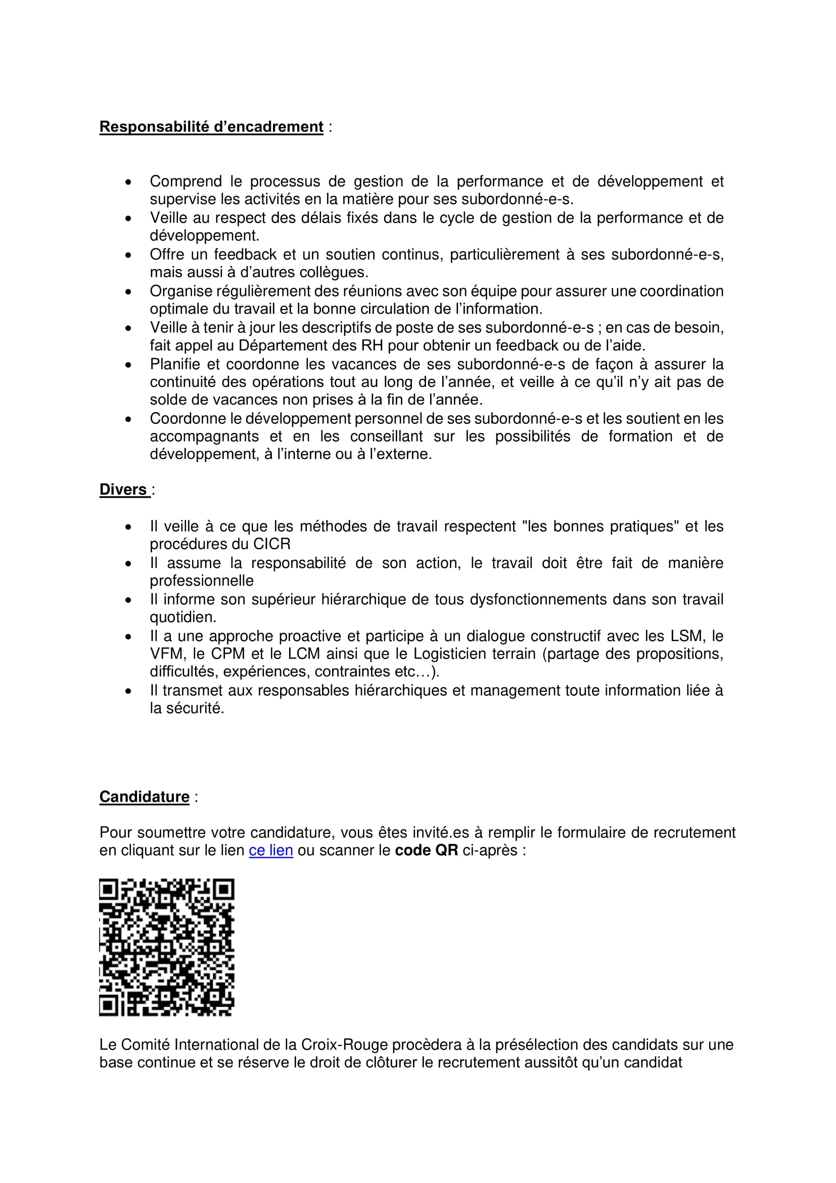 Accueil » Opportunités » Afrique » Mali » Le Comité International de la Croix-Rouge (CICR) recrute un(e) Logisticien(e) Site Manager 2, poste basé à Mopti (Mali)
