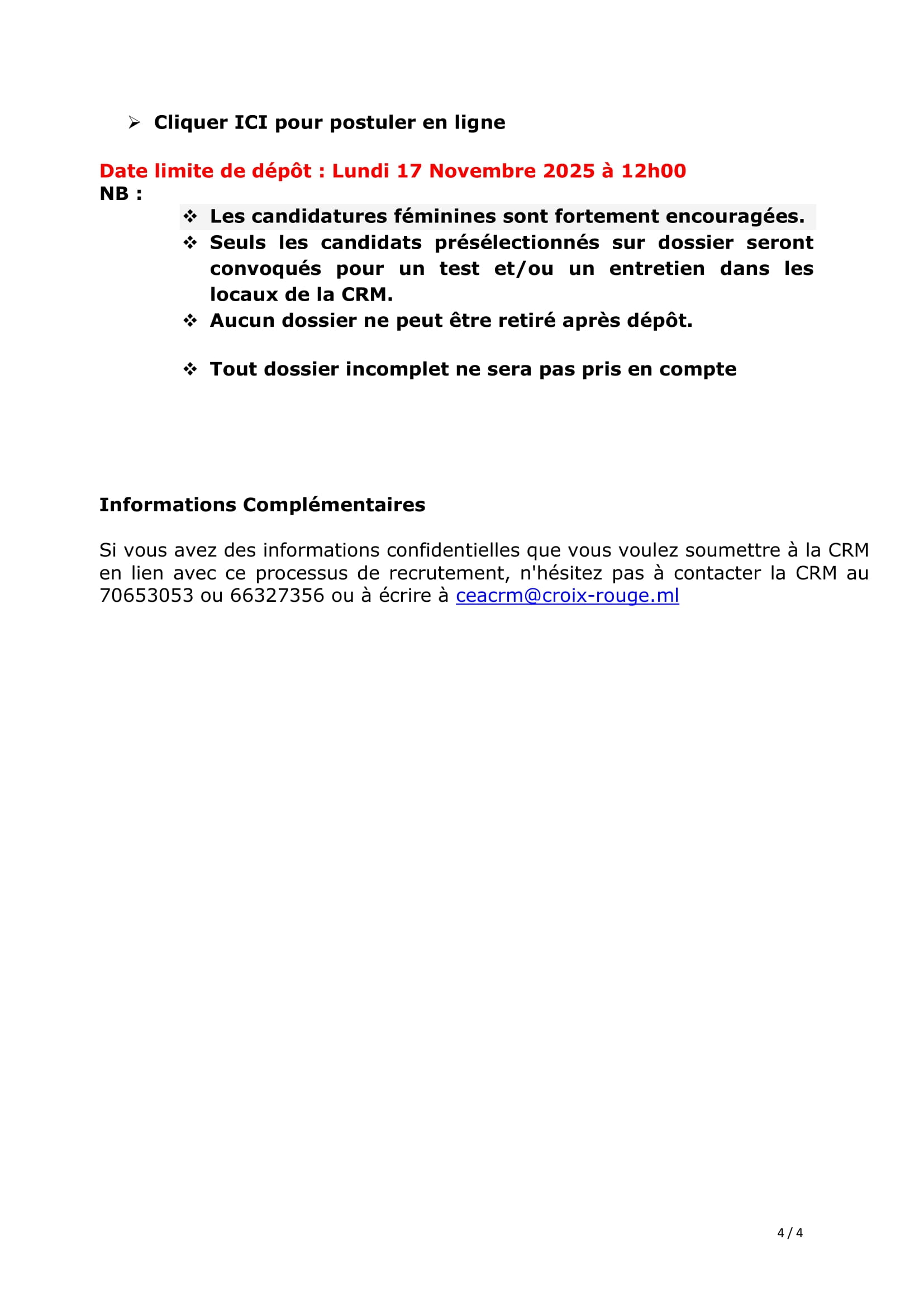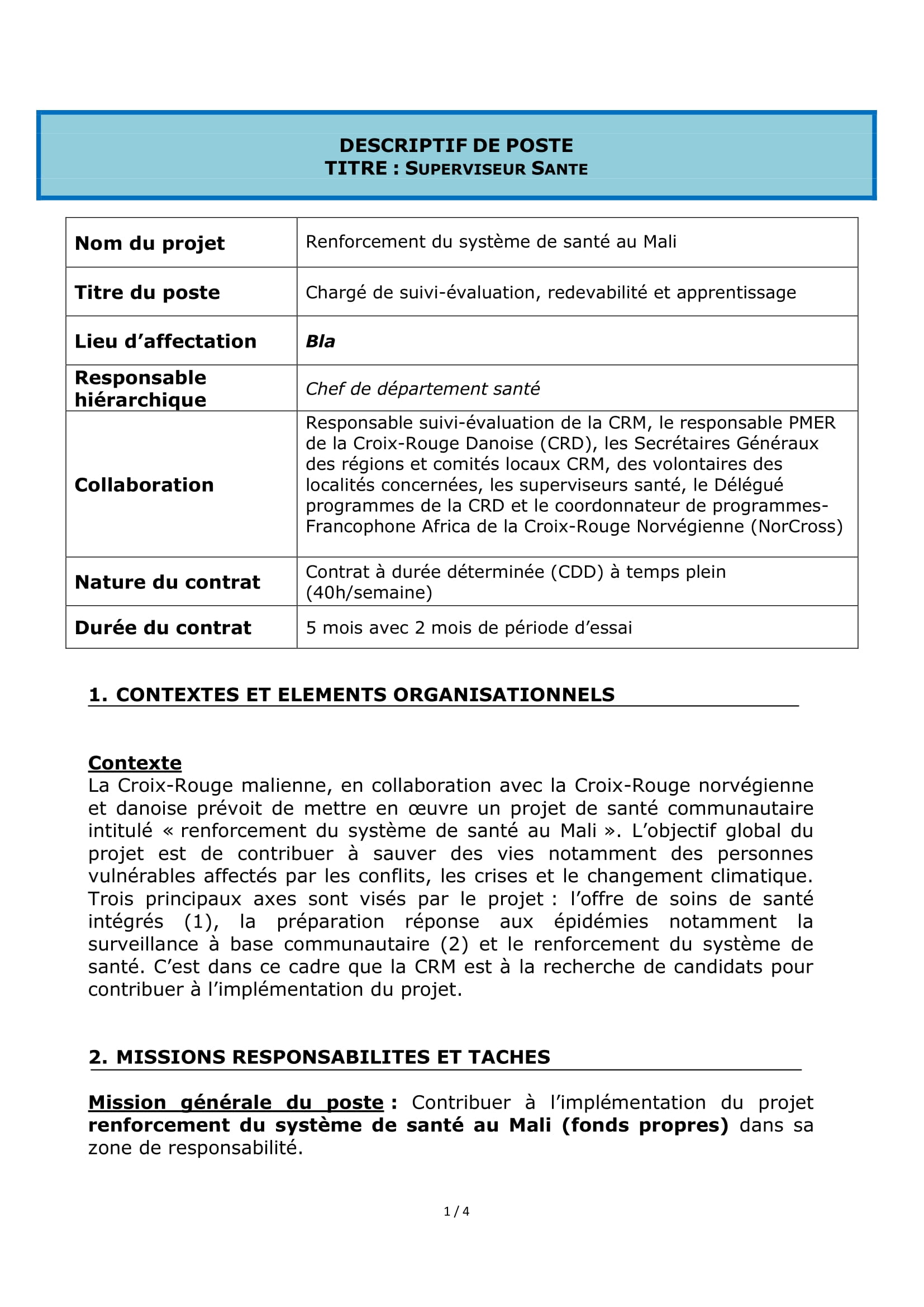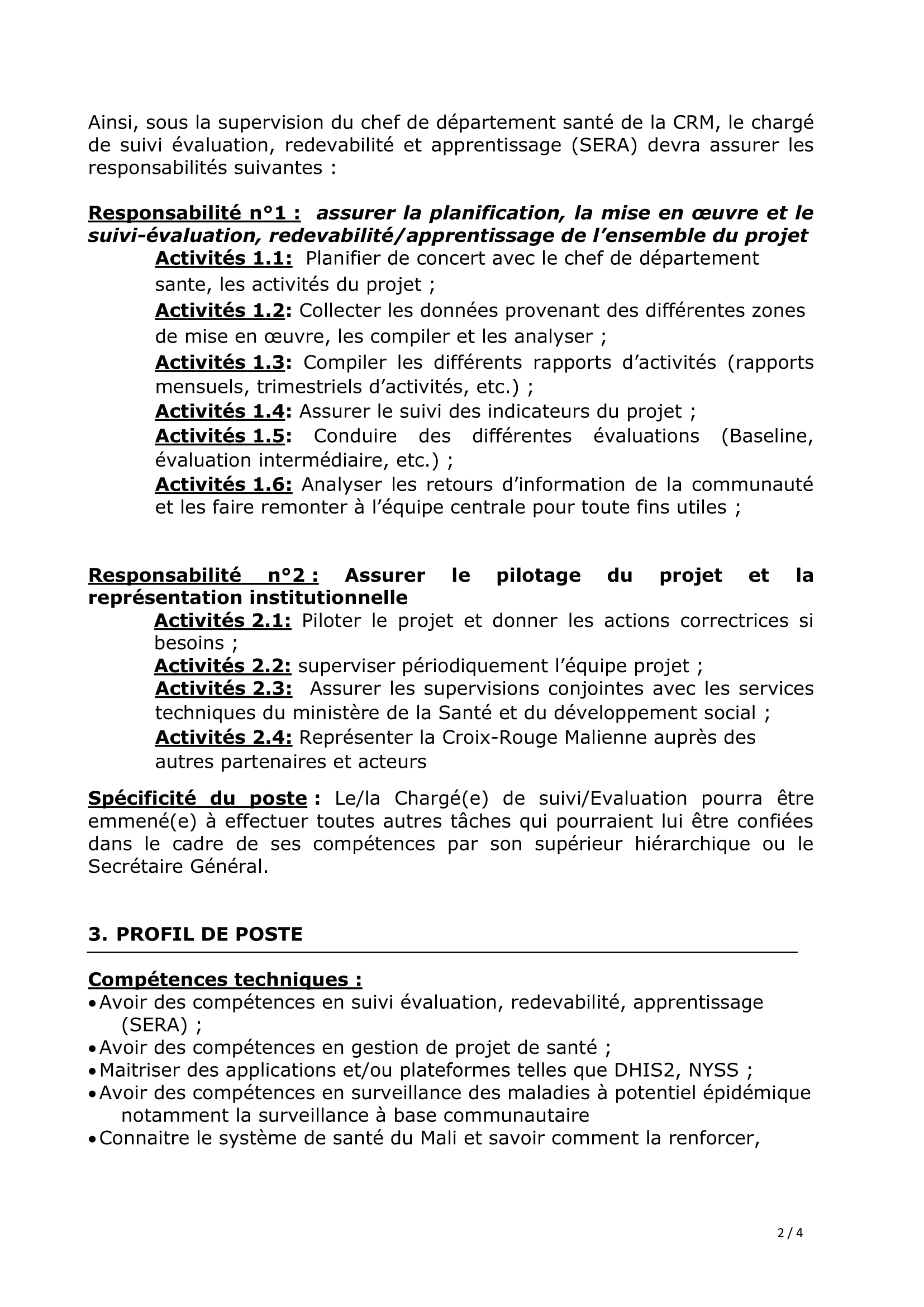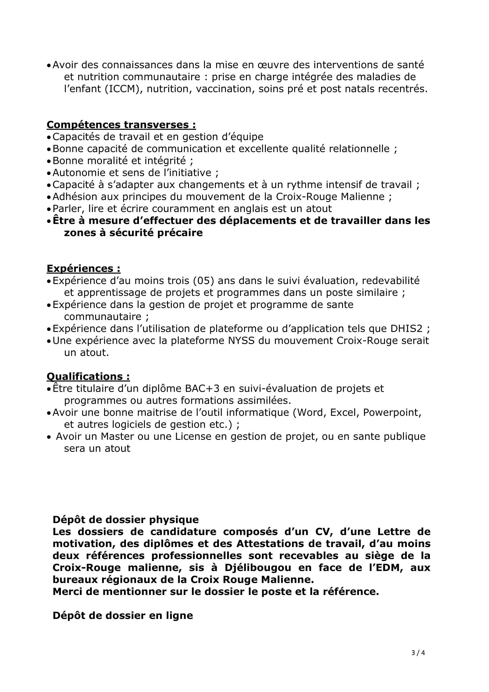 Accueil » Opportunités » Afrique » Mali » La Croix-Rouge Malienne recrute un Chargé de suivi-évaluation, redevabilité et apprentissage