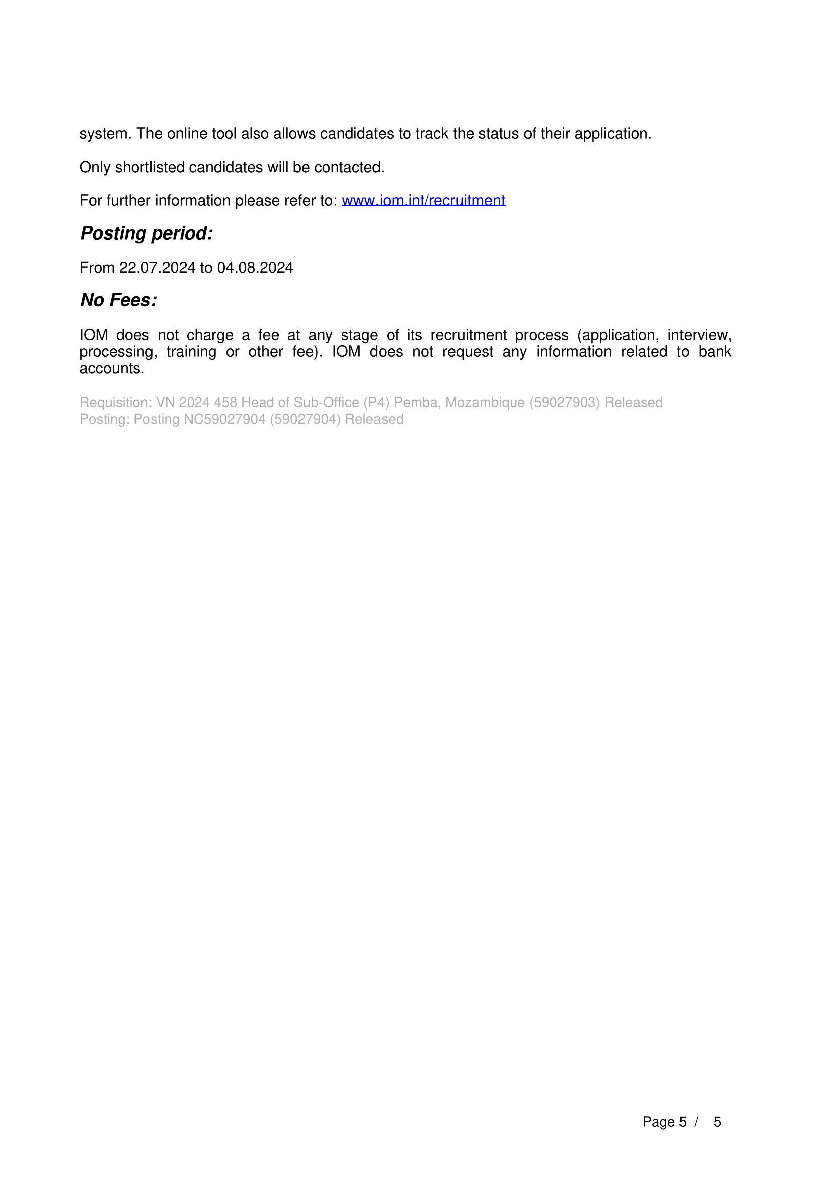Accueil » Opportunités » Afrique » Mozambique » L’Organisation internationale pour les migrations(OIM) recrute un Chef d’antenne, Pemba, Mozambique