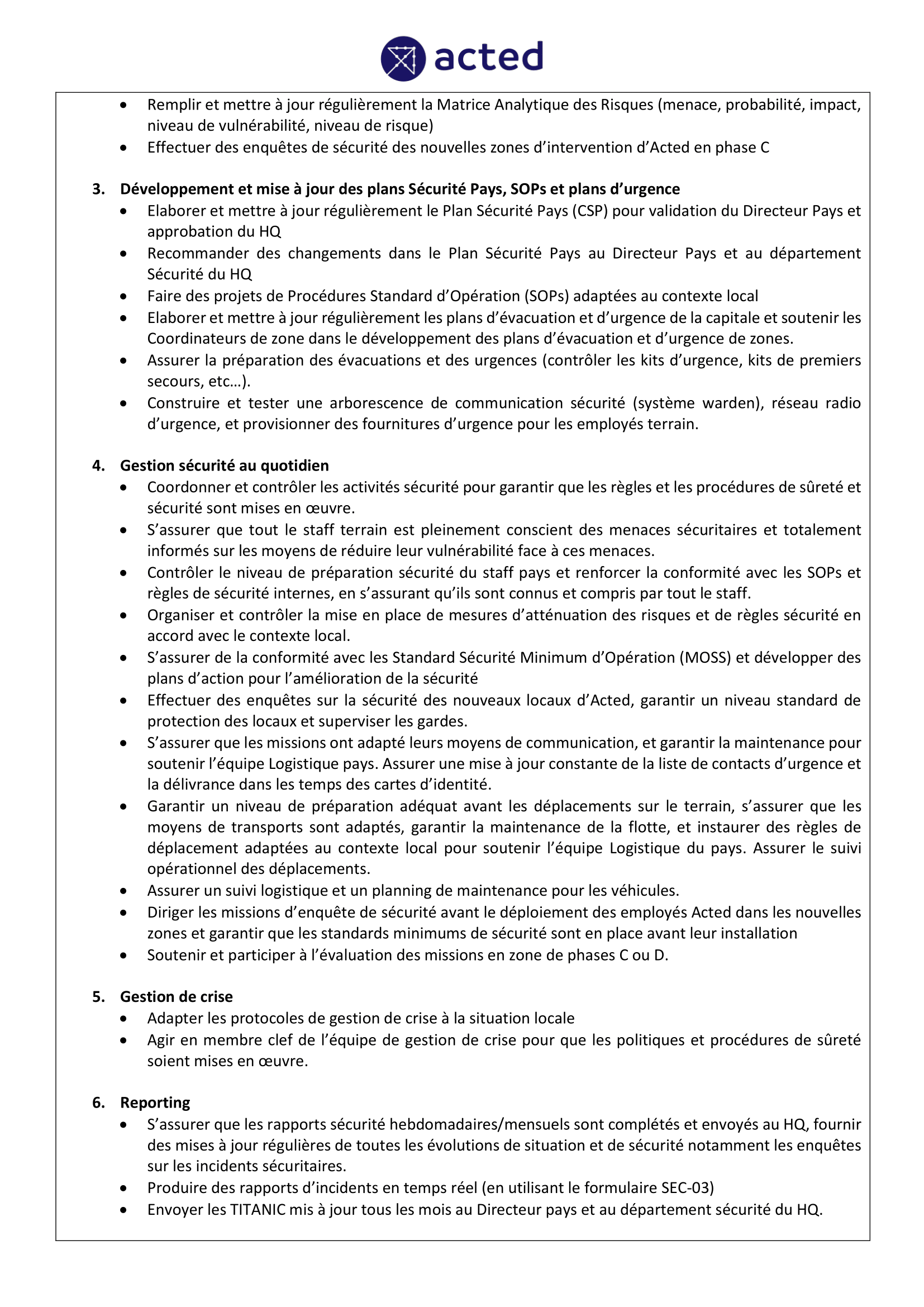 Accueil » Opportunités » Afrique » Niger » Acted recrute un Responsable Sécurité Pays, Niamey, Niger