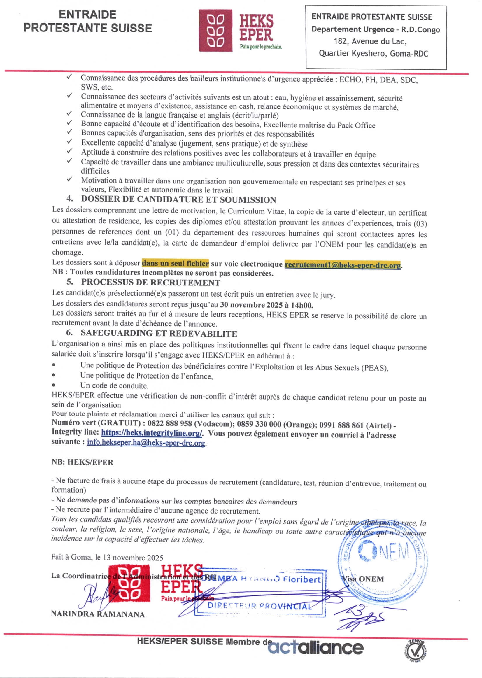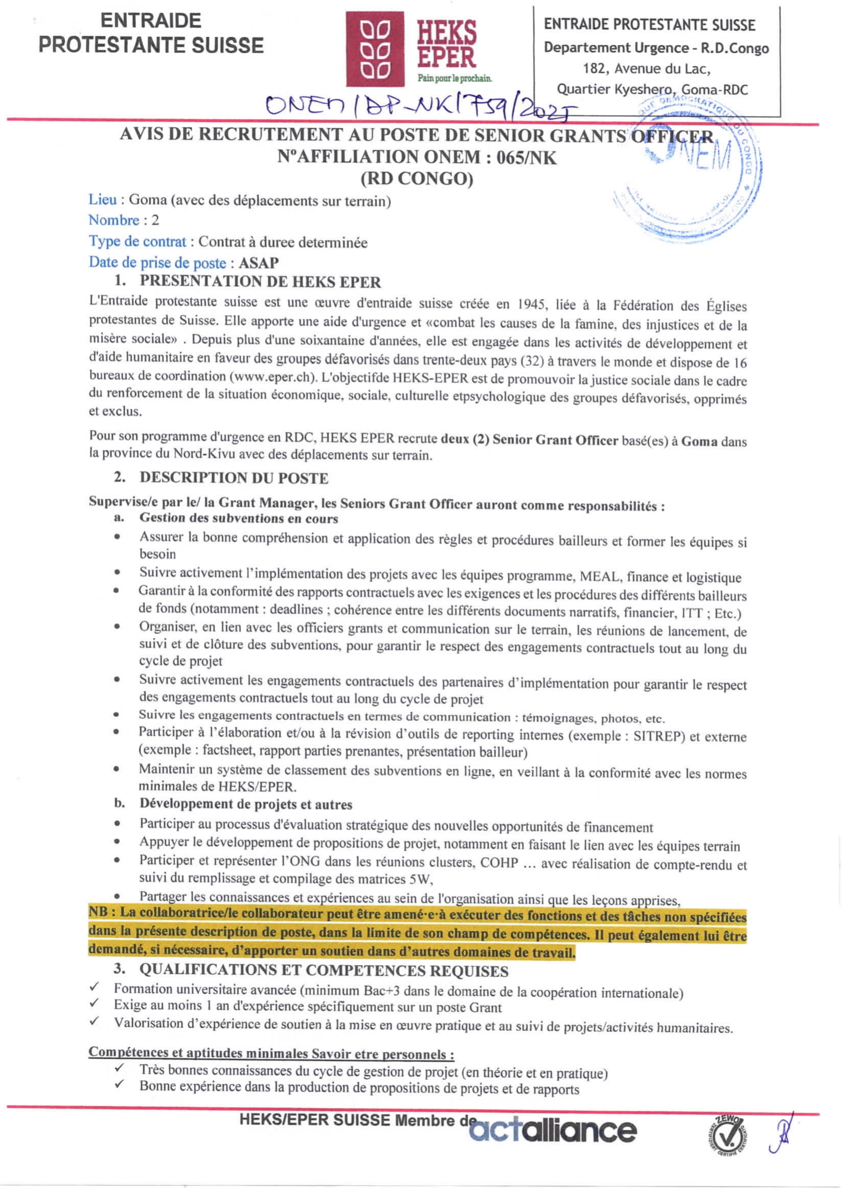 Accueil » Opportunités » Afrique » RD Congo » HEKS EPER recrute Deux (02) Senior Grant Officer basés à Goma, RDC