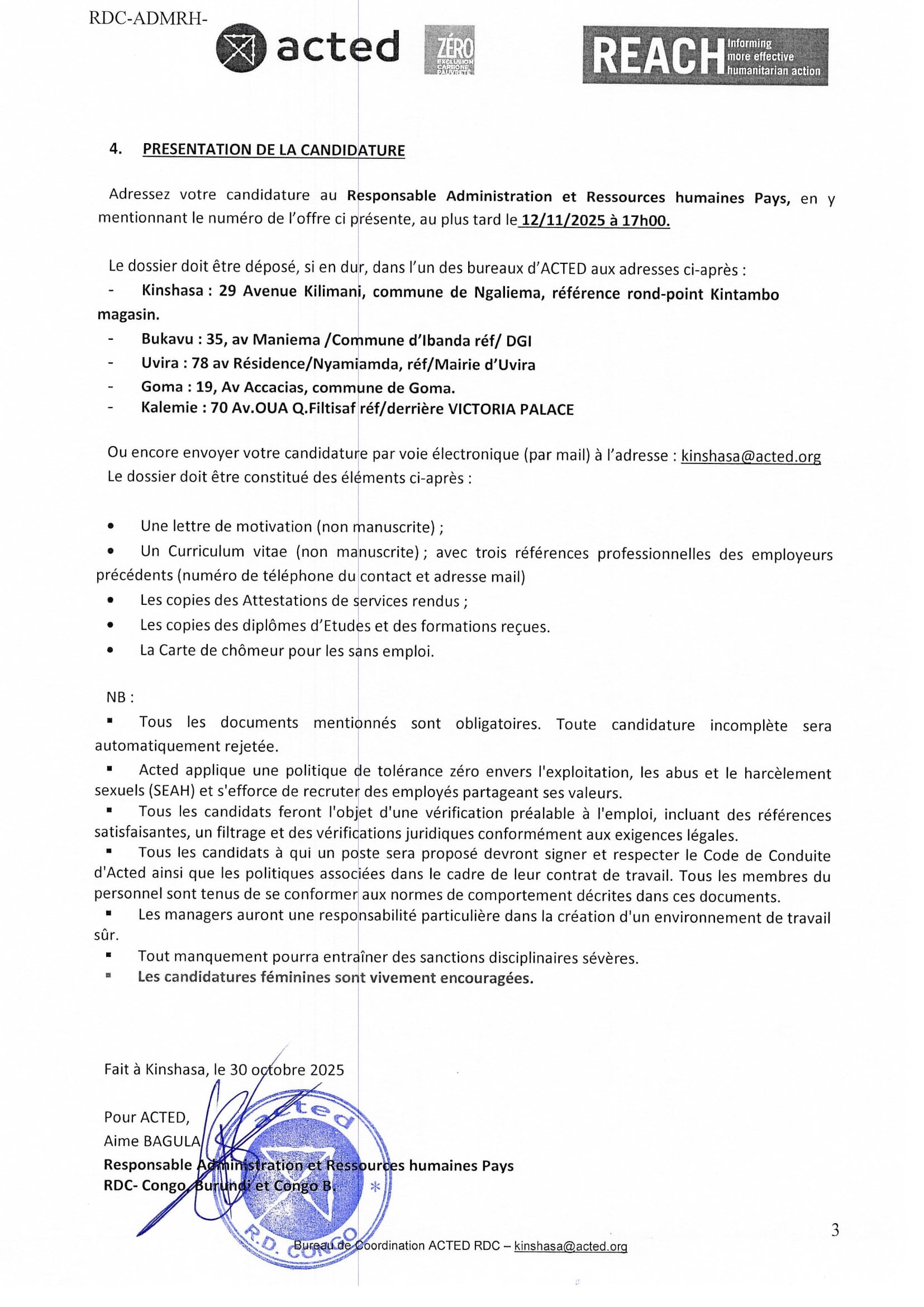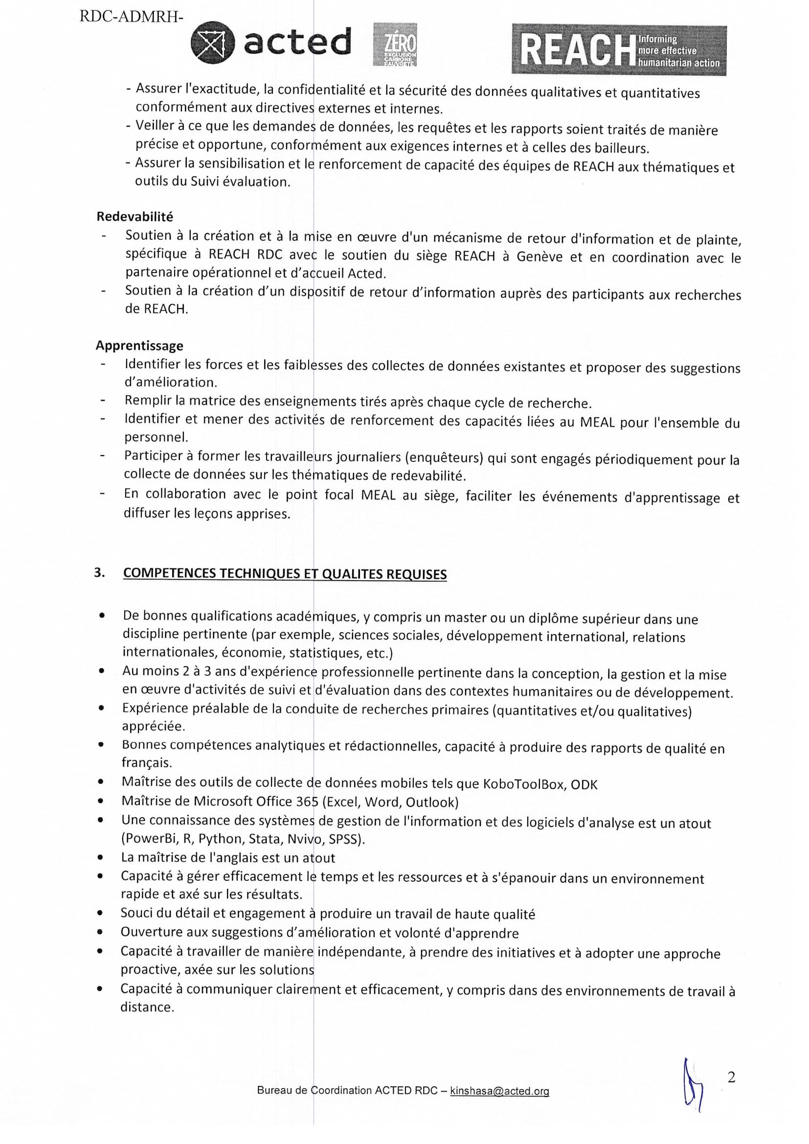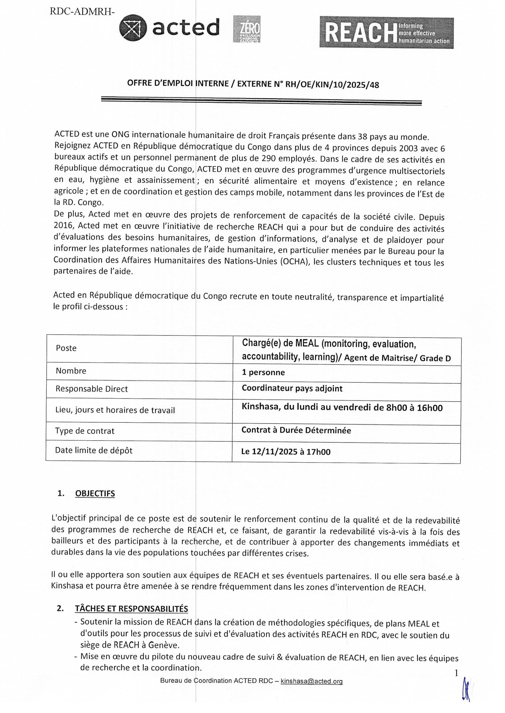 Accueil » Opportunités » Afrique » RD Congo » Acted recrute un(e) Chargé(e) MEAL basé à Kinshasa, RDC