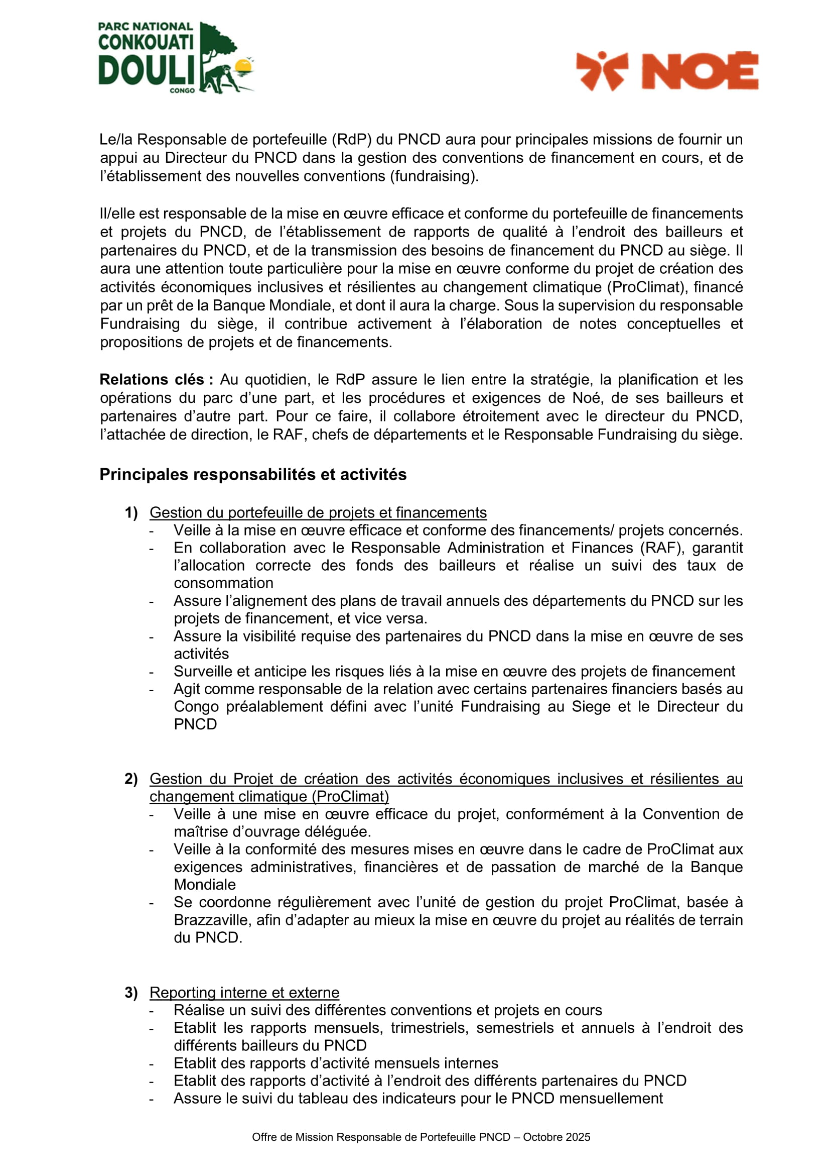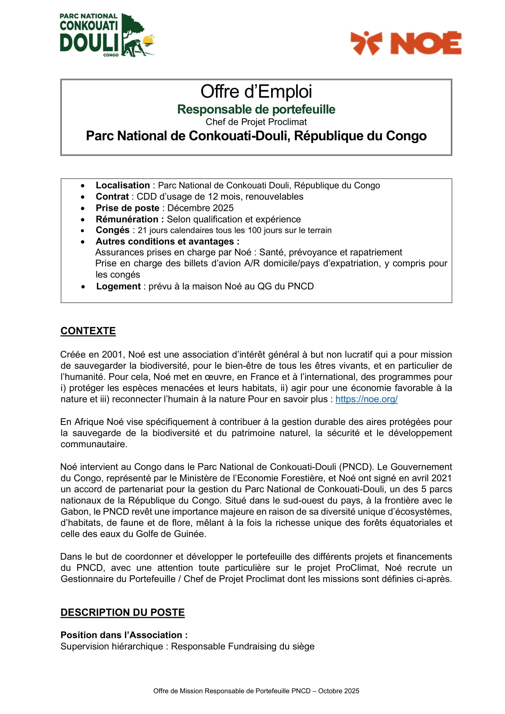 Noé recrute un Responsable de Portefeuille (H/F), République du Congo