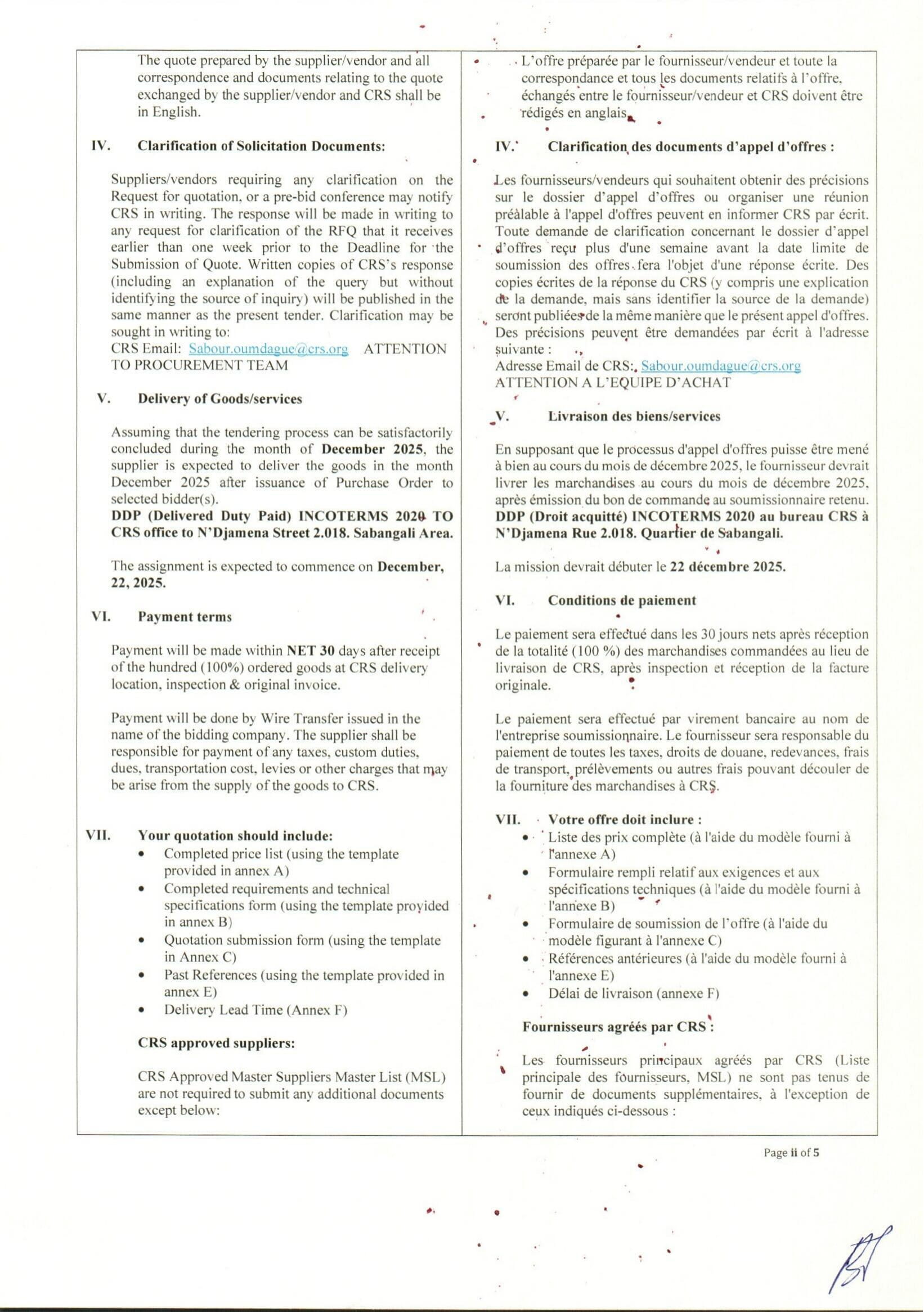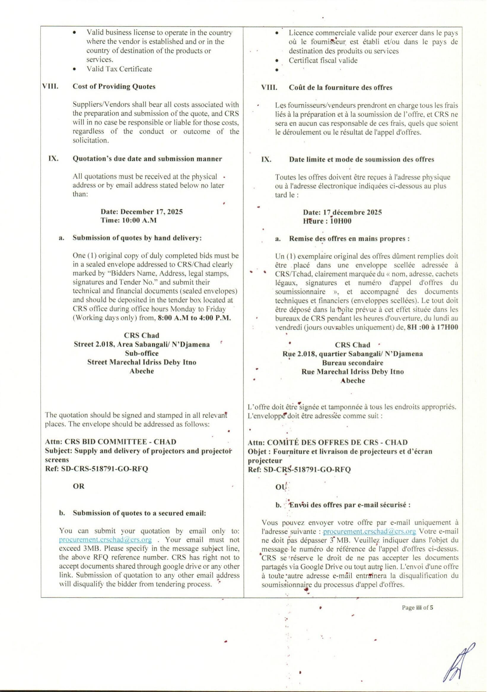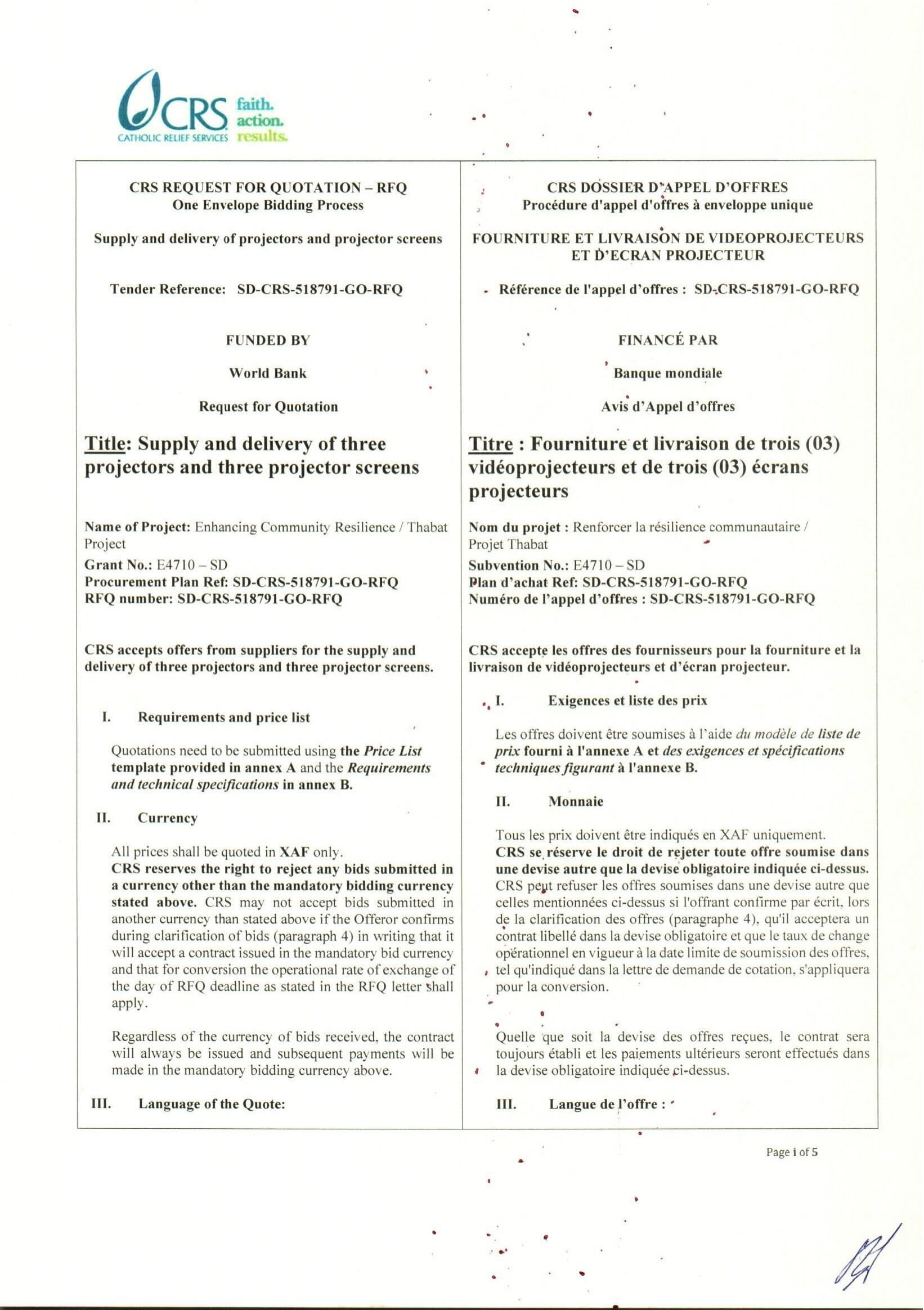 Accueil » Opportunités » Afrique » Tchad » Catholic Relief Services (CRS) lance un avis d’appel d’offres pour la Fourniture et la livraison de vidéoprojecteurs et d’écran projecteur, Tchad