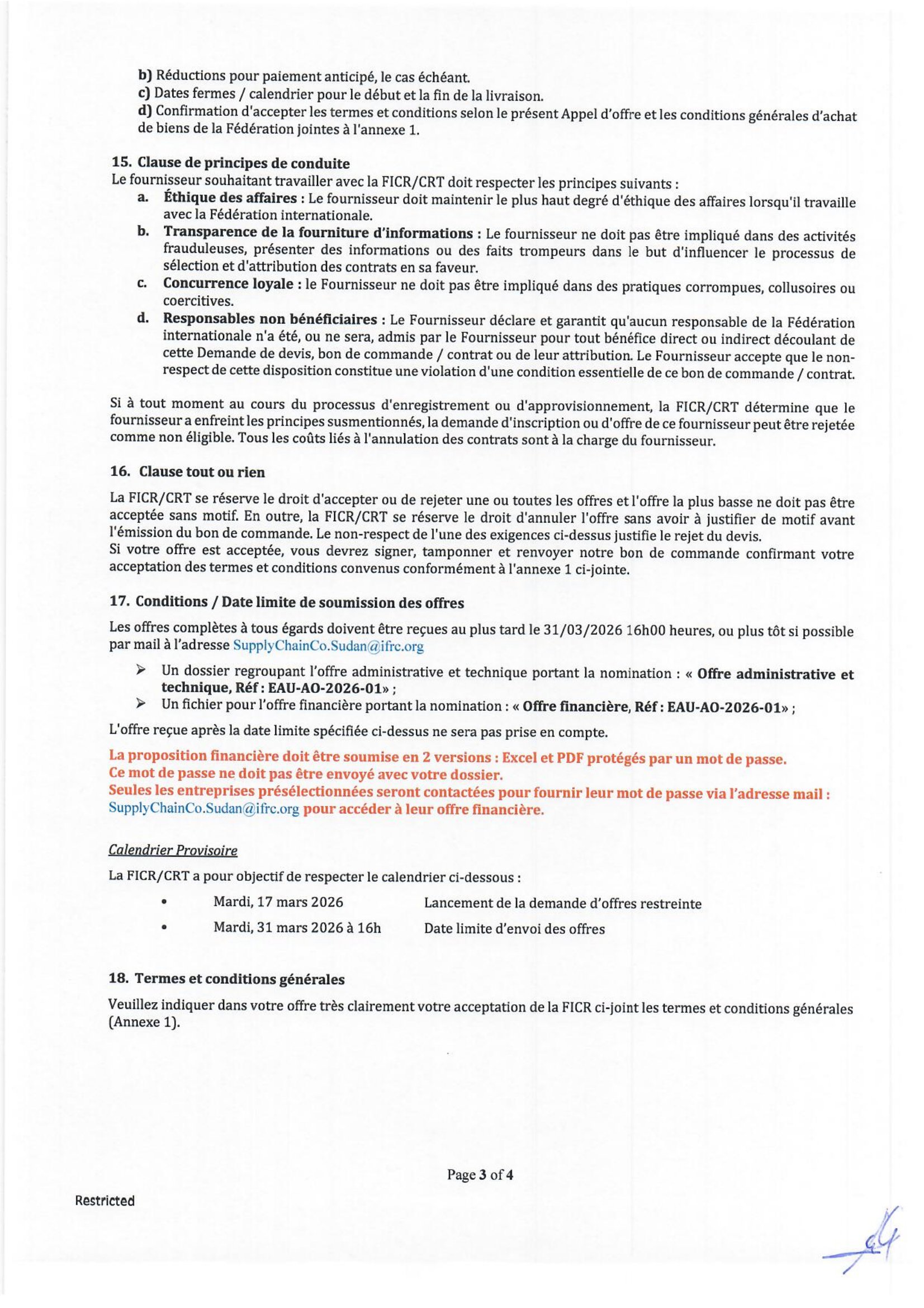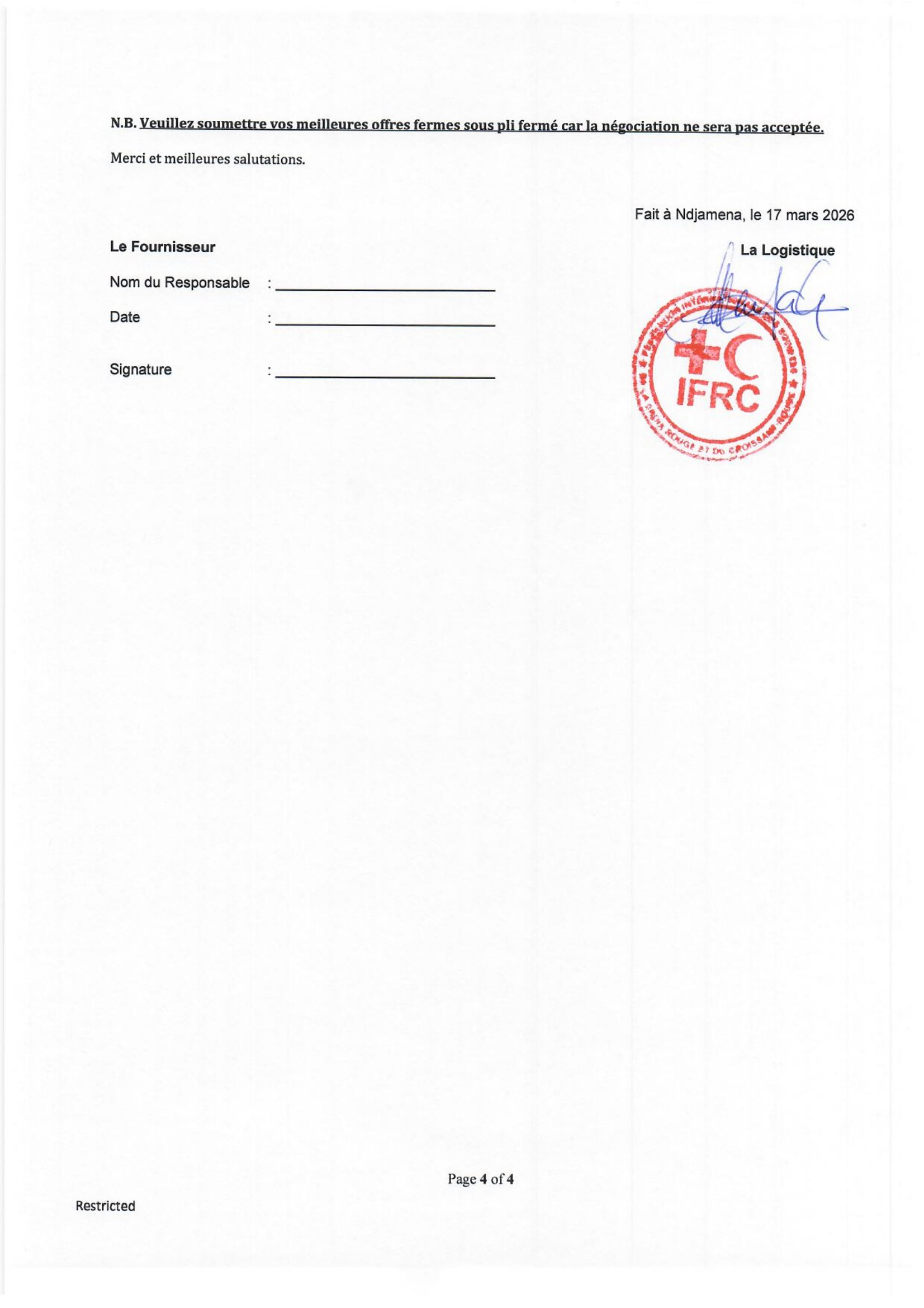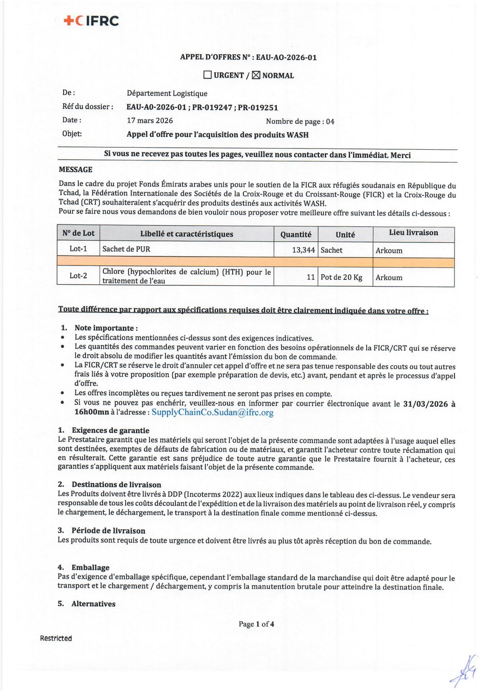 La FICR et la Croix-Rouge du Tchad lancent un appel d’offres pour la sélection d’une Entreprise pour l’acquisition des produits WASH (Eau, Hygiène et Assainissement)
