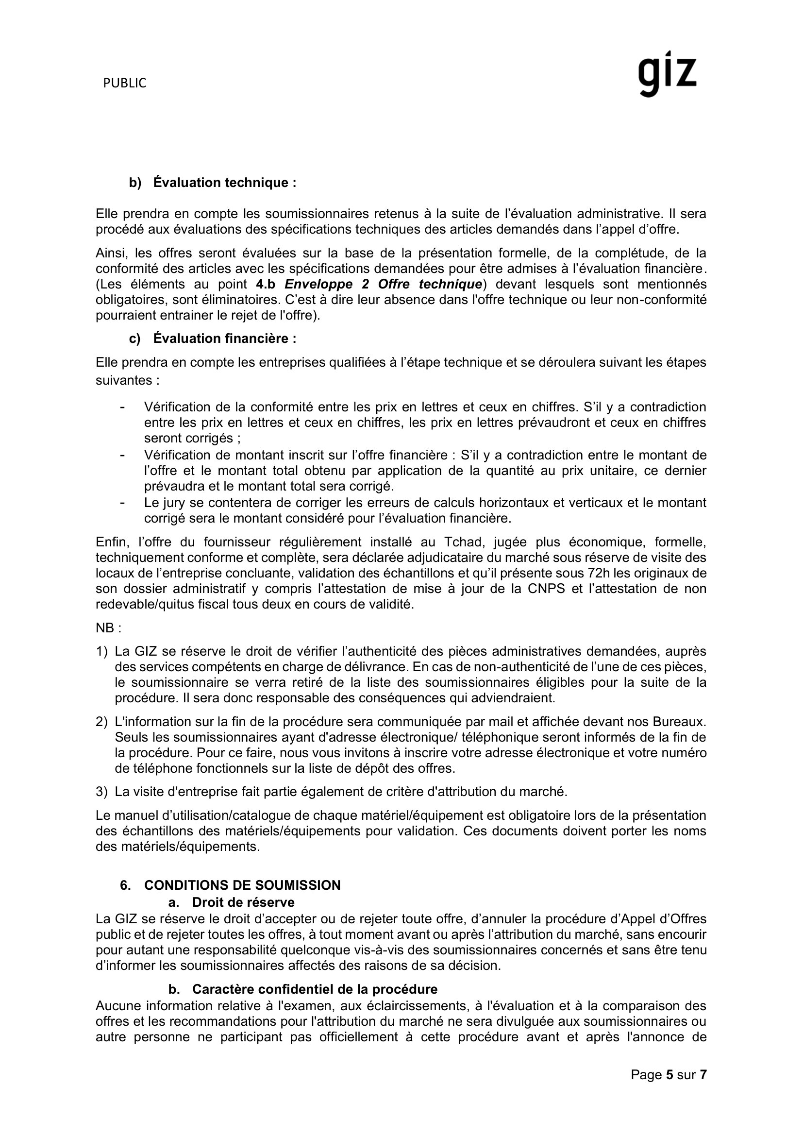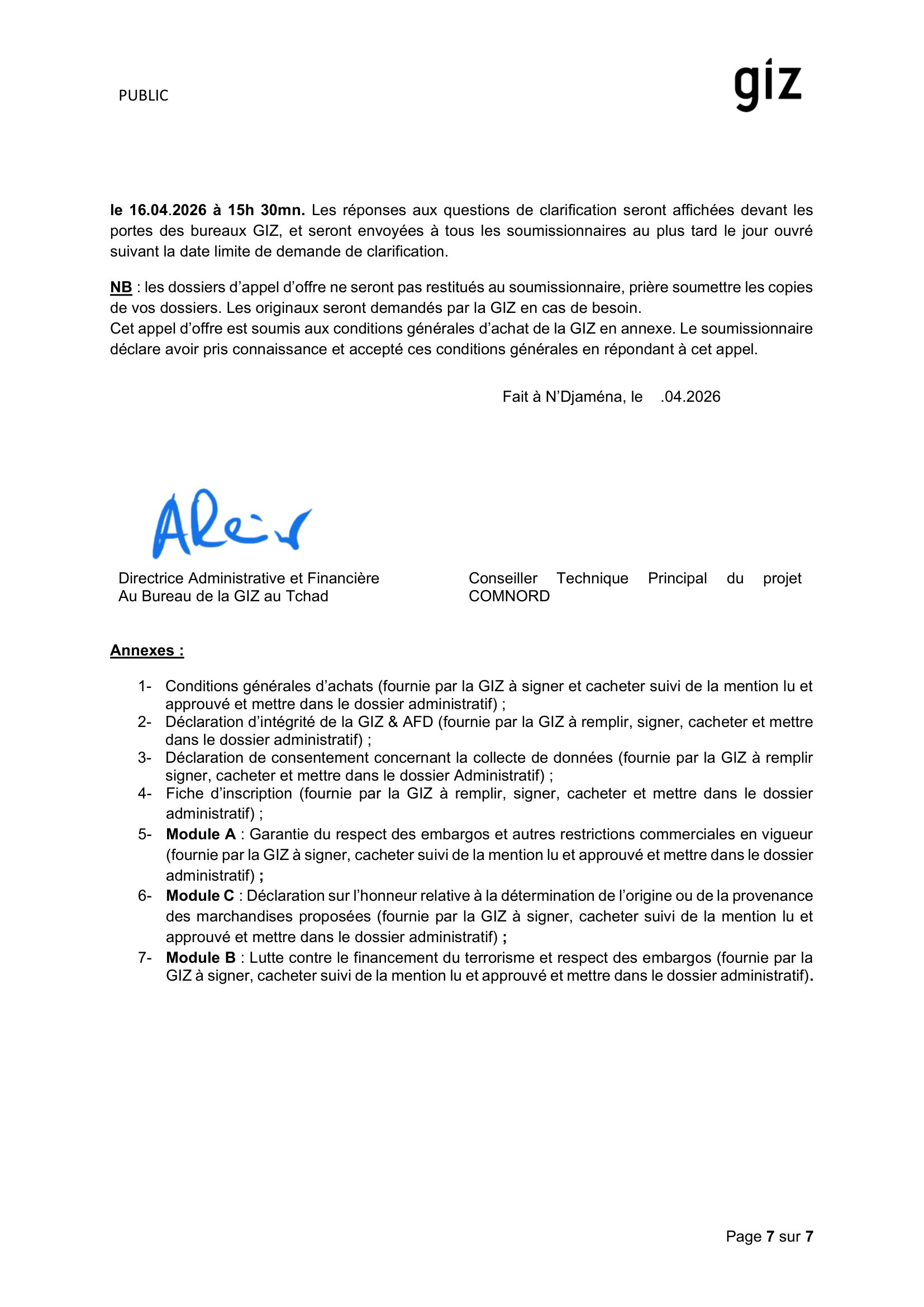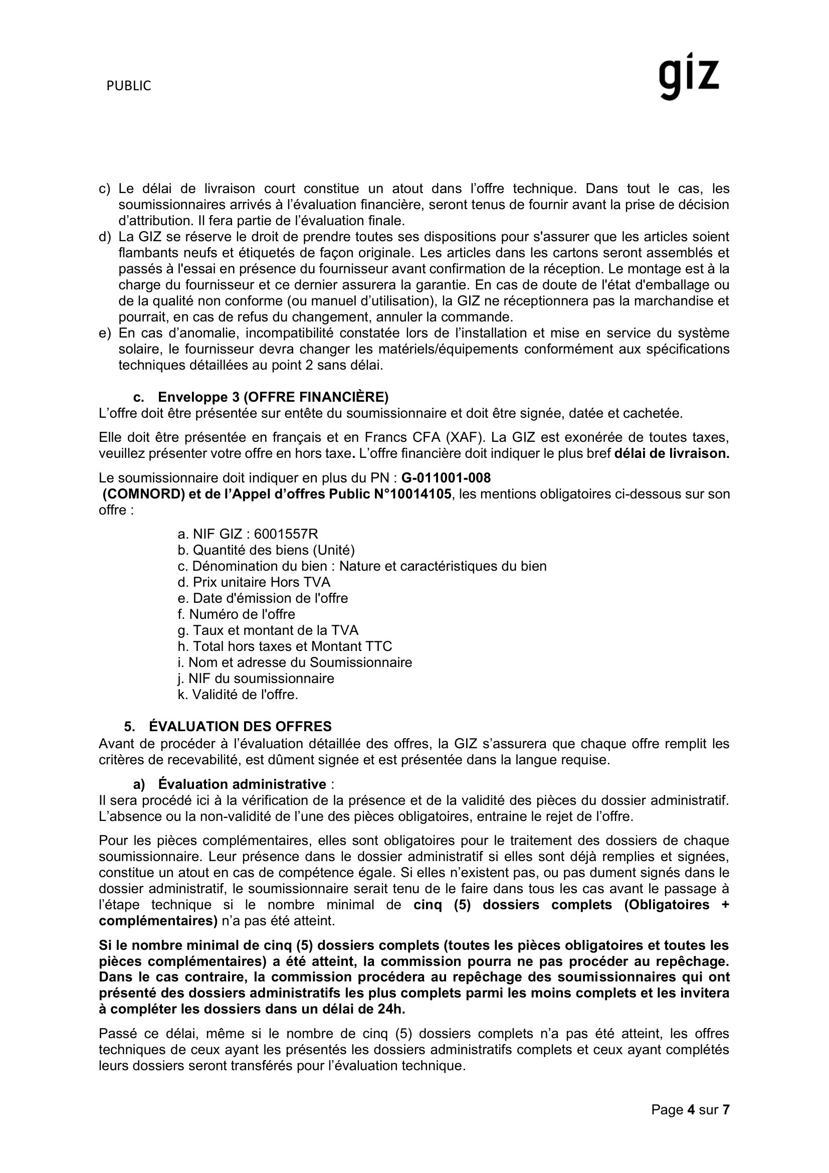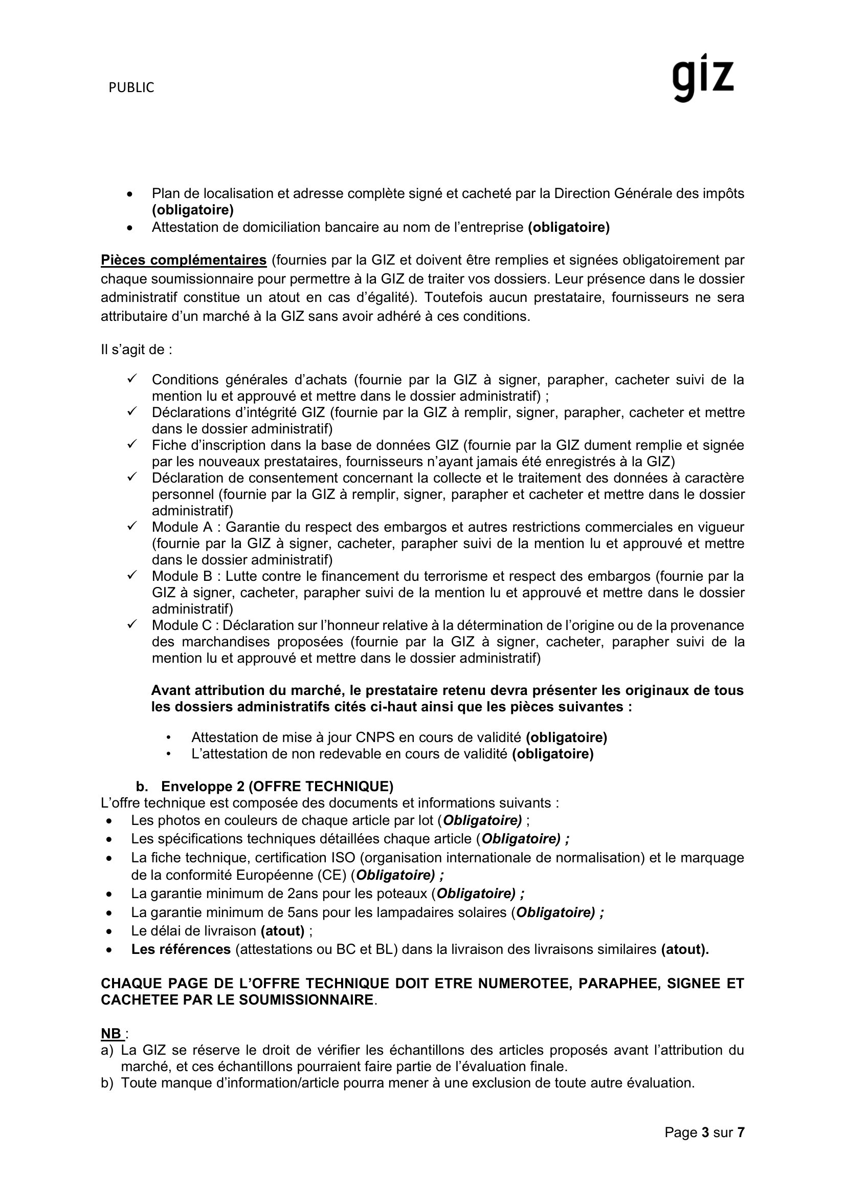 Accueil » Opportunités » Afrique » Tchad » La GIZ lance un appel d’offres pour la sélection d’entreprises et d’établissements qualifiés en vue de la fourniture et de la livraison d’éclairage public (lampadaires) dans le cadre du projet COMNORD