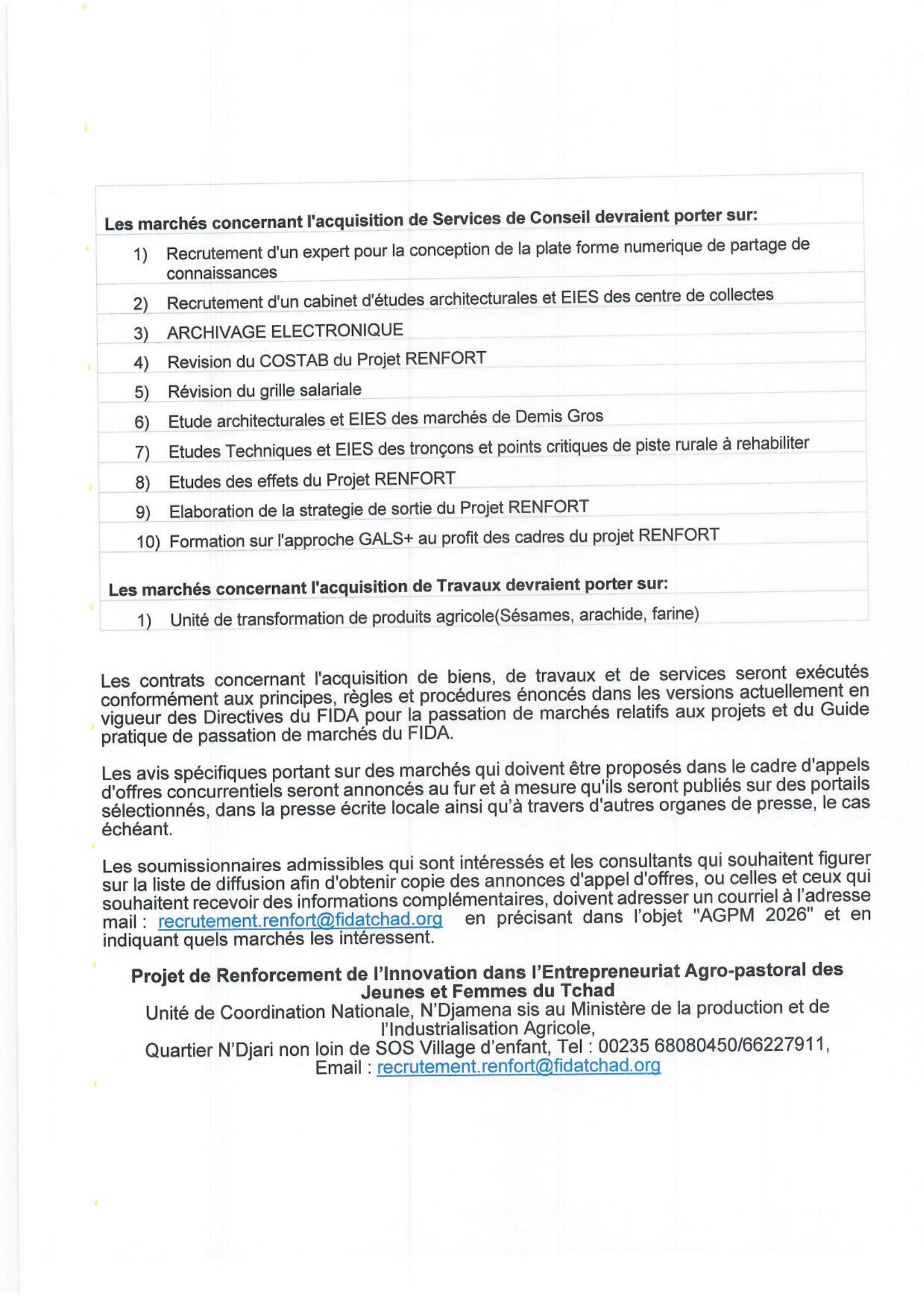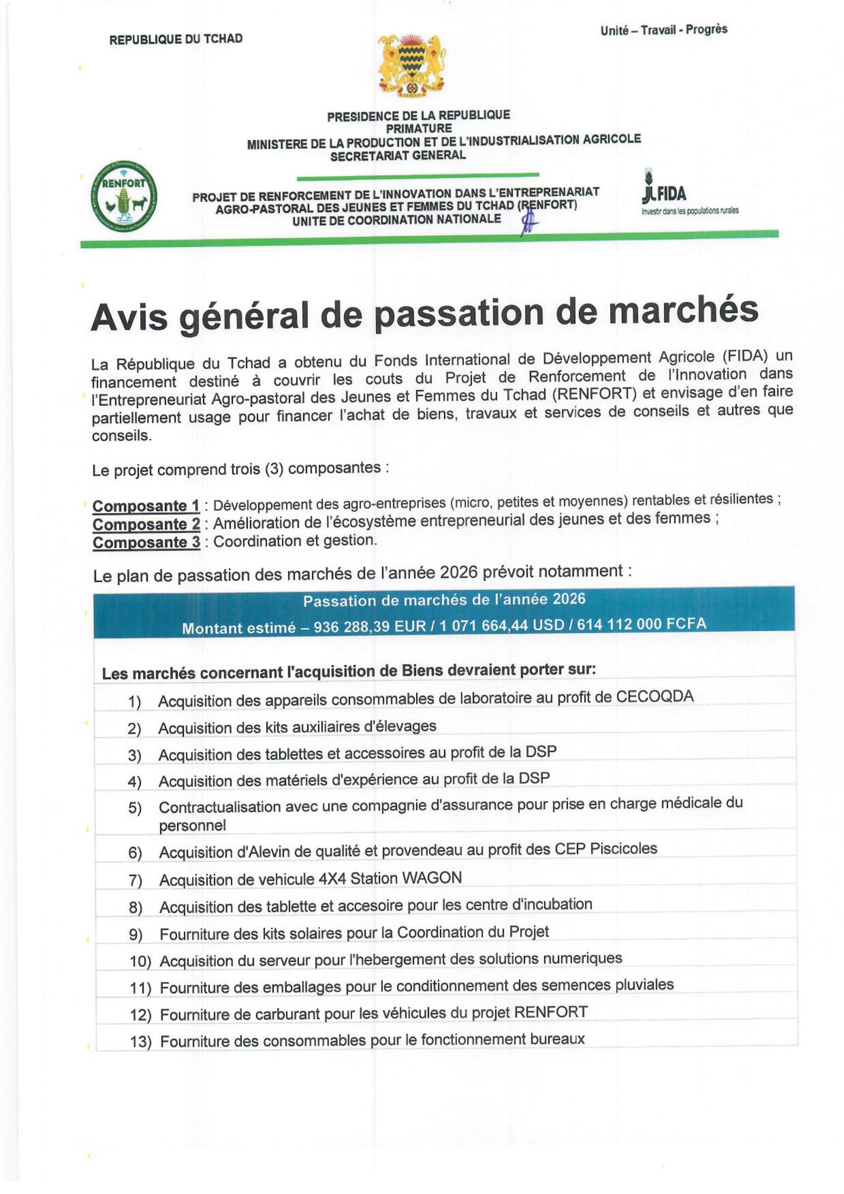 RENFORT lance un appel d’offres pour l’achat de Biens, Travaux et Services de Conseils et autres que Conseils