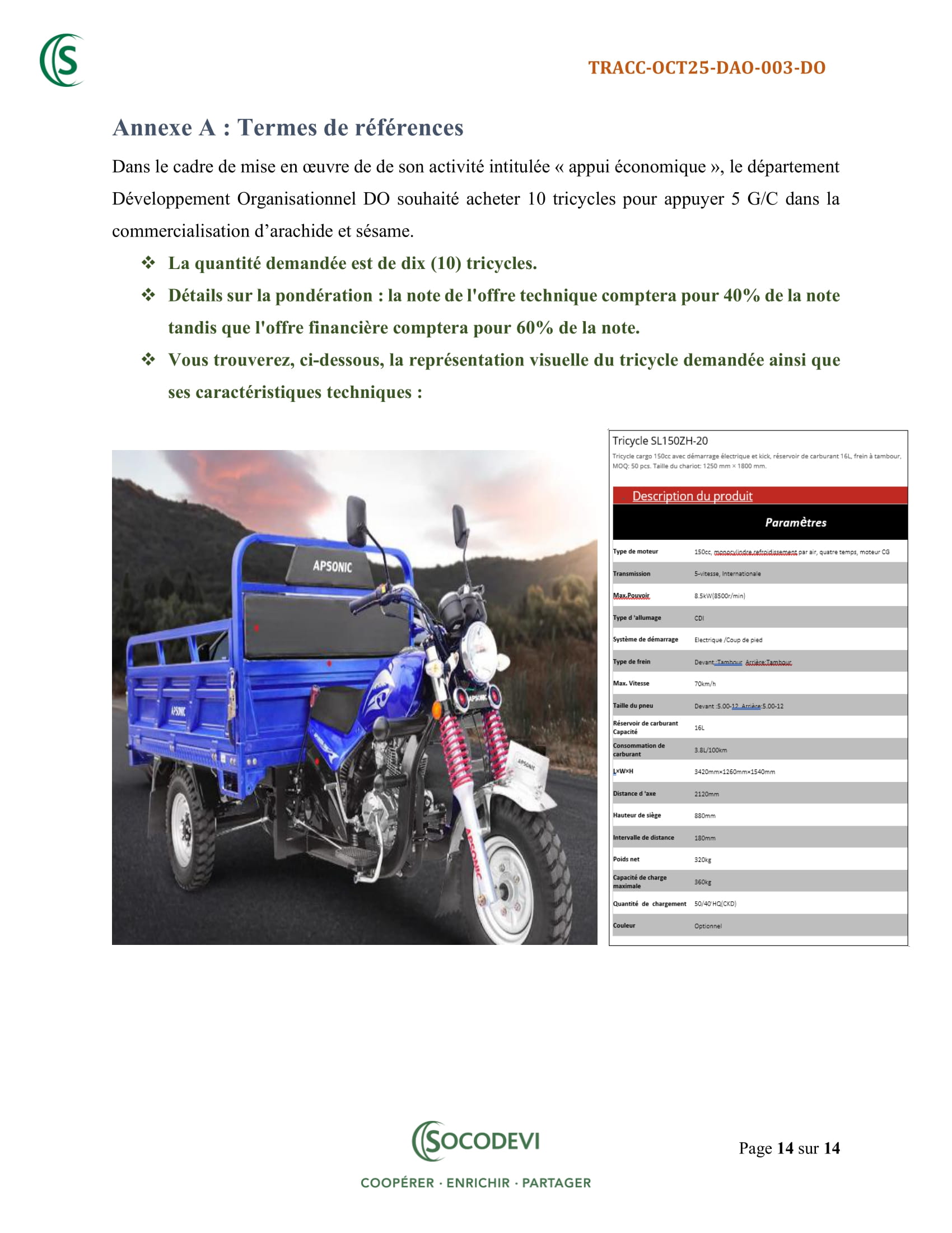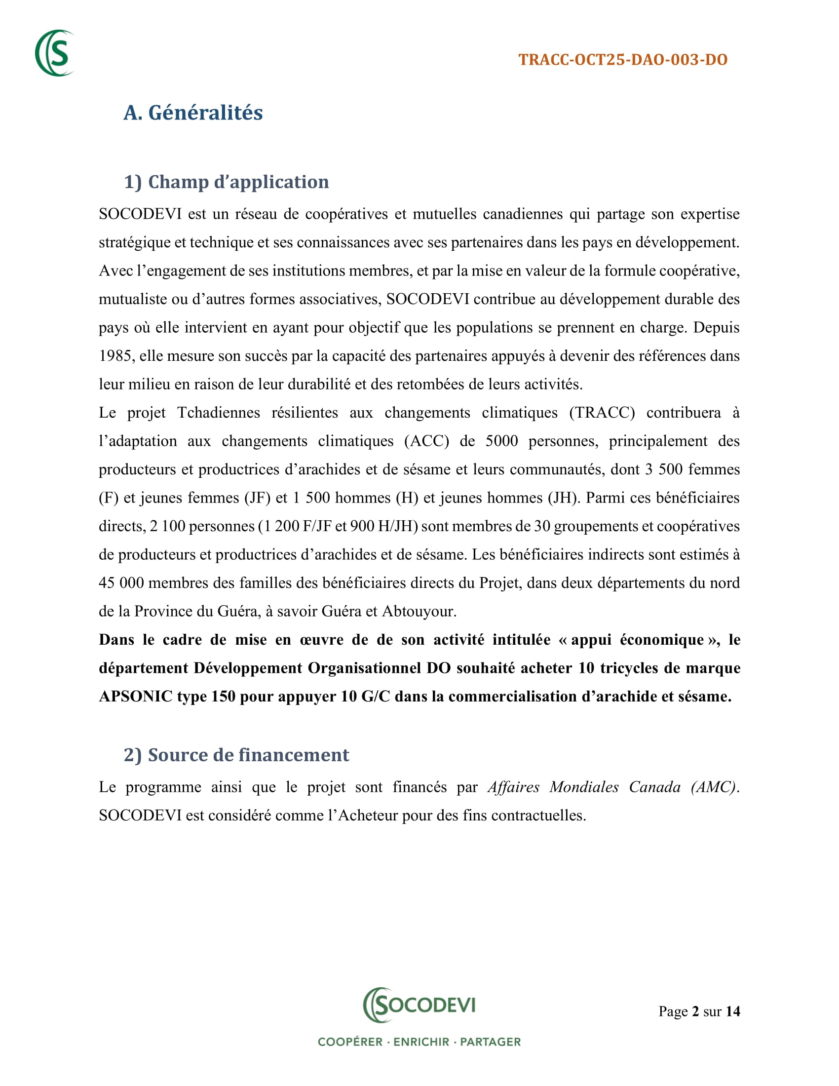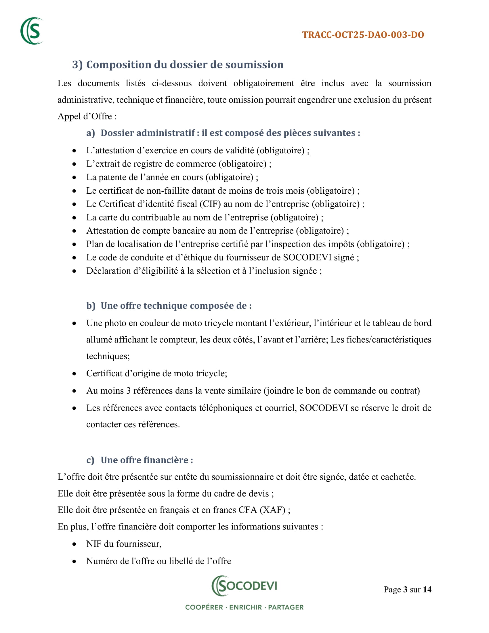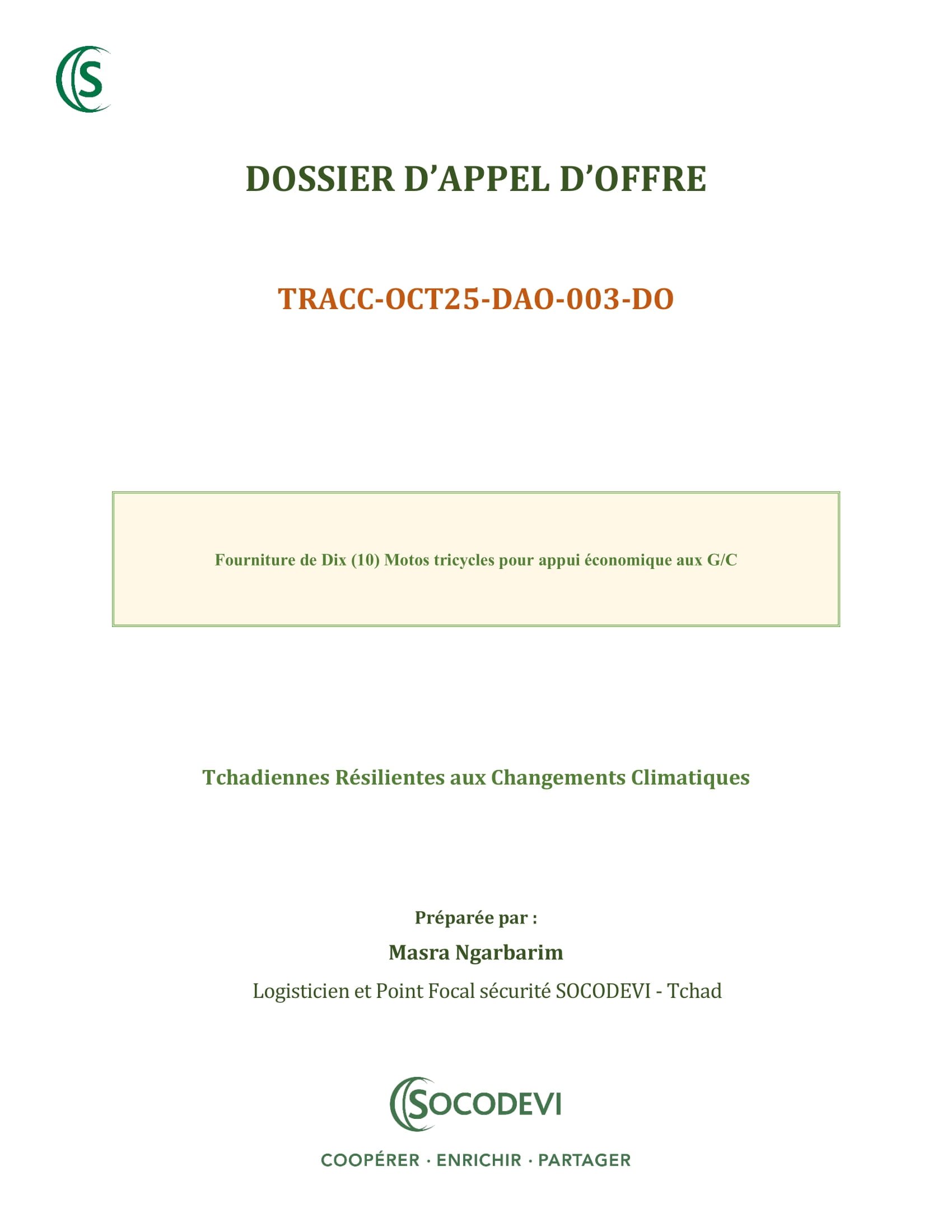 Accueil » Opportunités » Afrique » Tchad » SOCODEVI lance un avis d’appel d’offres pour l’Achat de Dix (10) Motos tricycles pour appui économique aux G/C, Tchad