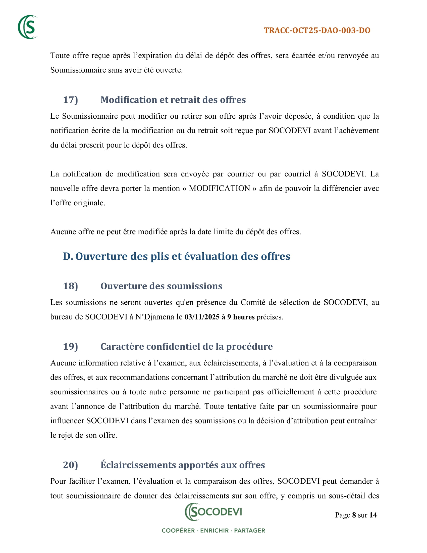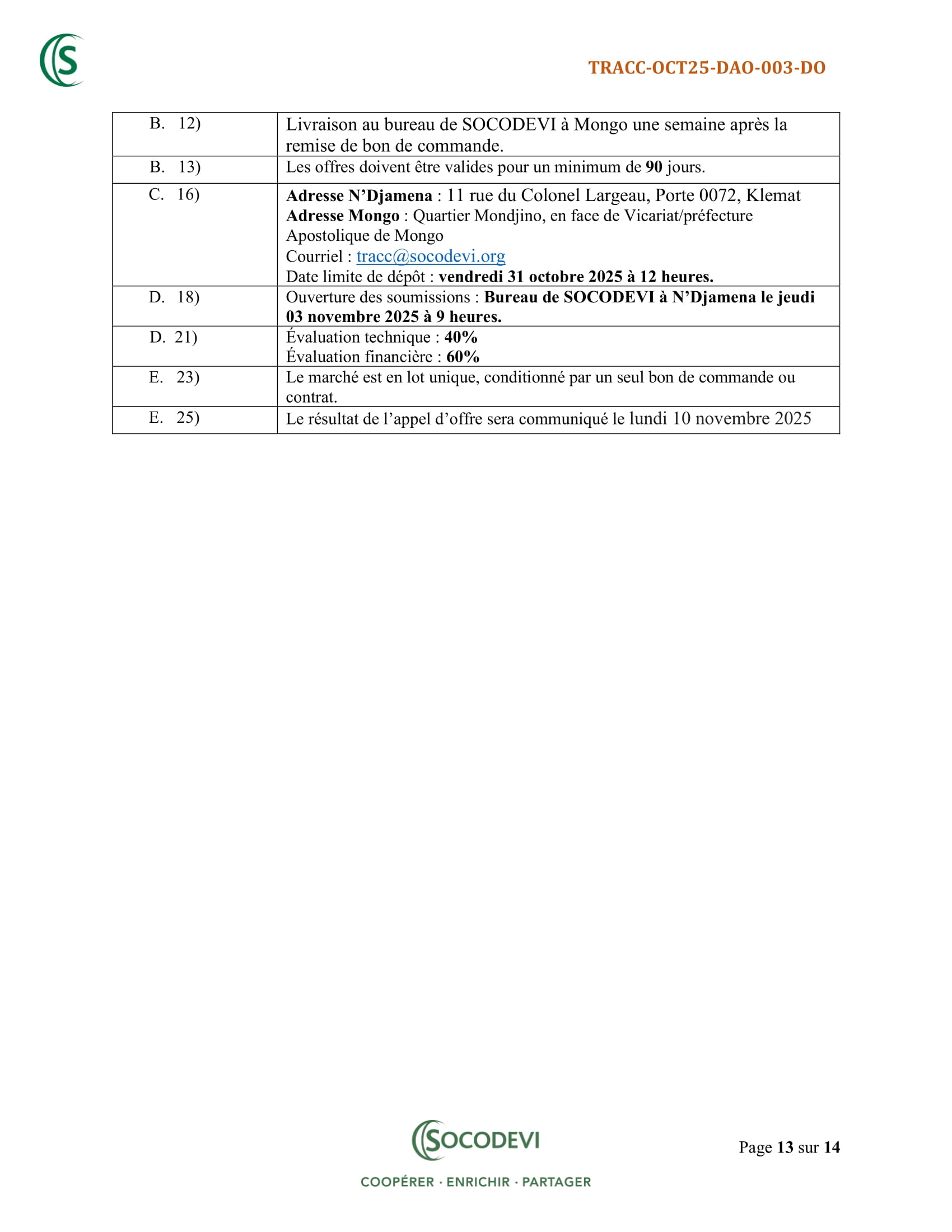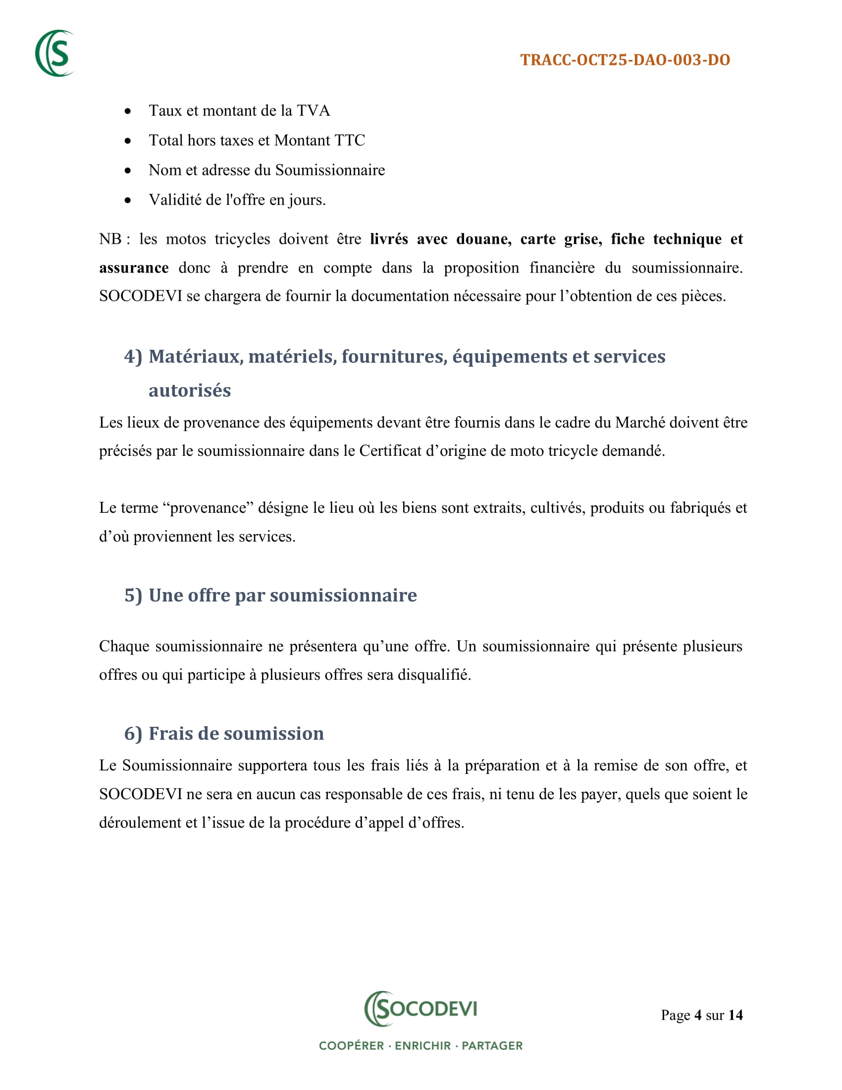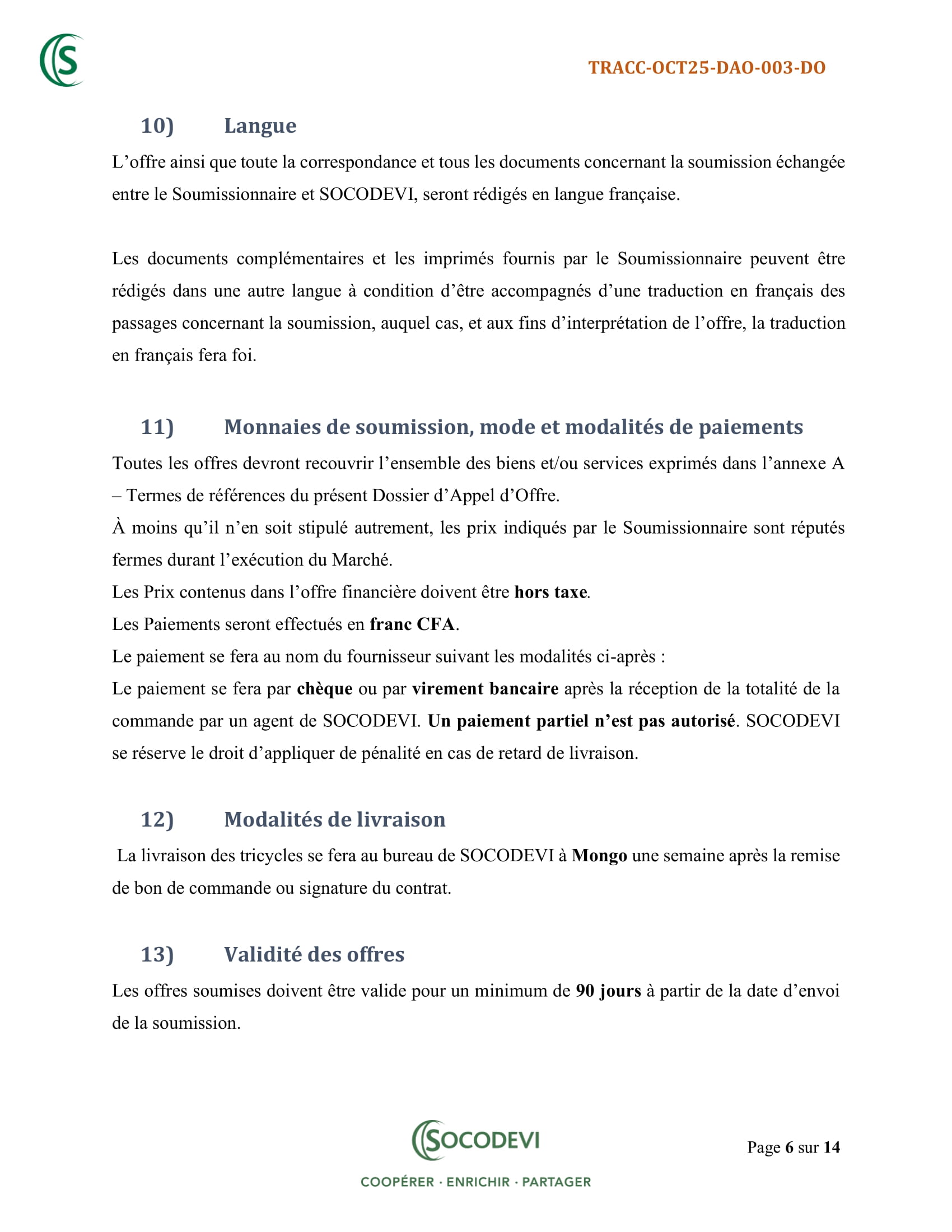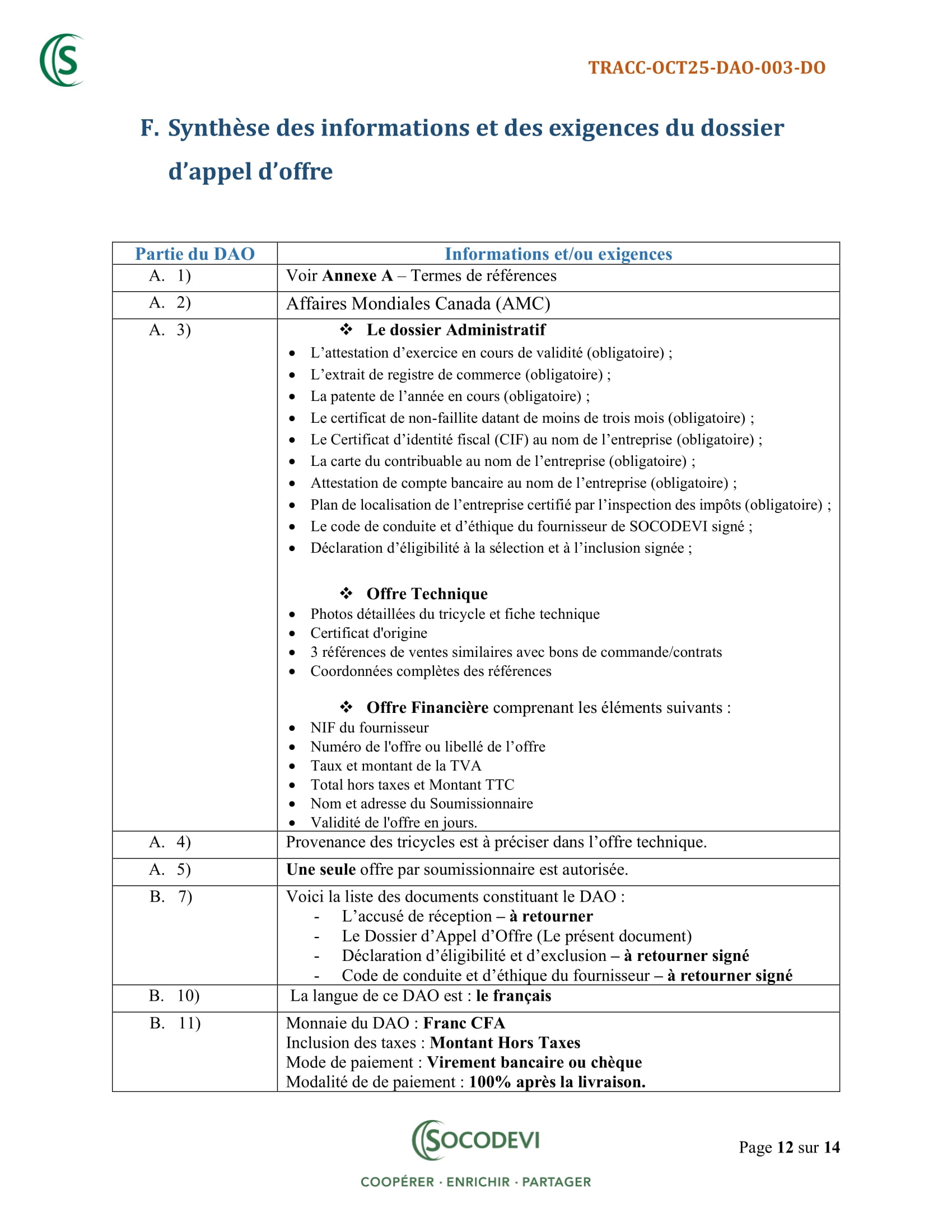 Accueil » Opportunités » Afrique » Tchad » SOCODEVI lance un avis d’appel d’offres pour l’Achat de Dix (10) Motos tricycles pour appui économique aux G/C, Tchad
