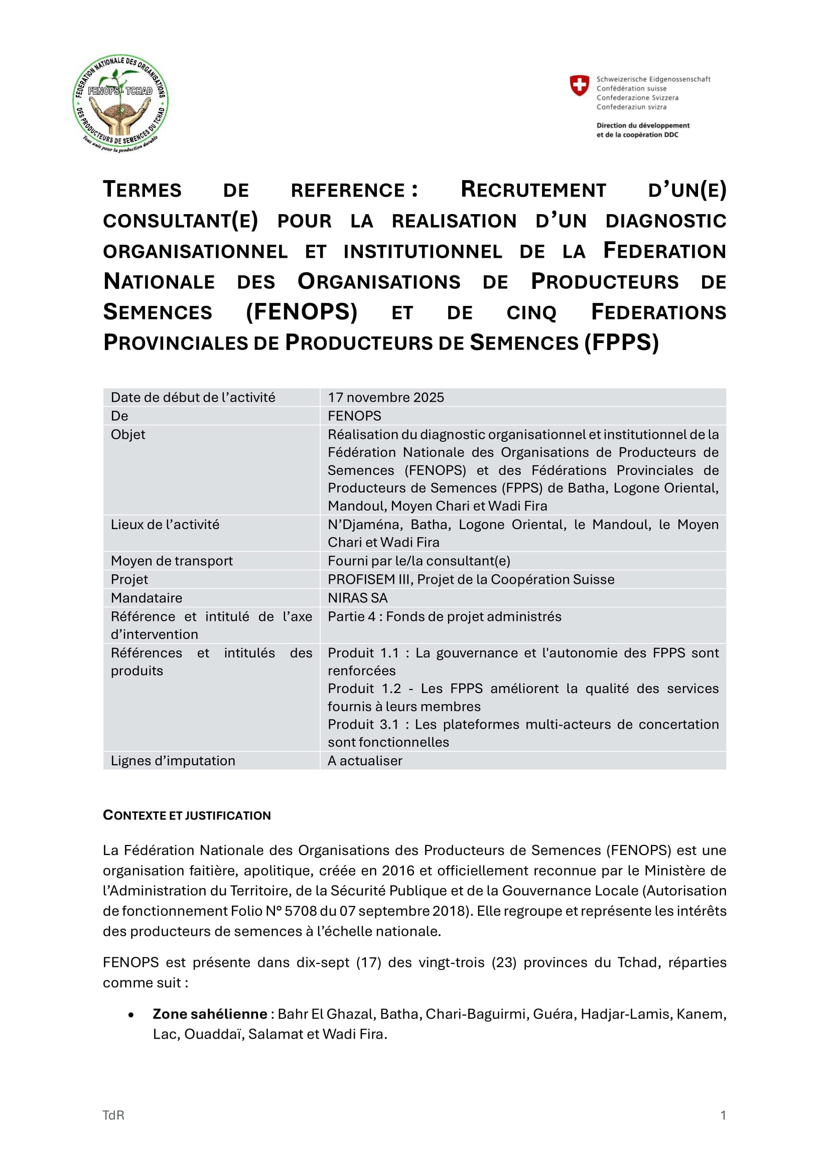 Accueil » Opportunités » Afrique » Tchad » Avis de recrutement d’un(e) Consultant(e) pour la réalisation d’un diagnostique organisationnel et institutionnel, Tchad