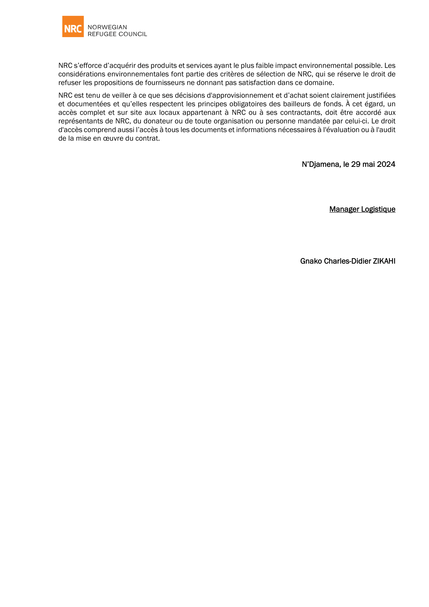 Accueil » Opportunités » Afrique » Tchad » Le Conseil Norvégien pour les Réfugiés (NRC) lance un appel d’offre pour les travaux de Construction de Six(6) Blocs de Deux(2) Salle de Classe Semi-Durables dans Deux(2) Ecoles des Camps des Réfugiés, Ouaddaï, Tchad