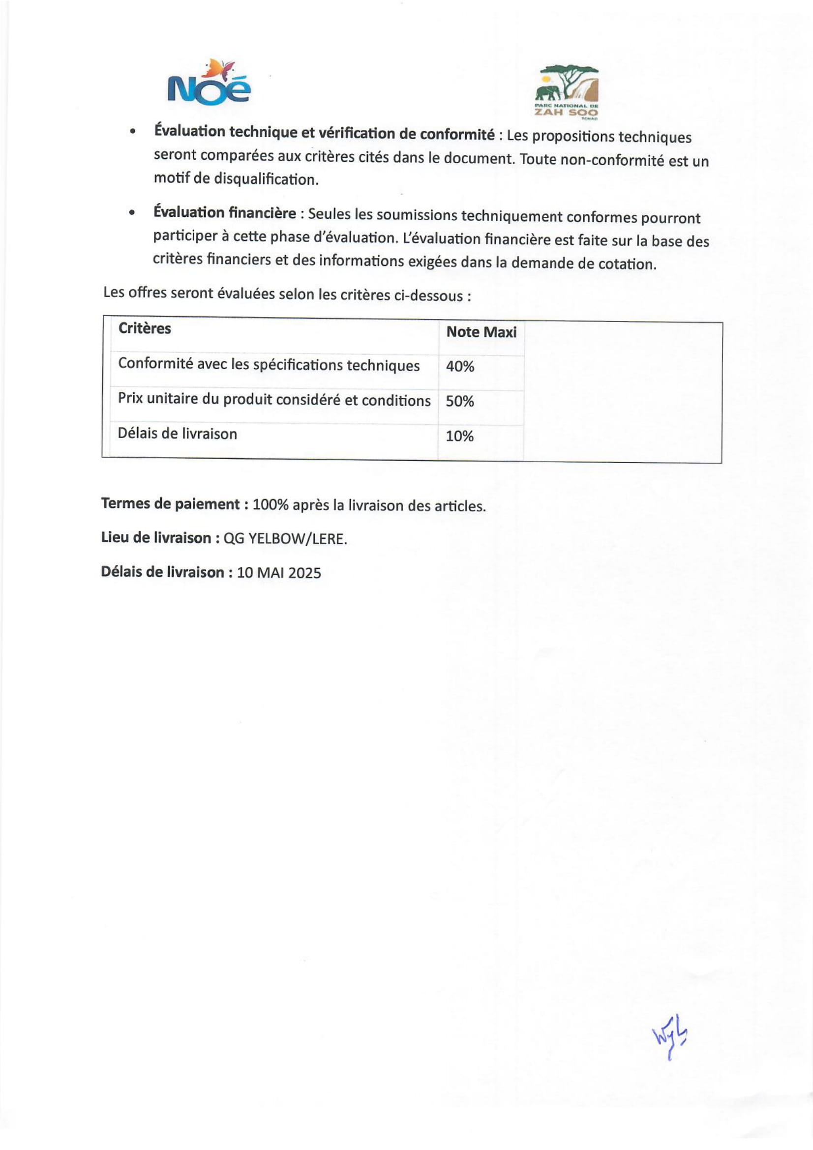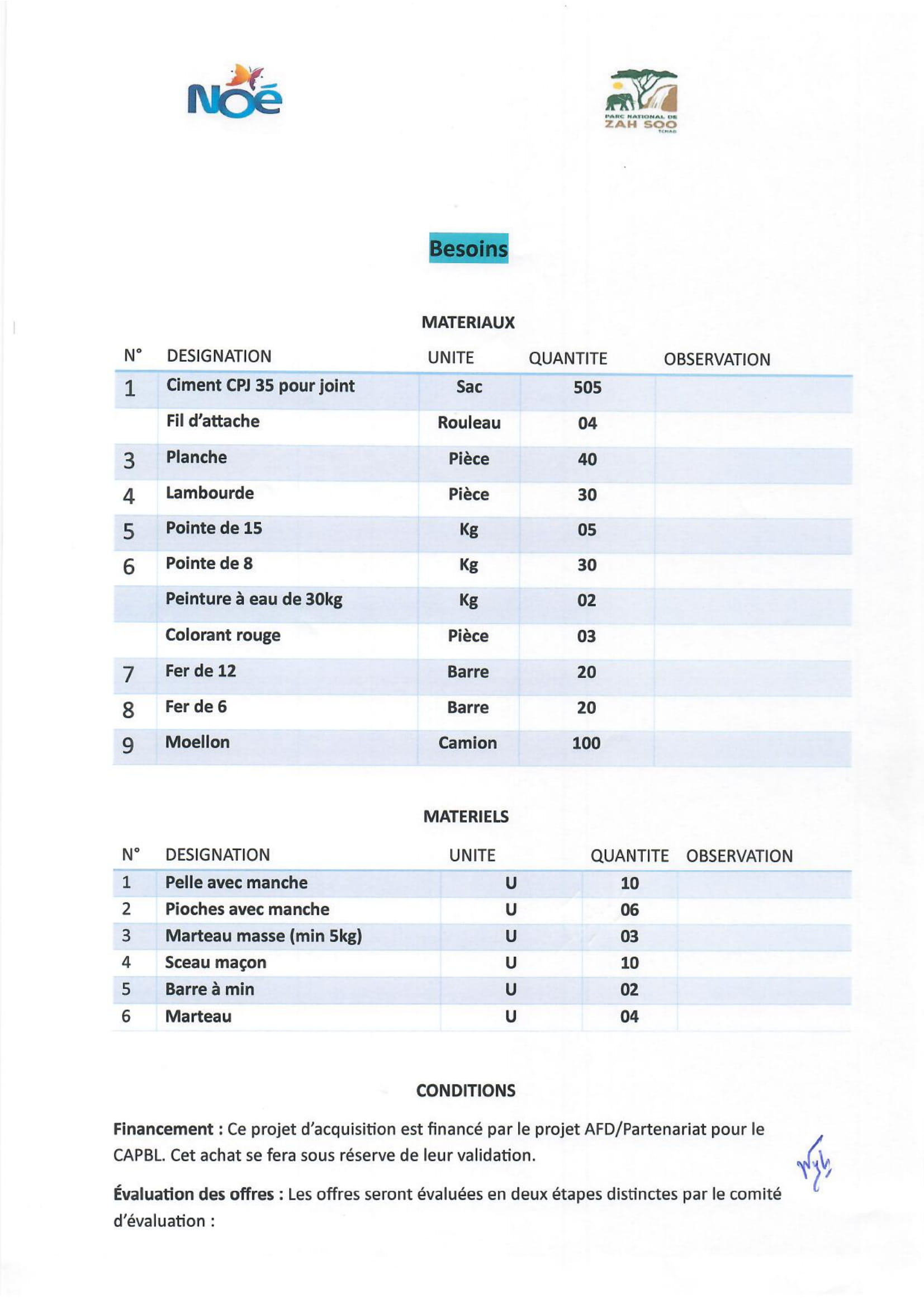 Noé Tchad lance un avis d’appel à manifestation d’intérêt aux fournisseurs, cabinets, etc pour la fourniture des matériels et matériaux pour la construction des radiers, Tchad