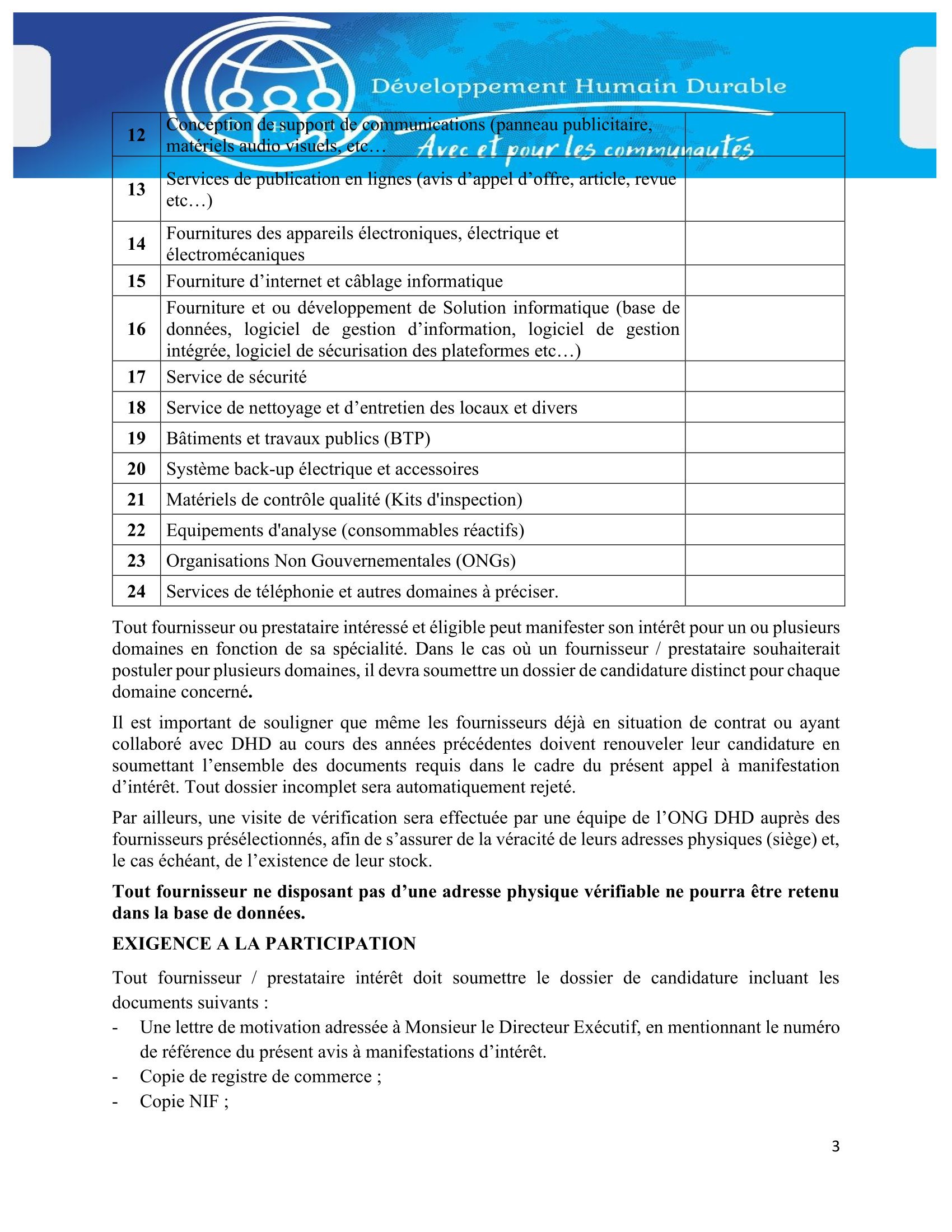 Accueil » Opportunités » Afrique » Tchad » L’ONG Développement Humain Durable (DHD) recherche un Fournisseur/Prestataire pour la mise en place d’une Base de données, Tchad