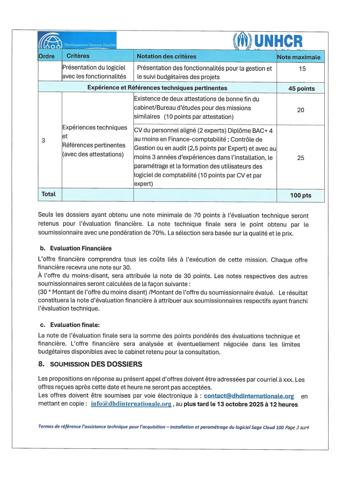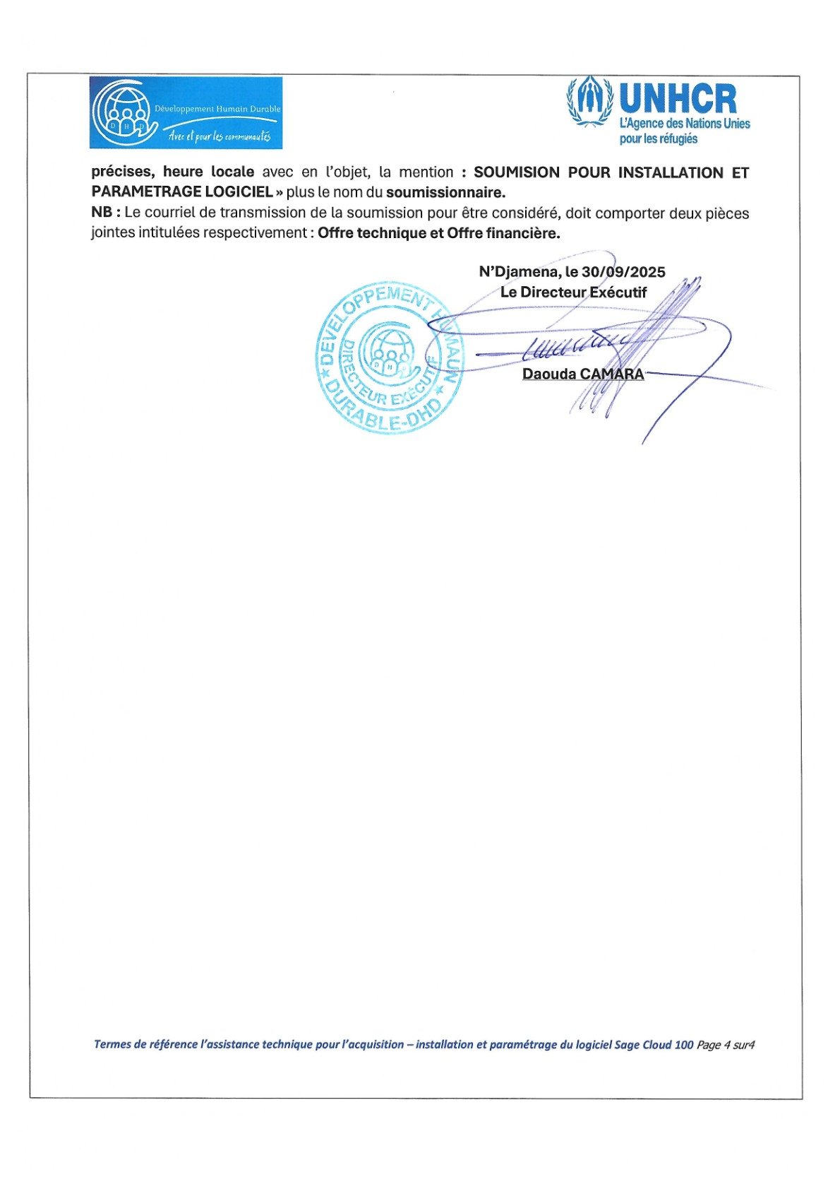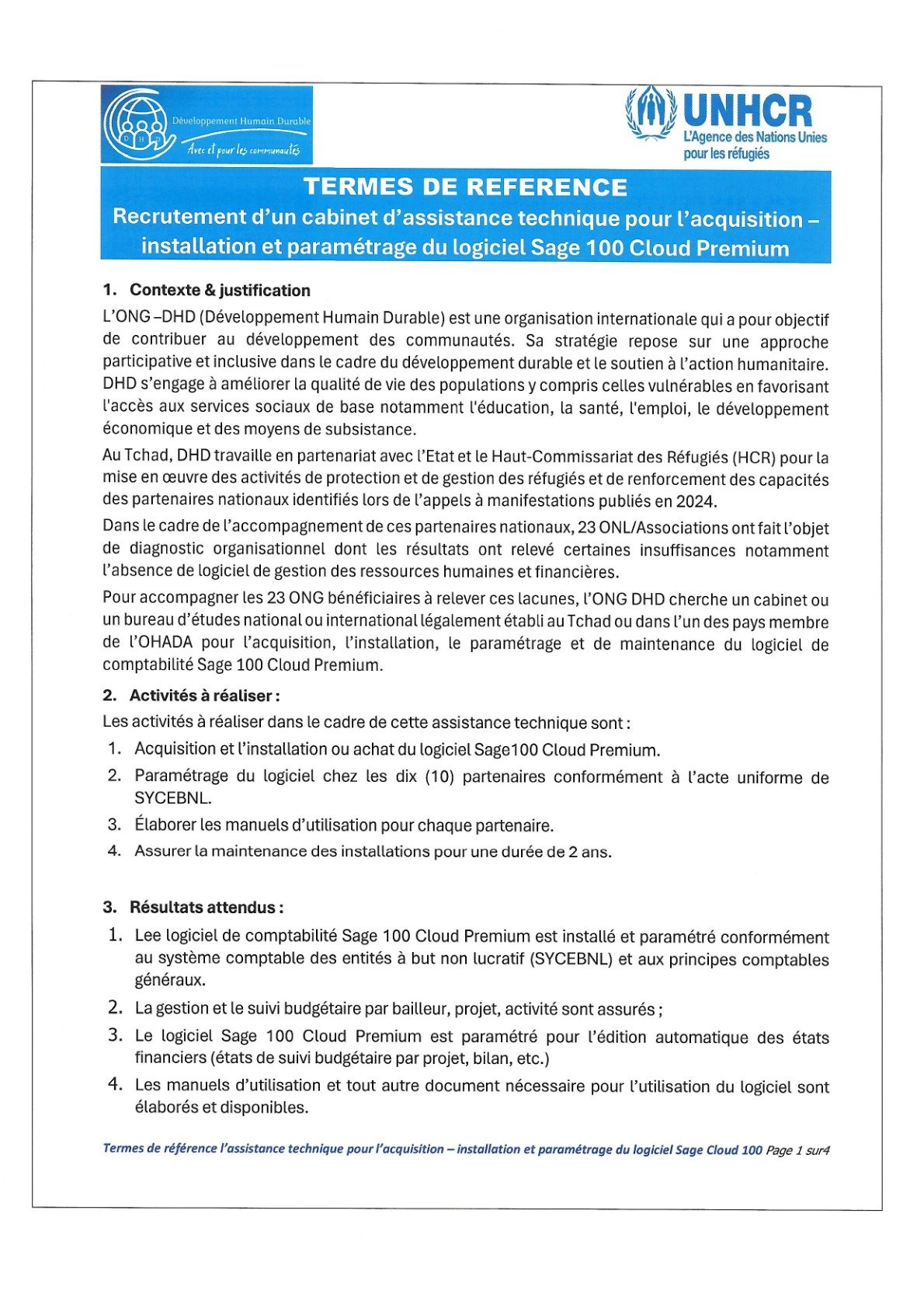 Accueil » Opportunités » Afrique » Tchad » L’ONG-DHD lance un appel d’offre pour le recrutement d’un Cabinet d’assistance technique pour l’acquisition – installation et paramétrage du logiciel Sage 100 Cloud Premium, Tchad