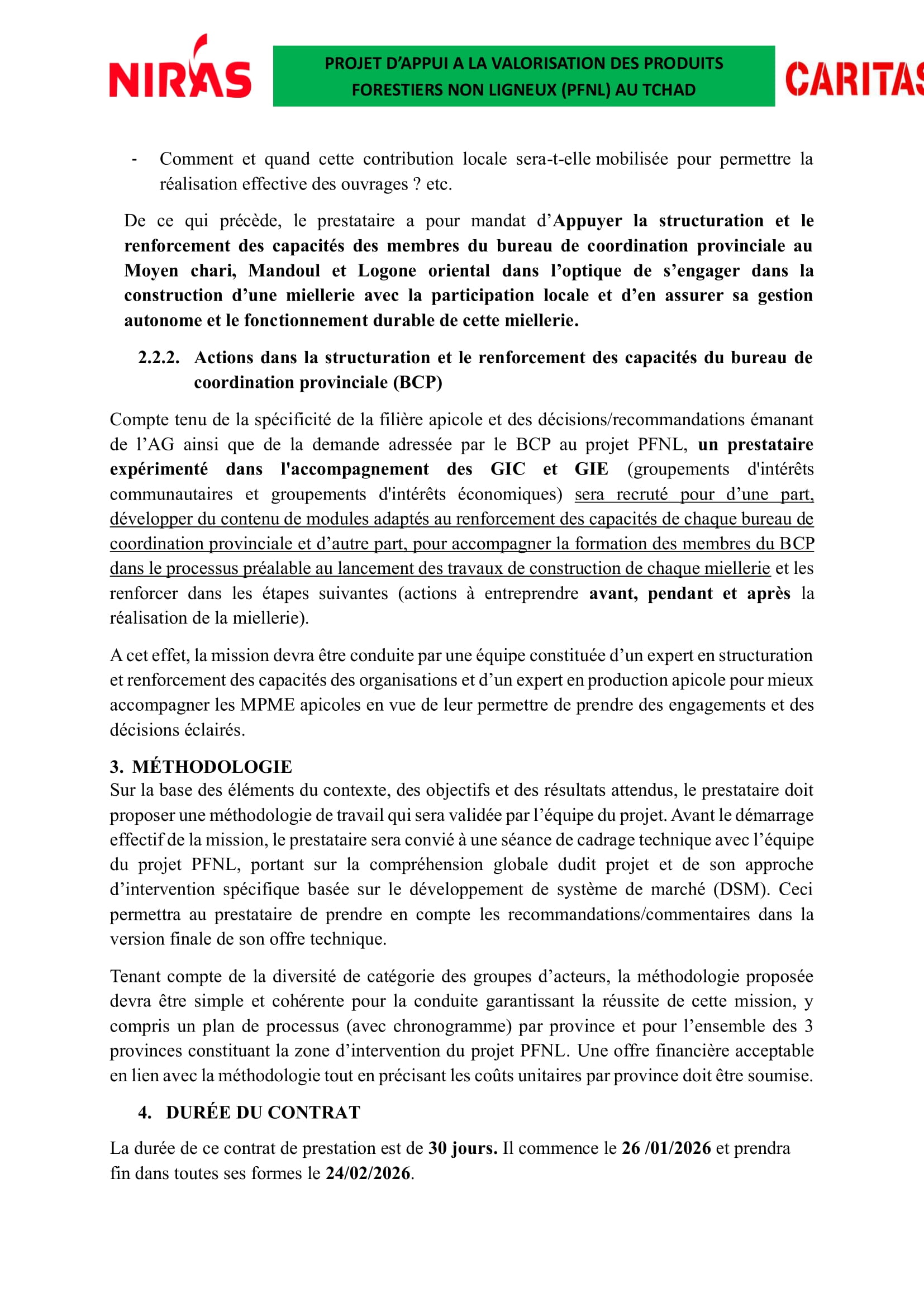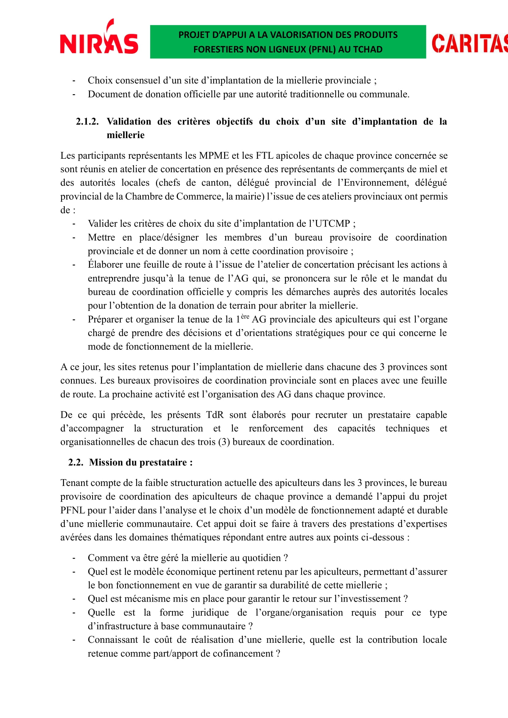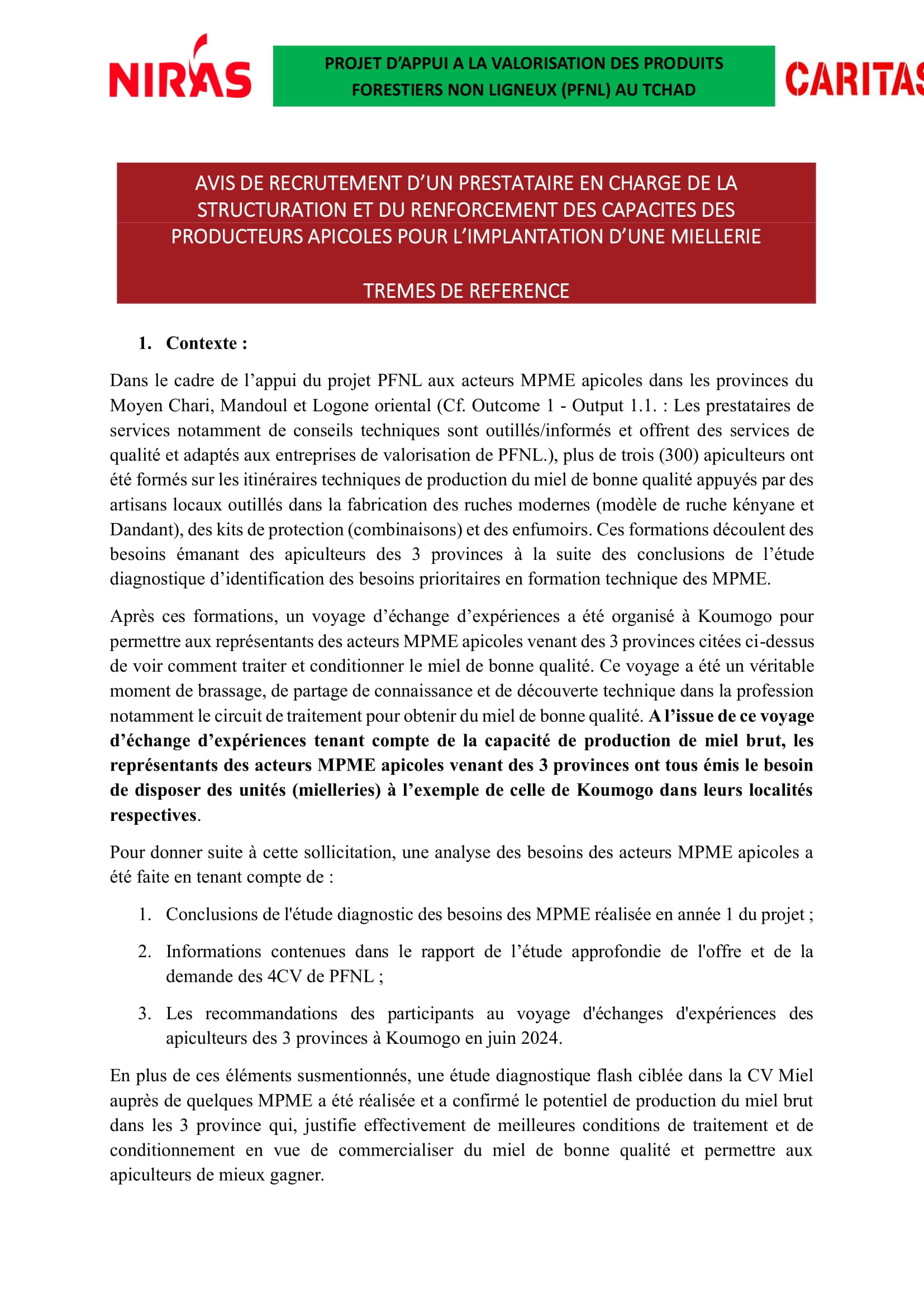 Accueil » Opportunités » Afrique » Tchad » Consortium NIRAS lance un appel d’offres pour recruter un prestataire chargé du renforcement des capacités des producteurs apicoles et de l’implantation d’une miellerie, Tchad