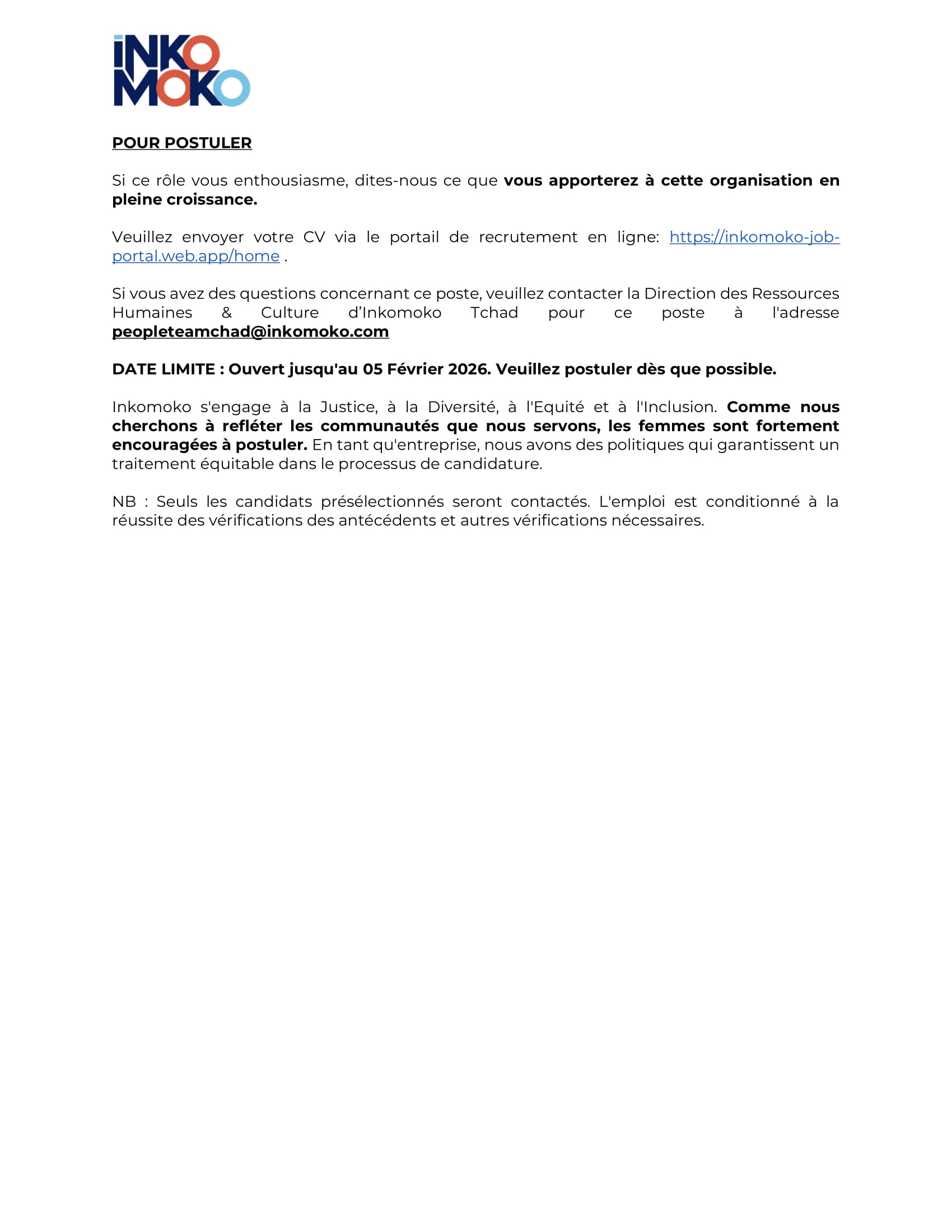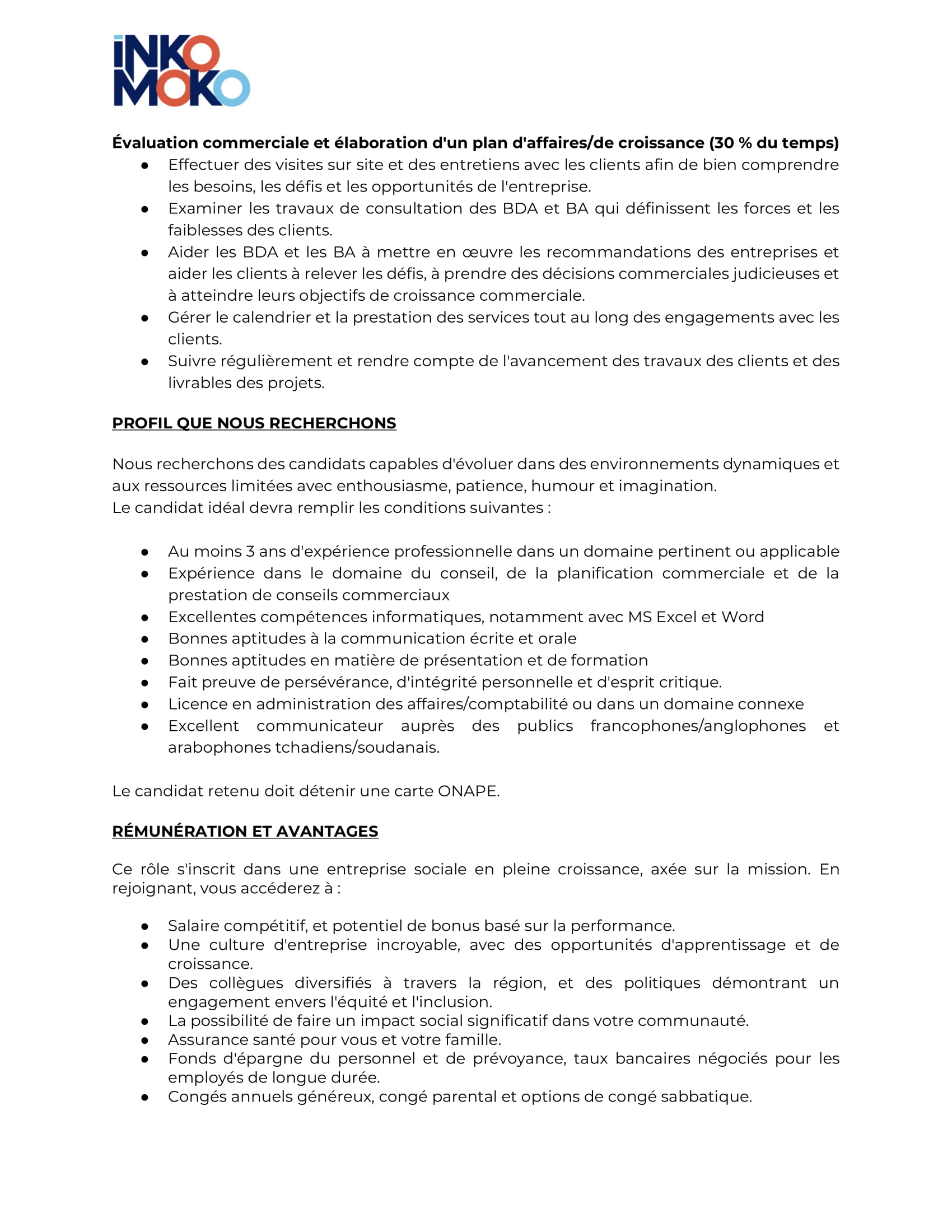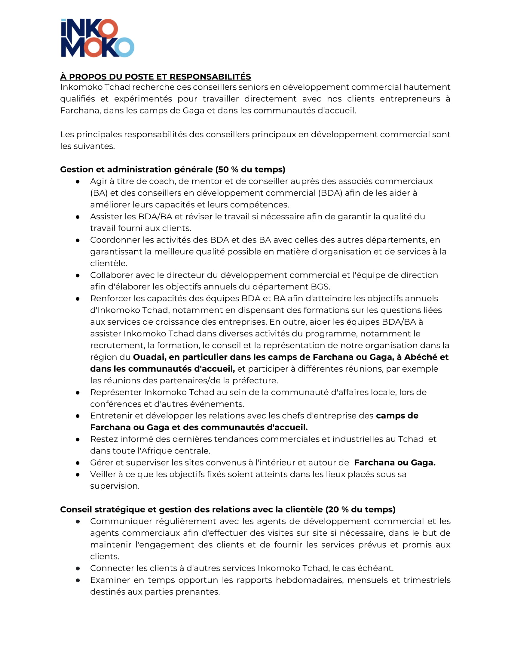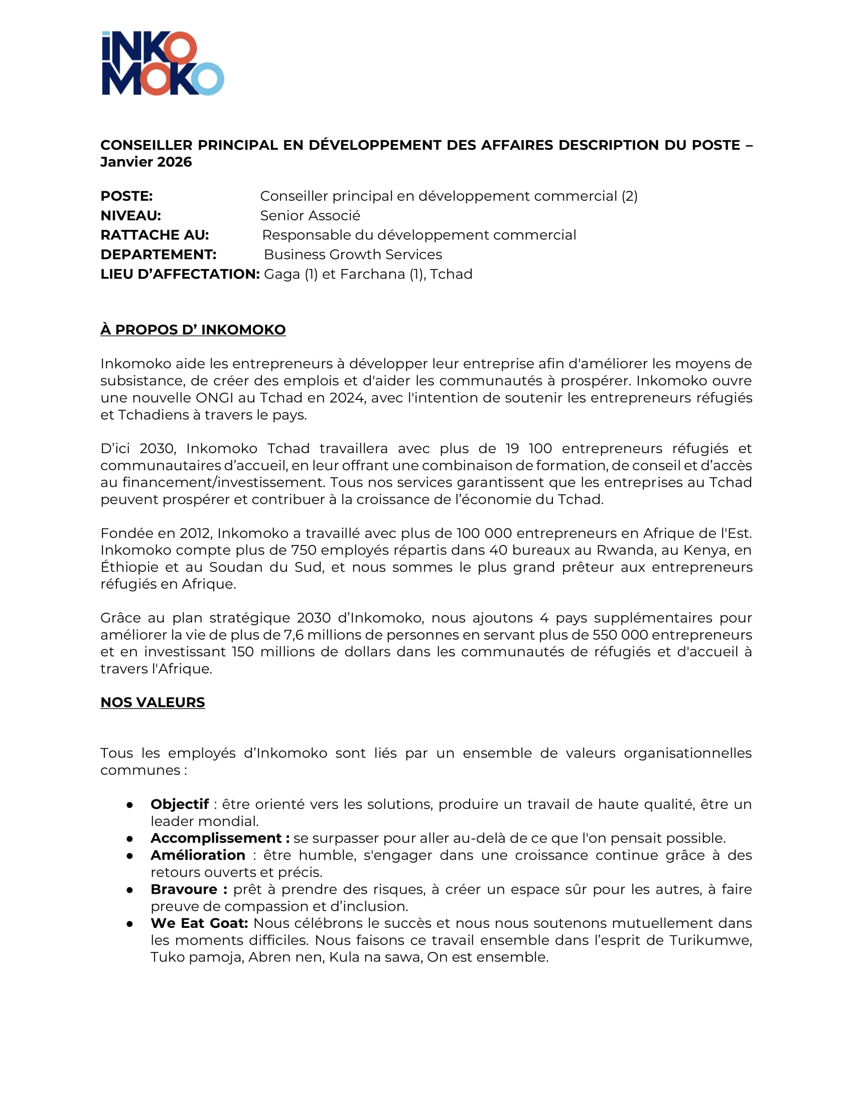 Accueil » Opportunités » Afrique » Tchad » Inkomoko Tchad recrute 02 Conseillers principaux en développement commercial à Gaga et Farchana