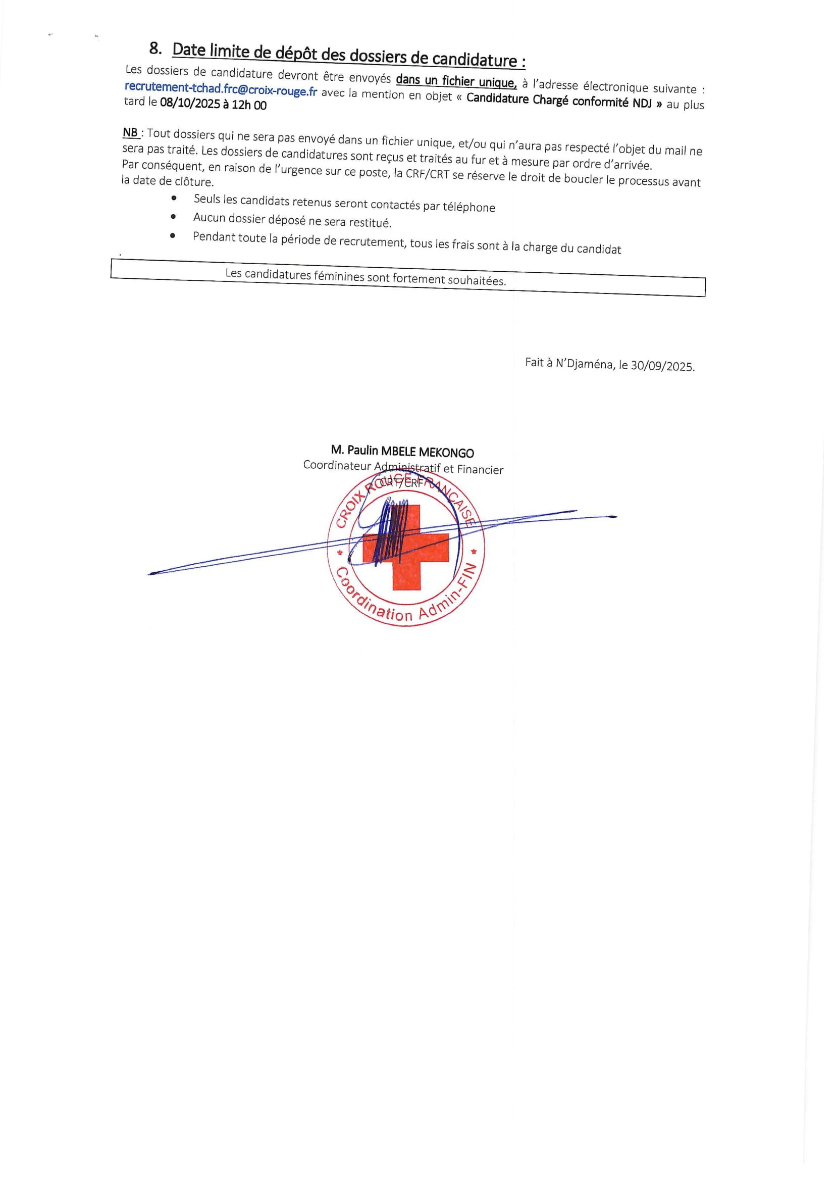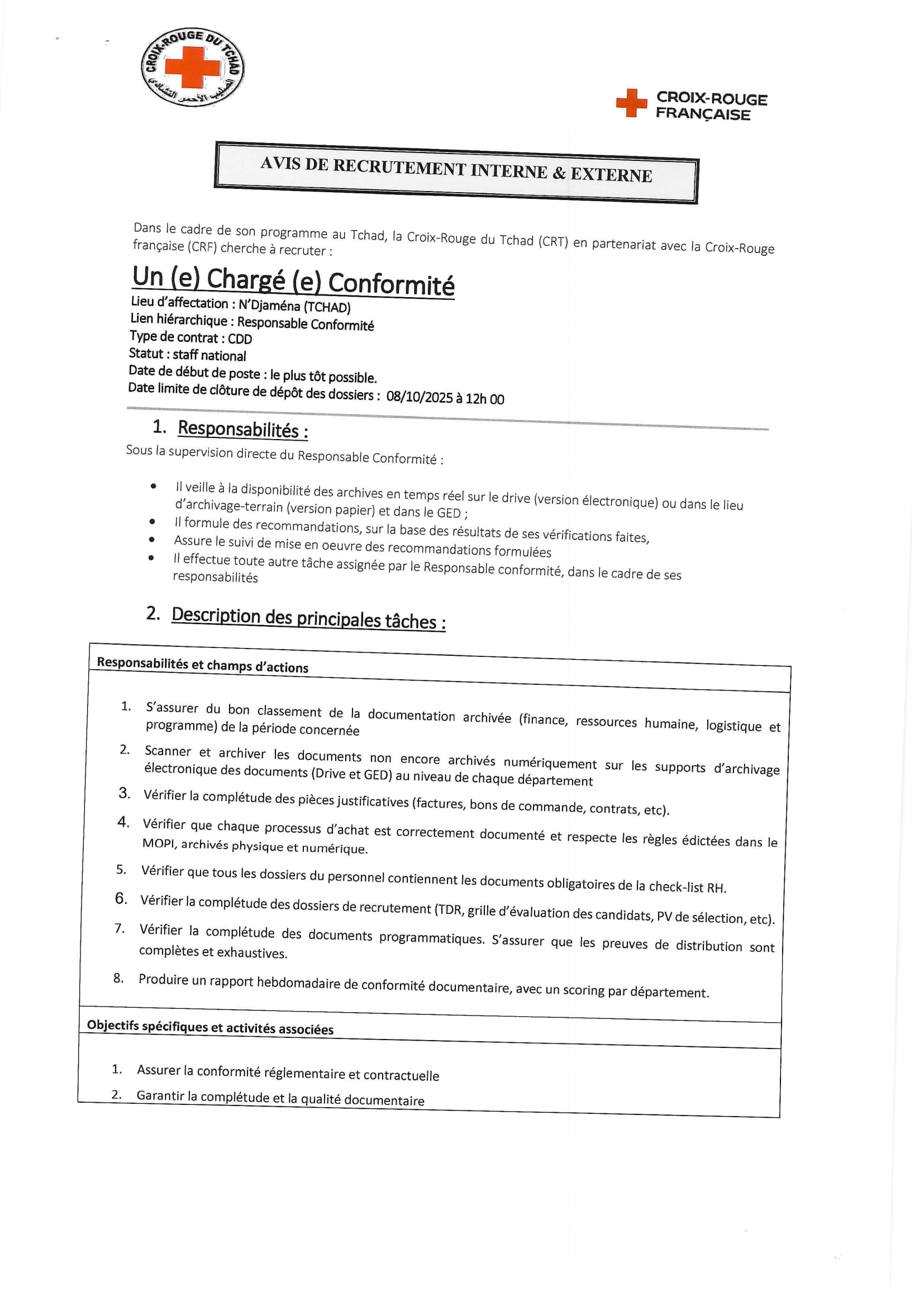 Accueil » Opportunités » Afrique » Tchad » La Croix-Rouge du Tchad recrute un Chargé Conformité (H/F) à N’Djamena, Tchad