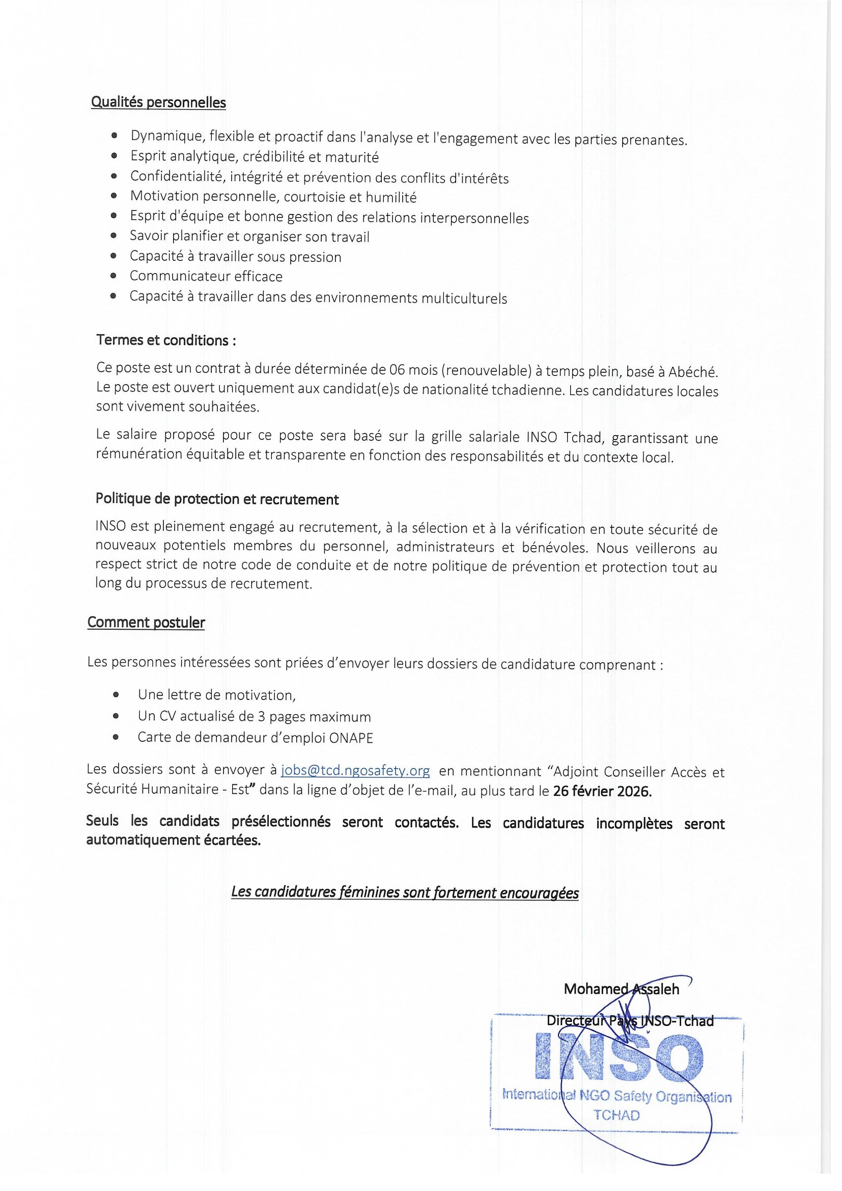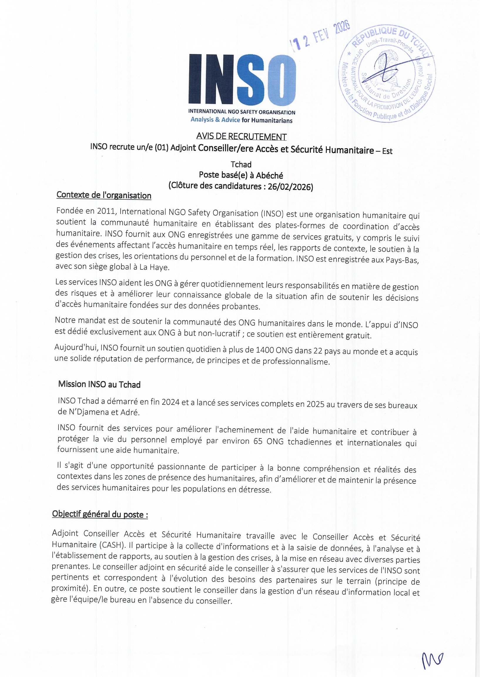 Accueil » Opportunités » Afrique » Tchad » INSO recrute un(e) Conseiller(ère) Accès et Sécurité Humanitaire basé(e) à Abéché, Tchad
