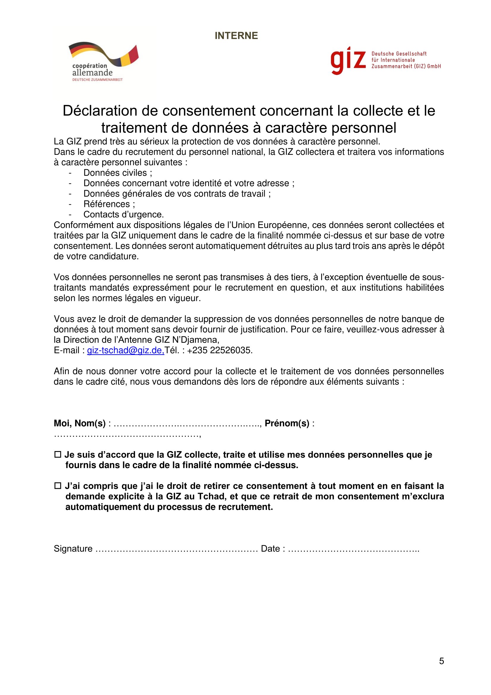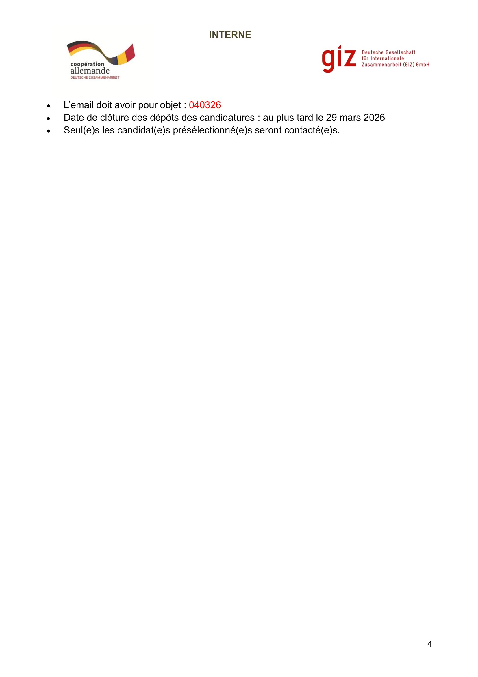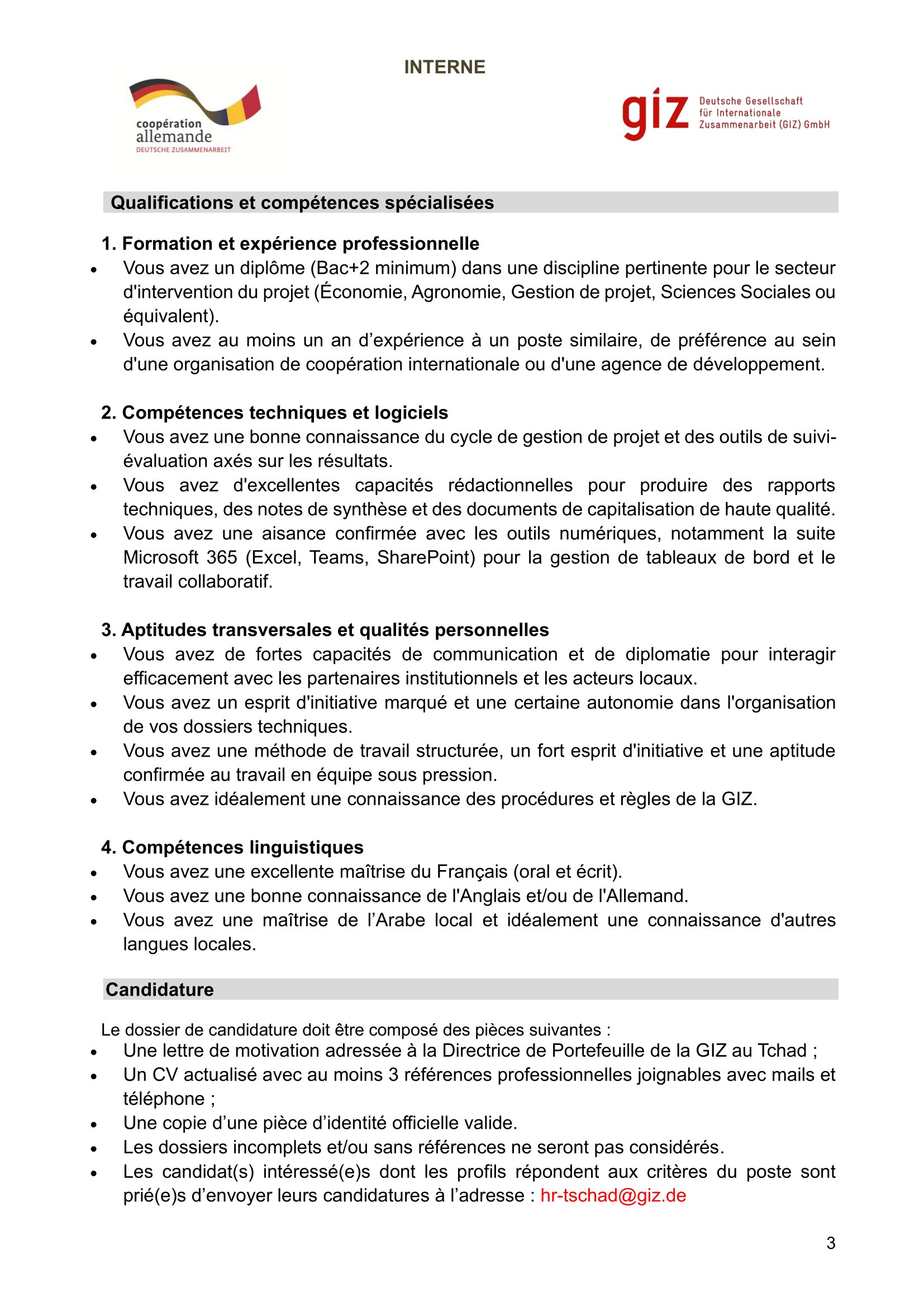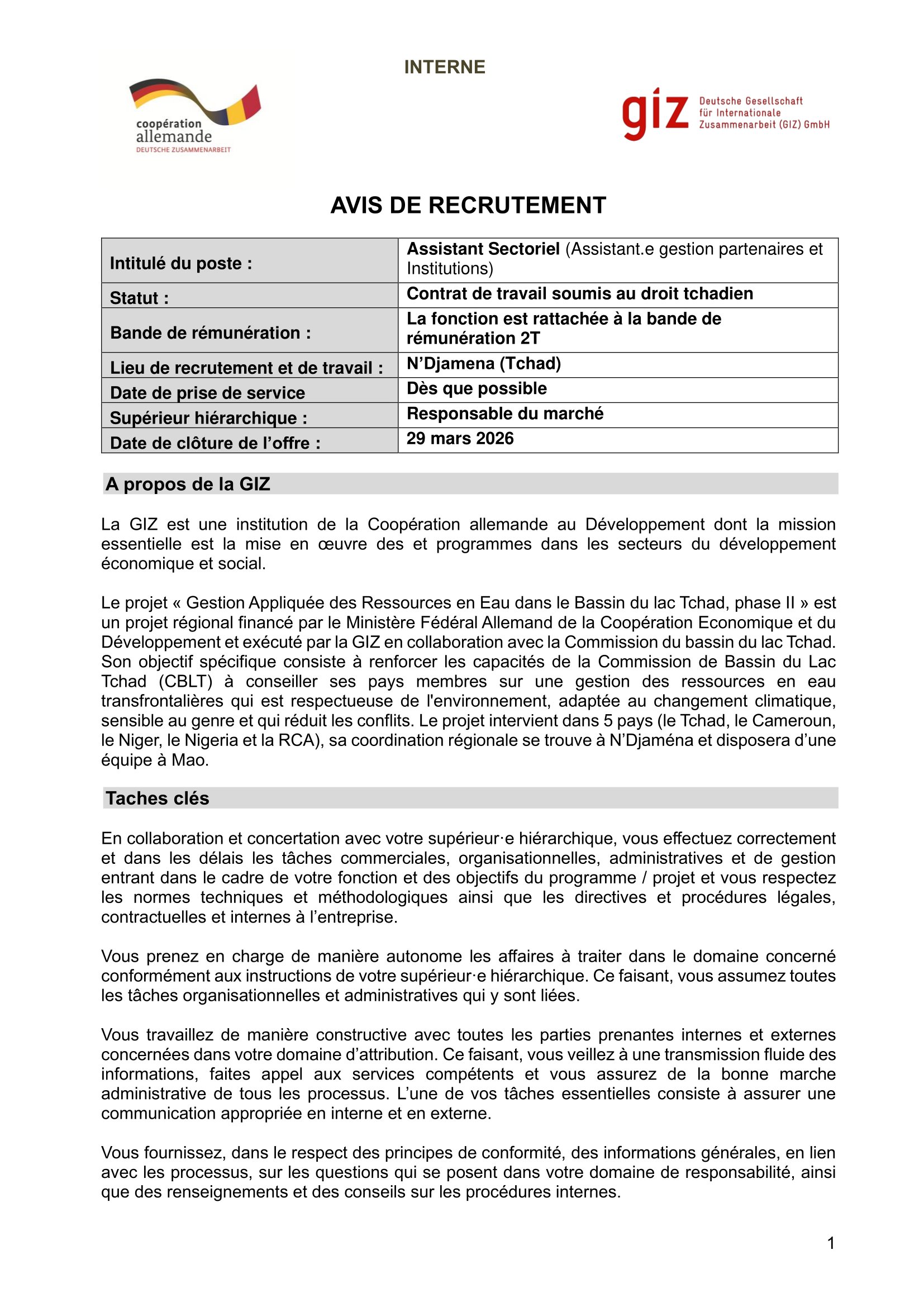 Accueil » Opportunités » Afrique » Tchad » La GIZ au Tchad lance un avis de recrutement d’un(e) Assistant(e) sectoriel(le) – Assistant(e) gestion partenaires et Institutions, poste basé à N’Djamena