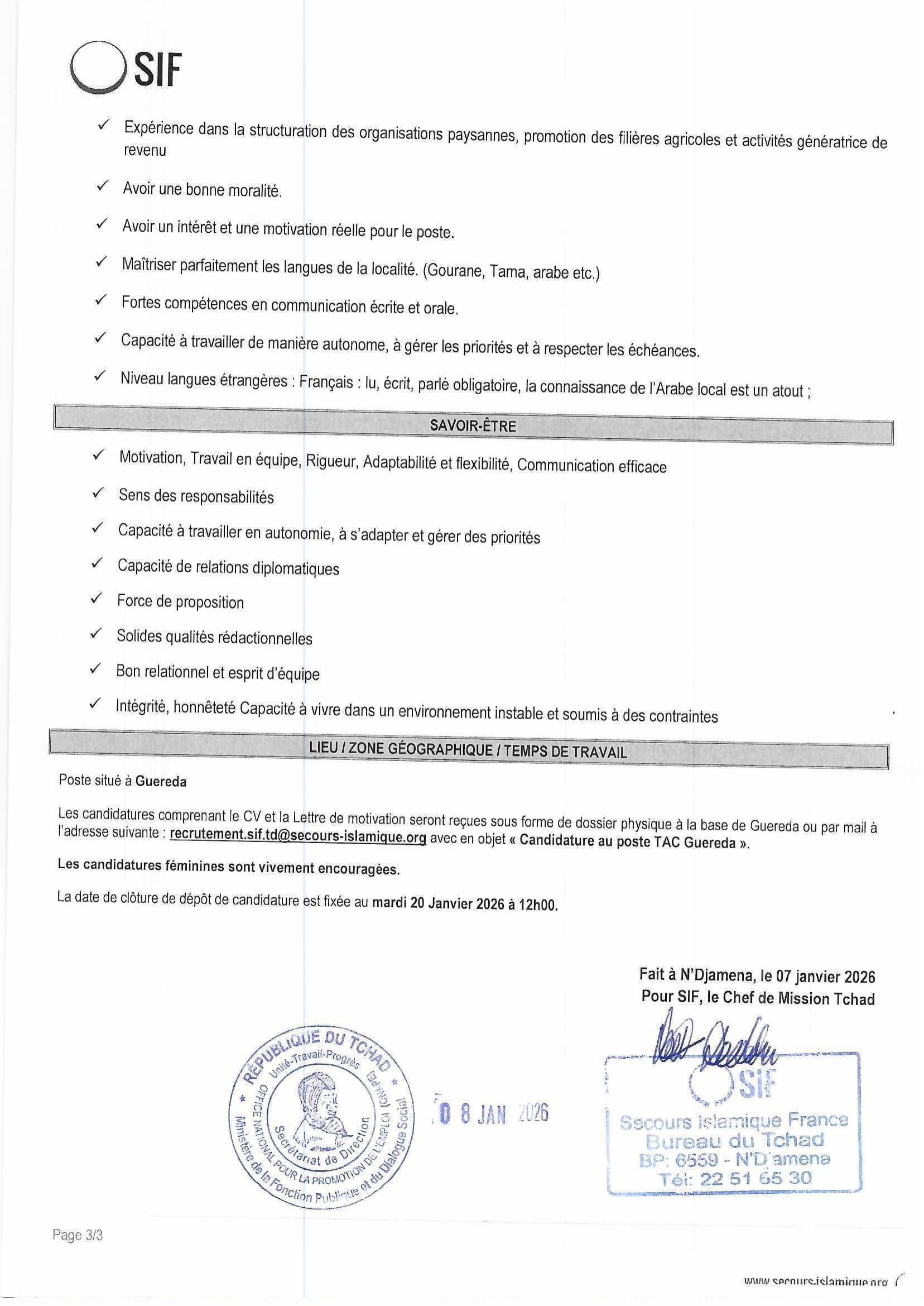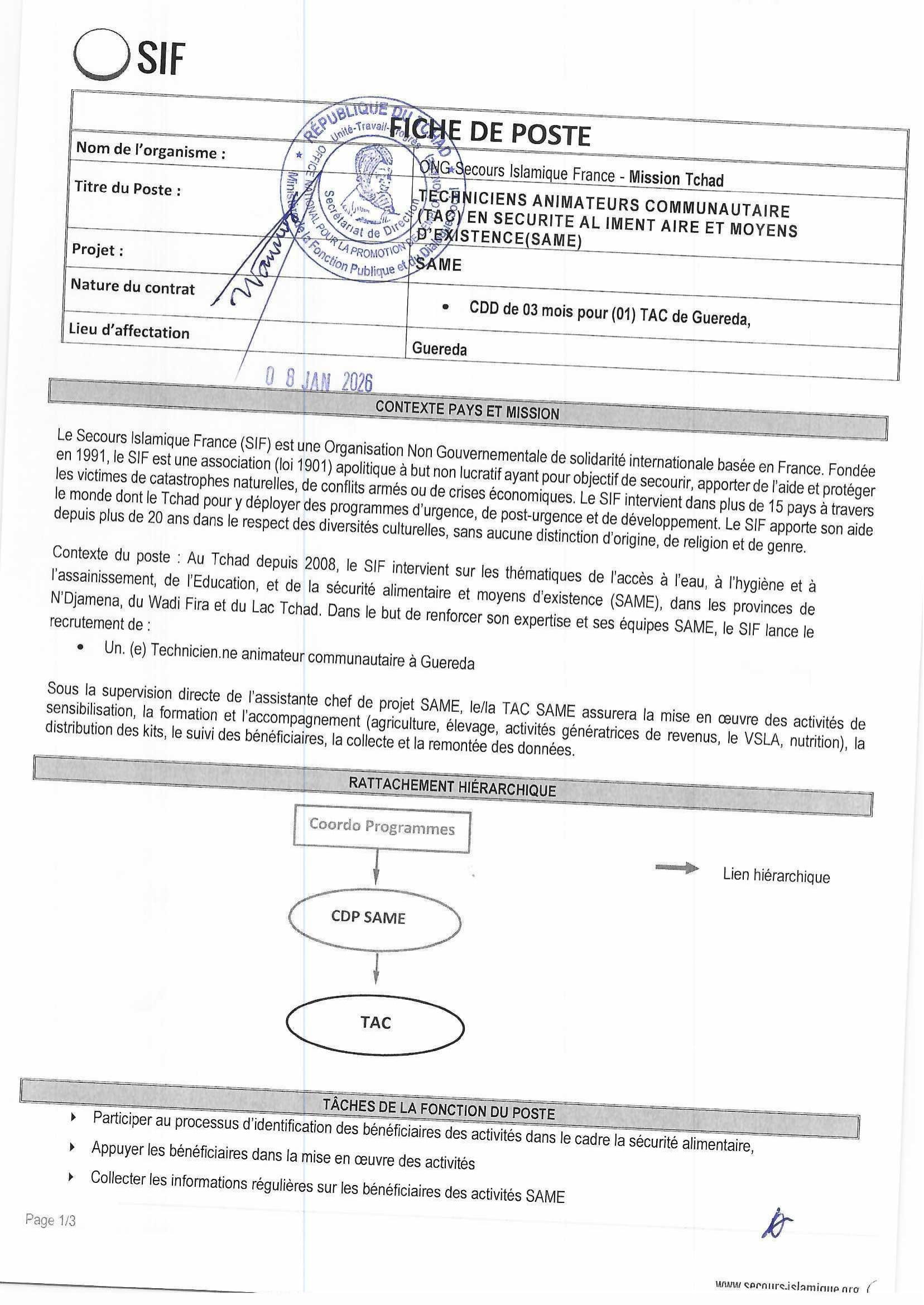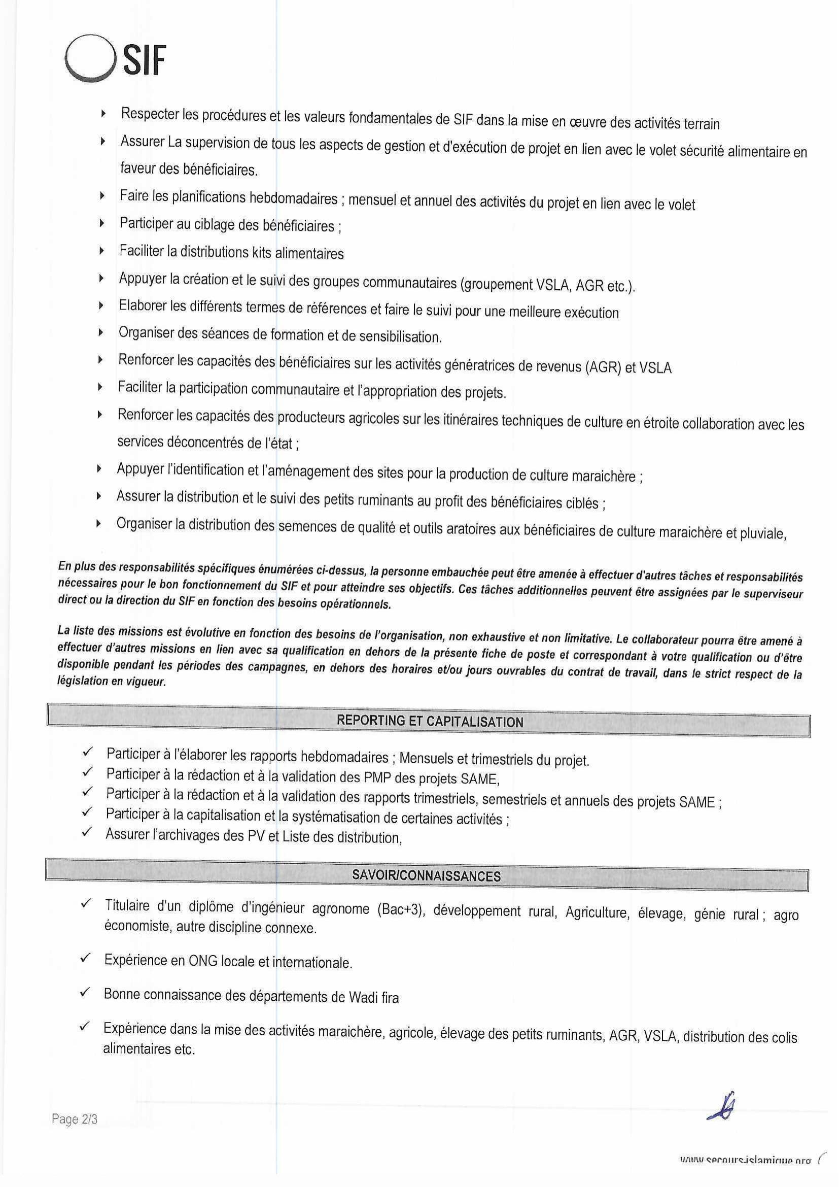 Accueil » Opportunités » Afrique » Tchad » Secours Islamique France (SIF) recrute des Techniciens Animateurs Communautaires (TAC) en Sécurité Alimentaire et Moyens d’Existence (SAME) à Guéréda, Tchad