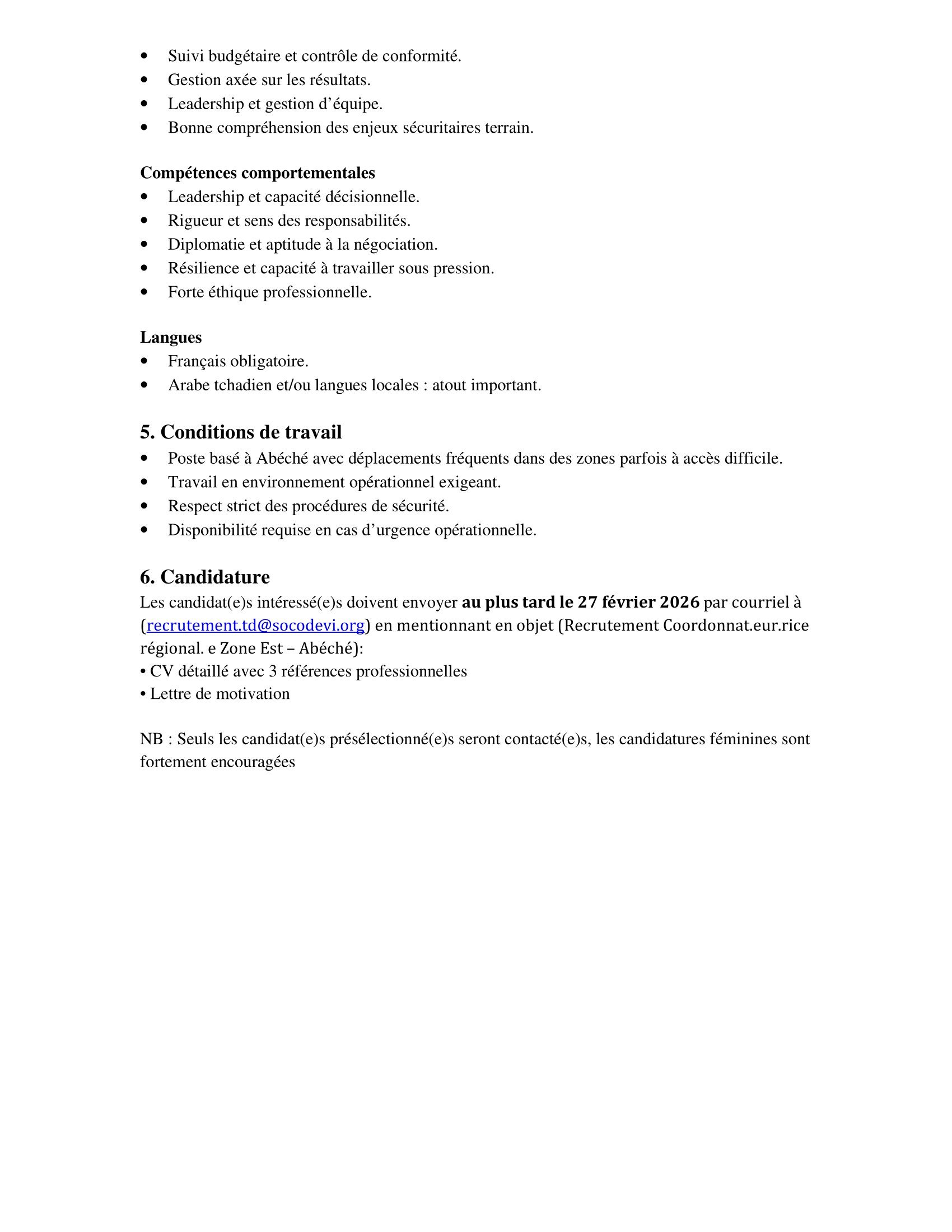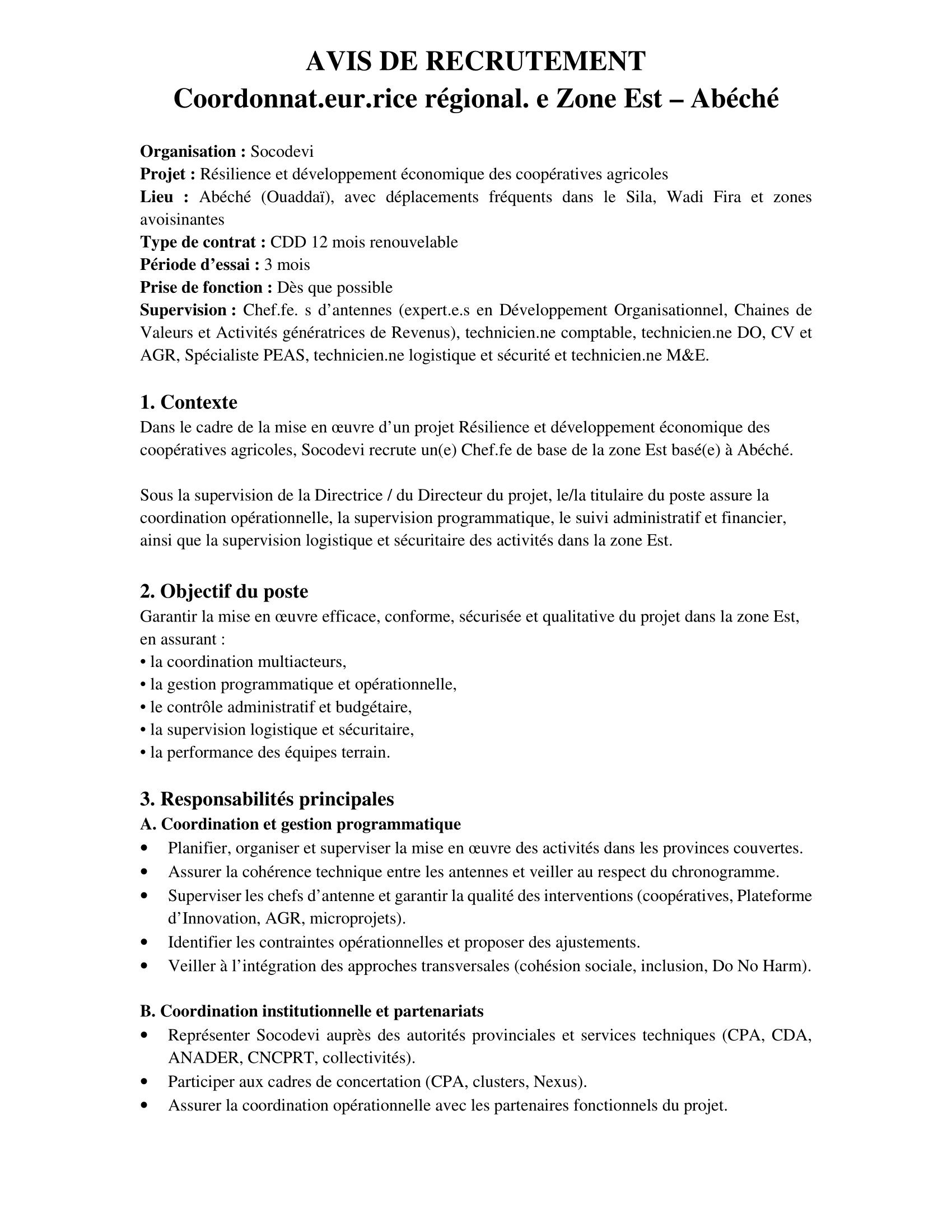 Socodevi recherche un(e) Coordinateur(rice) régional(e) Zone Est (Abéché), Tchad