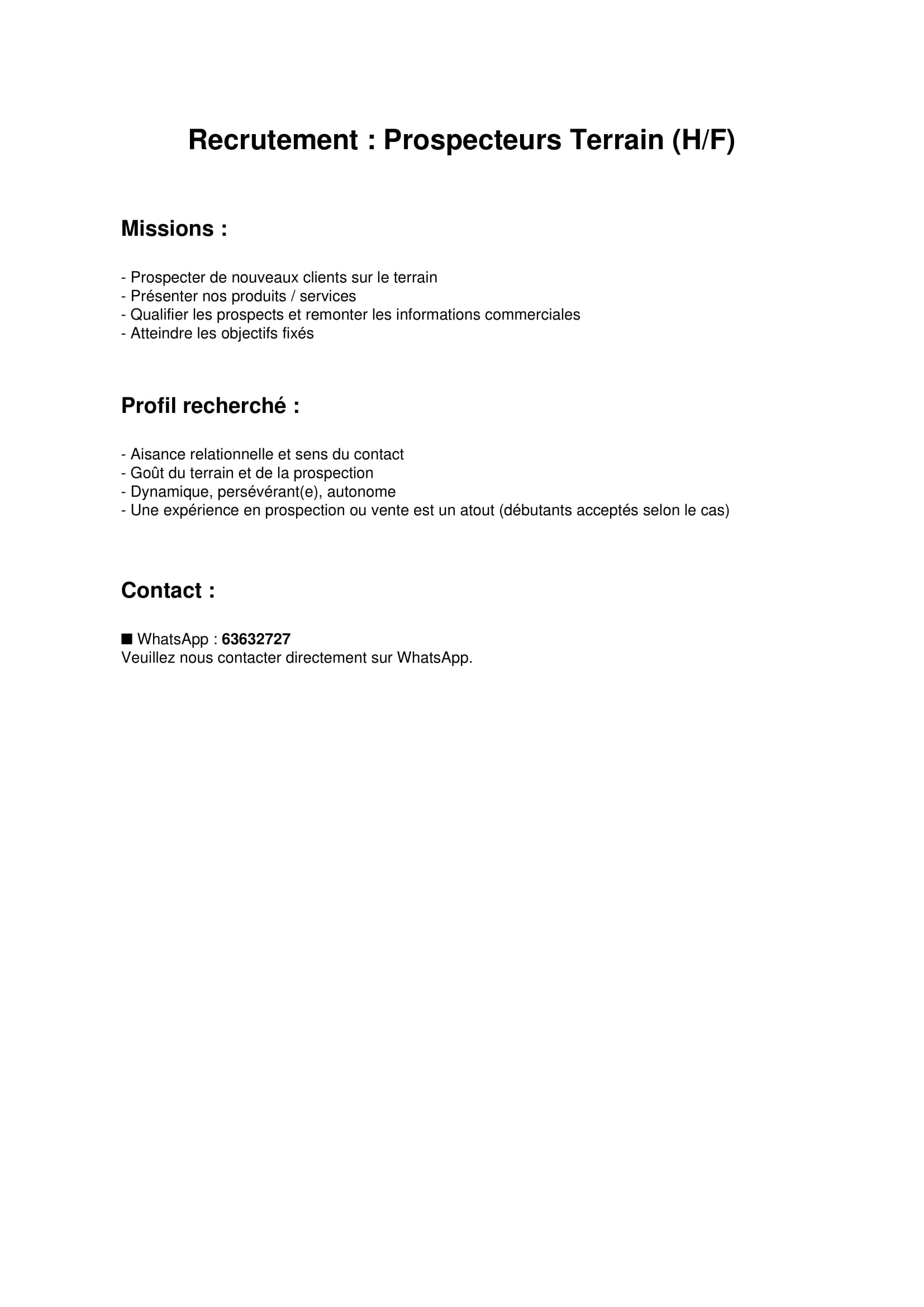 Accueil » Opportunités » Afrique » Tchad » Une Entreprise de la place basée à N’Djamena recherche des Prospecteurs Terrain (H/F), Tchad