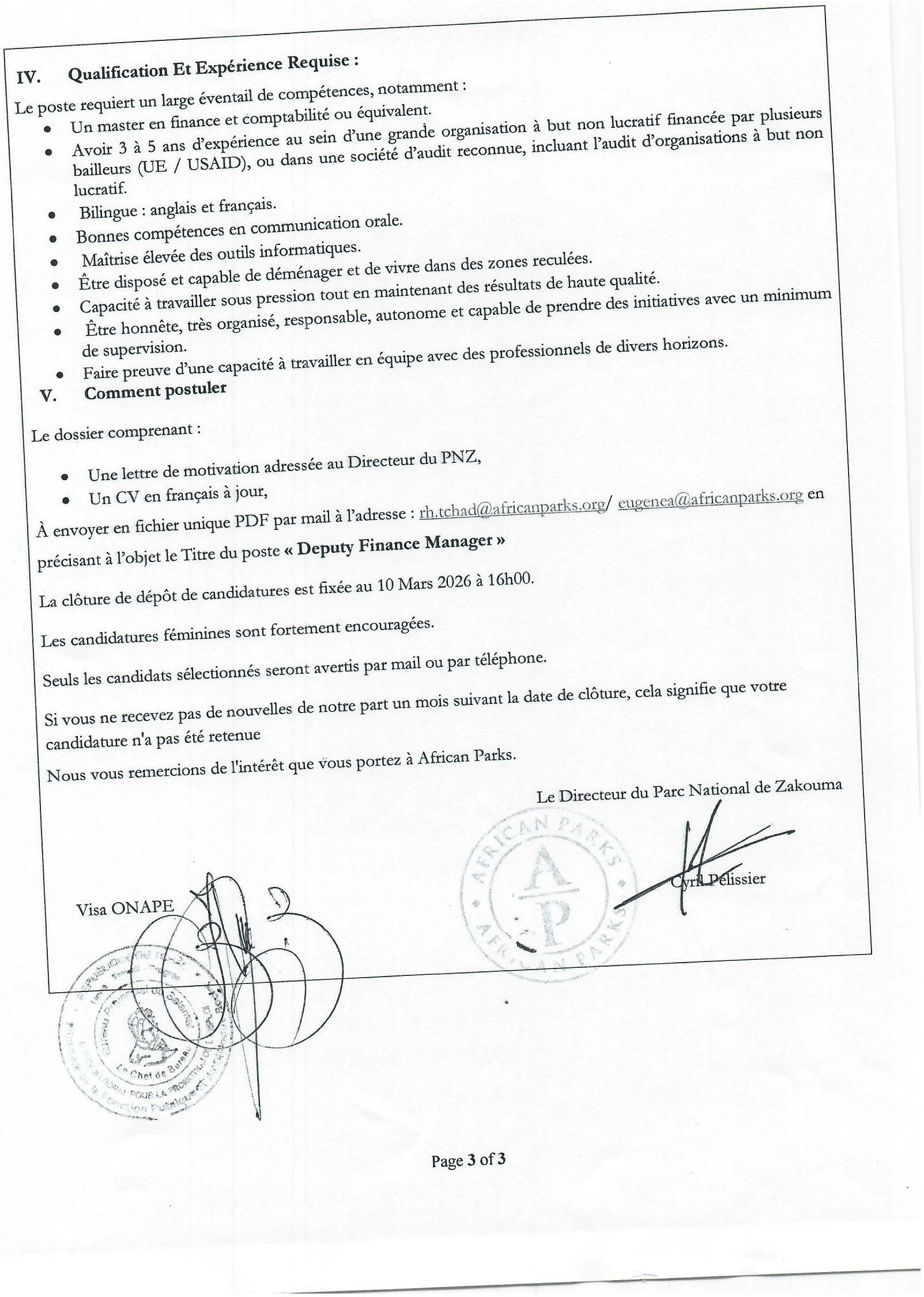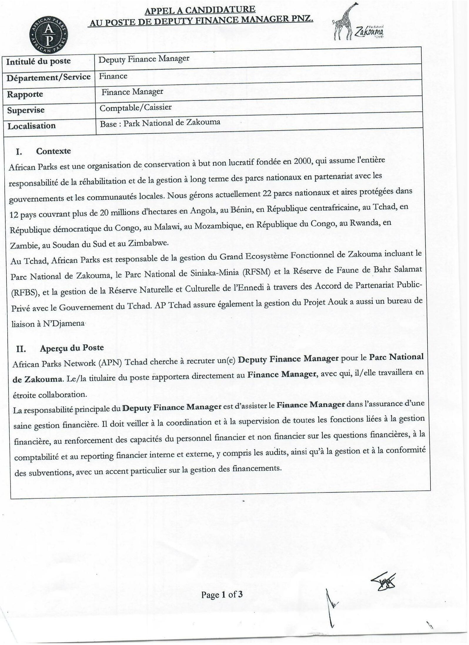 Accueil » Opportunités » Afrique » Tchad » African Parks recherche un(e) Deputy Finance Manager, Tchad