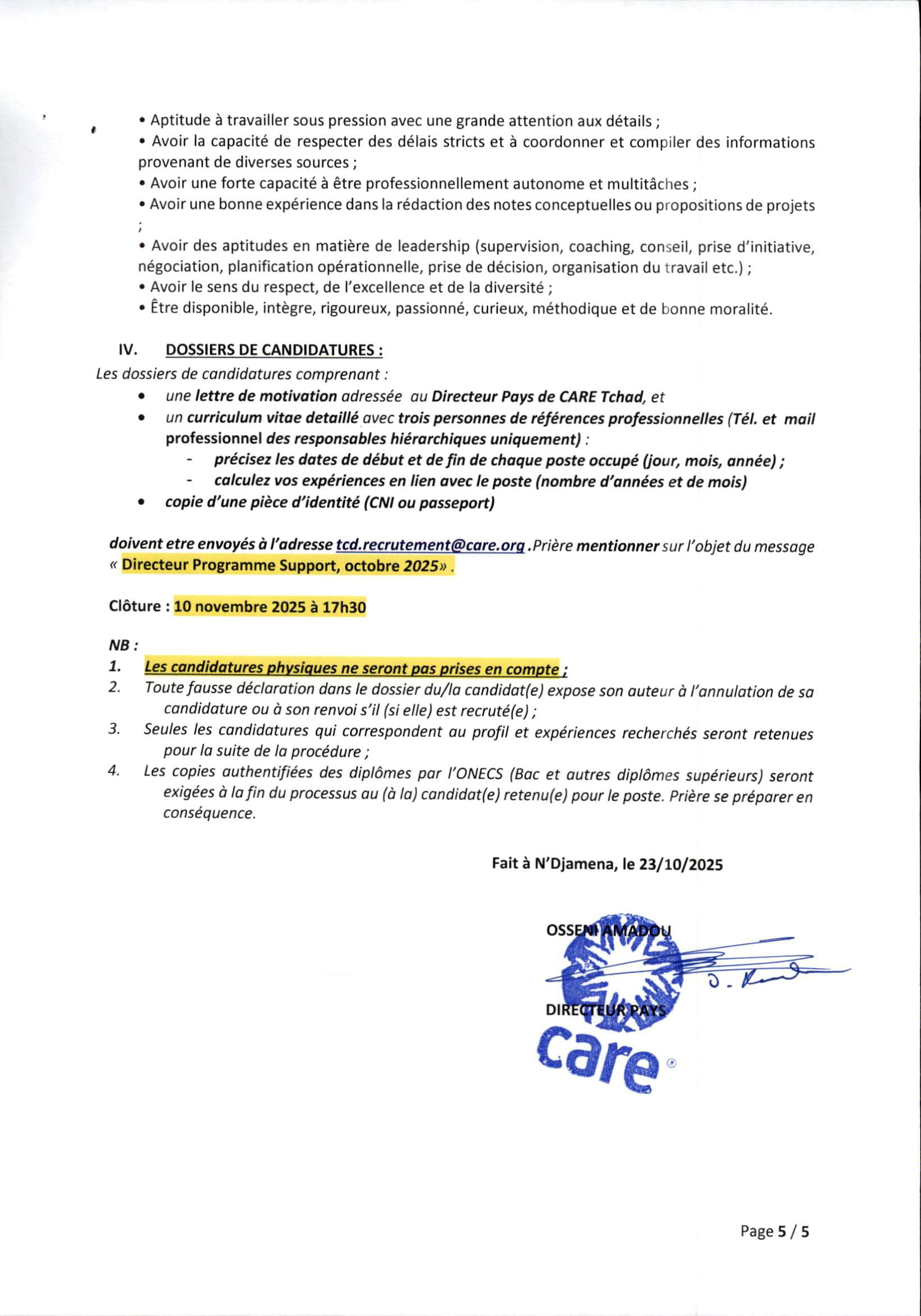 Accueil » Opportunités » Afrique » Tchad » CARE International recrute à N’Djamena un Directeur Programme Support (H/F), Tchad