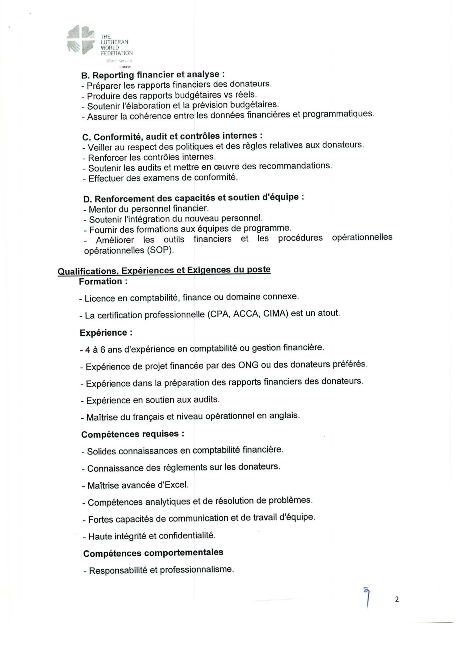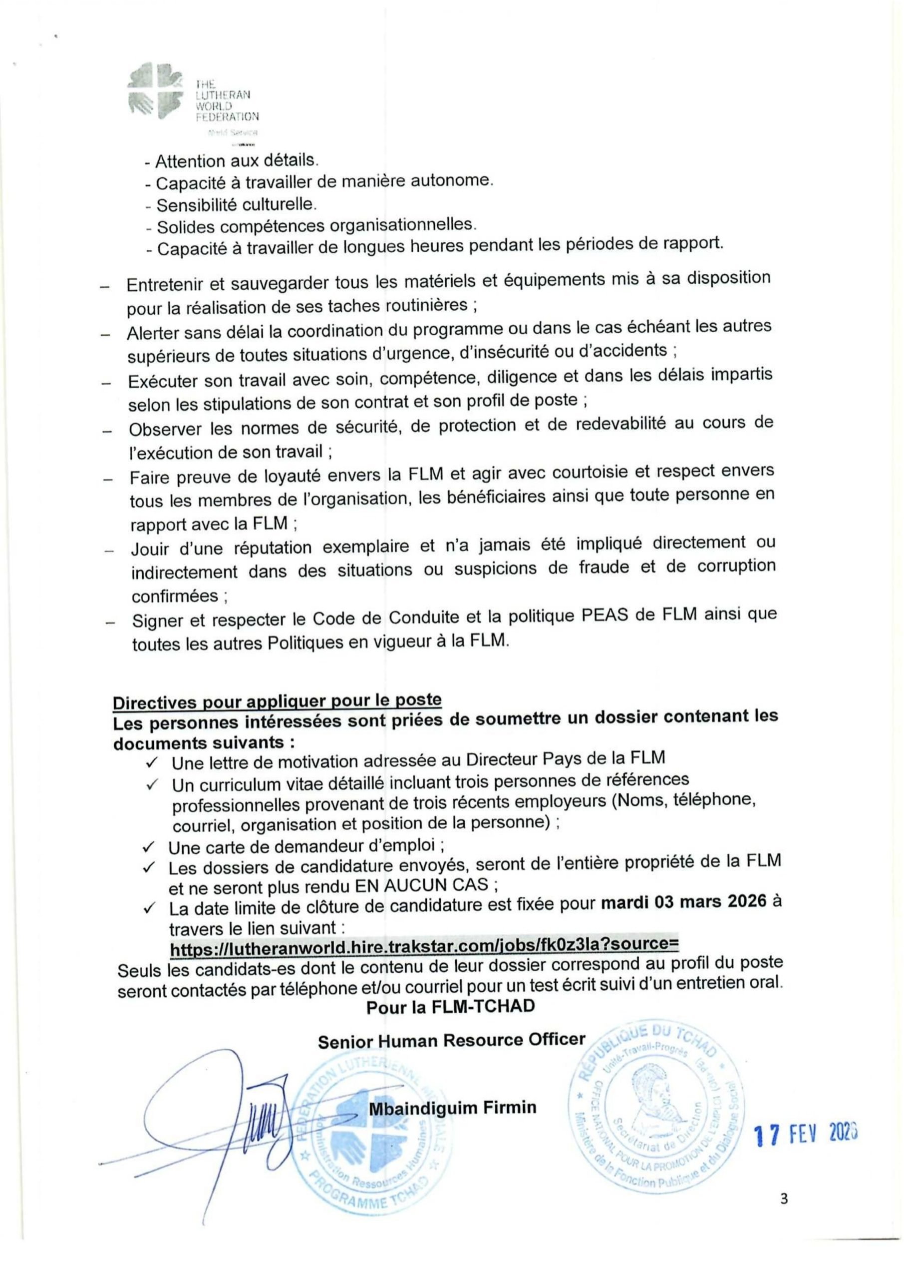 Accueil » Opportunités » Afrique » Tchad » La Fédération Luthérienne Mondiale (FLM) recrute un(e) Senior Accountant & Reporting Officer à N’Djamena, Tchad