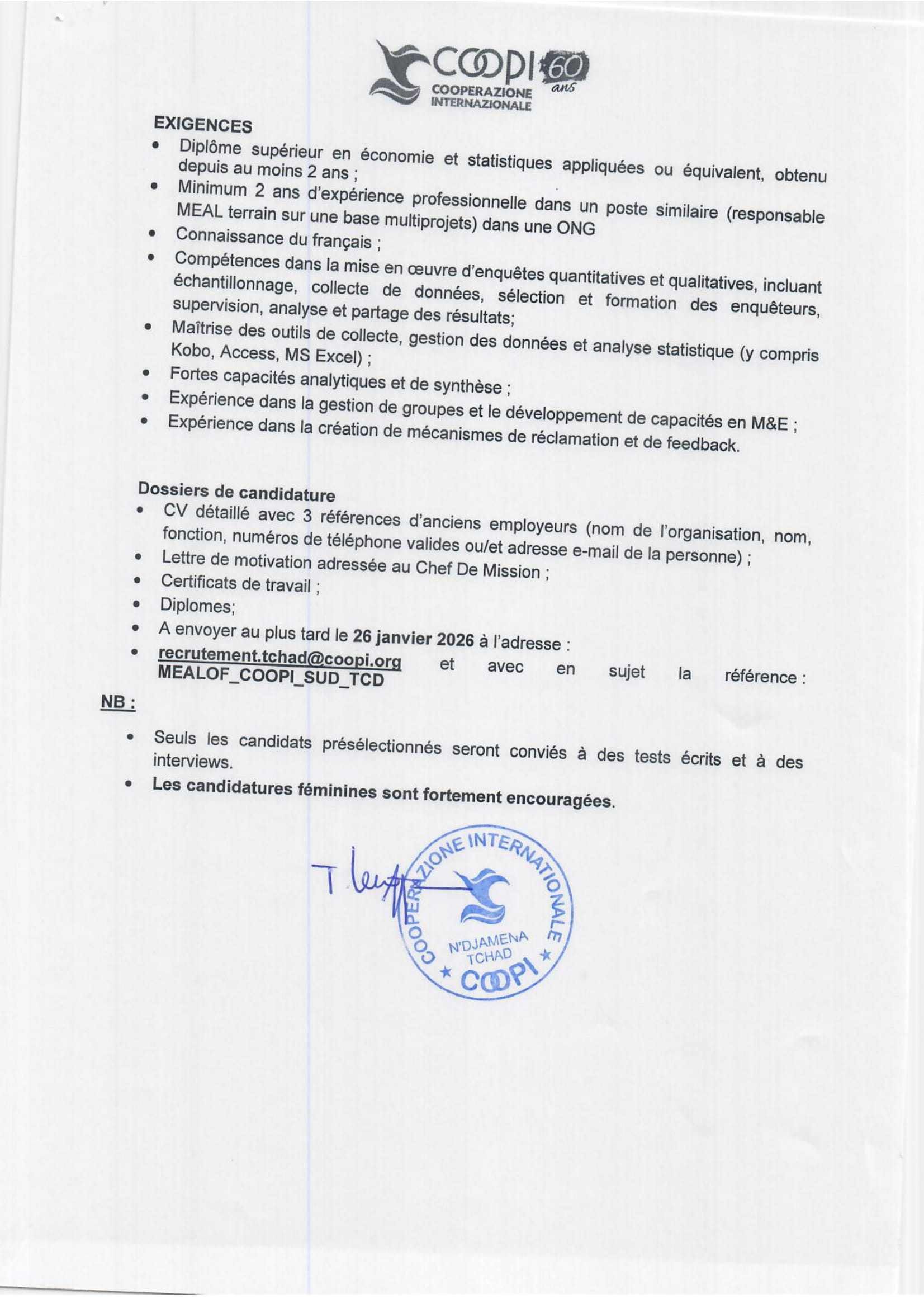 Accueil » Opportunités » Afrique » Tchad » COOPI au Tchad recherche un(e) MEAL Officer, poste basé à Sarh