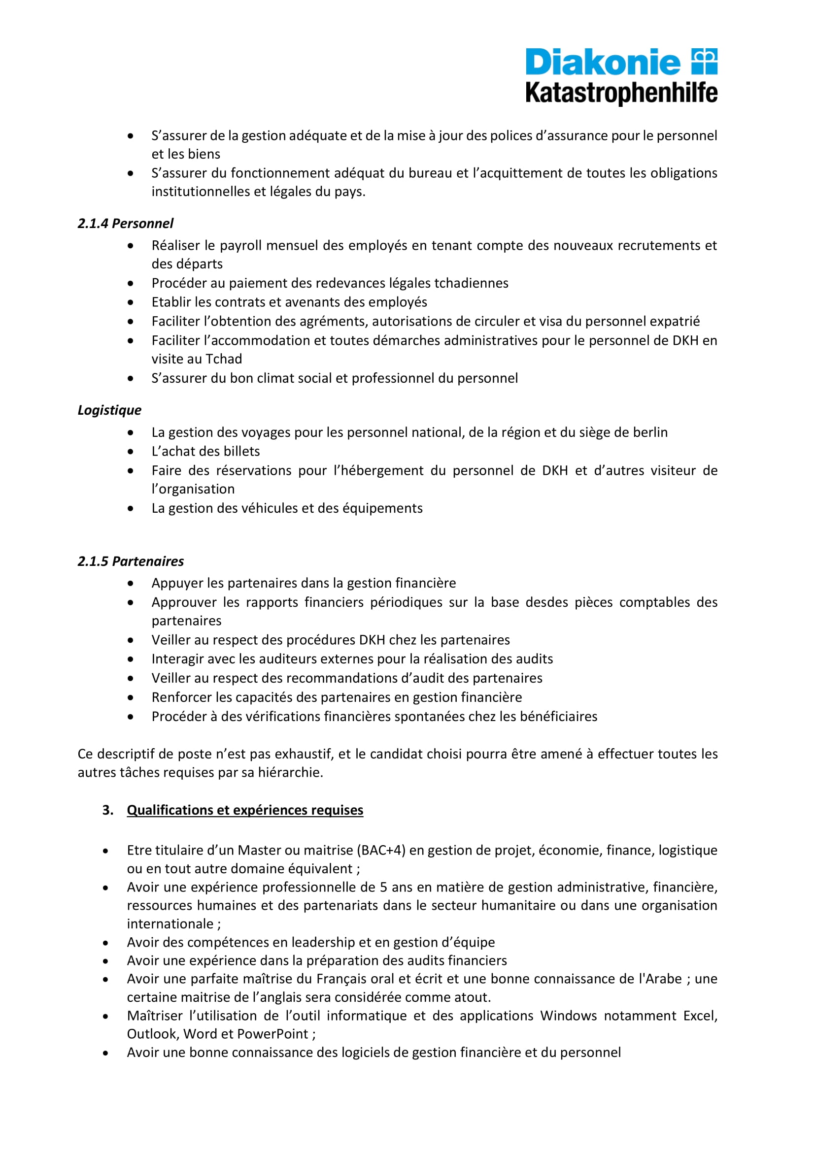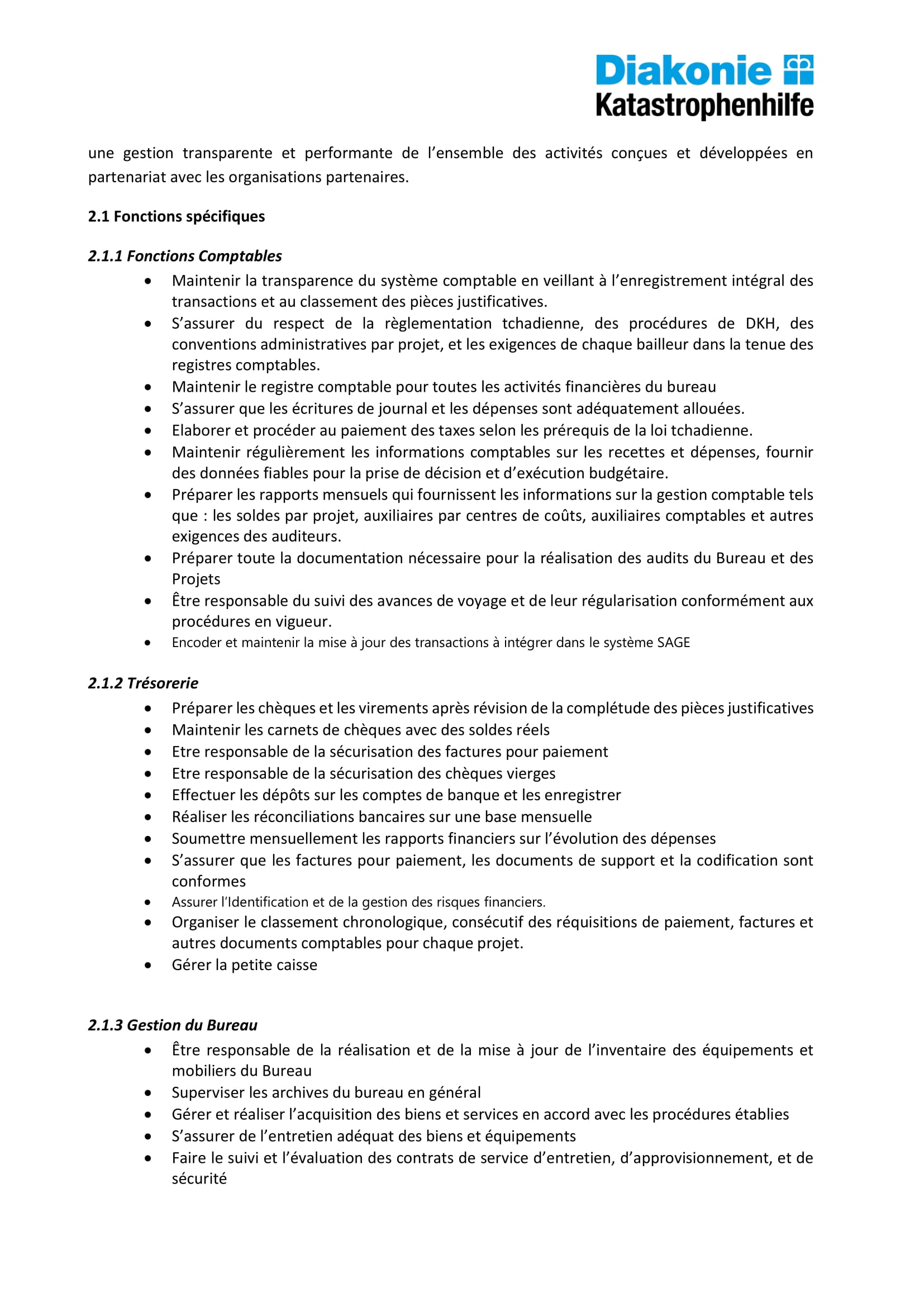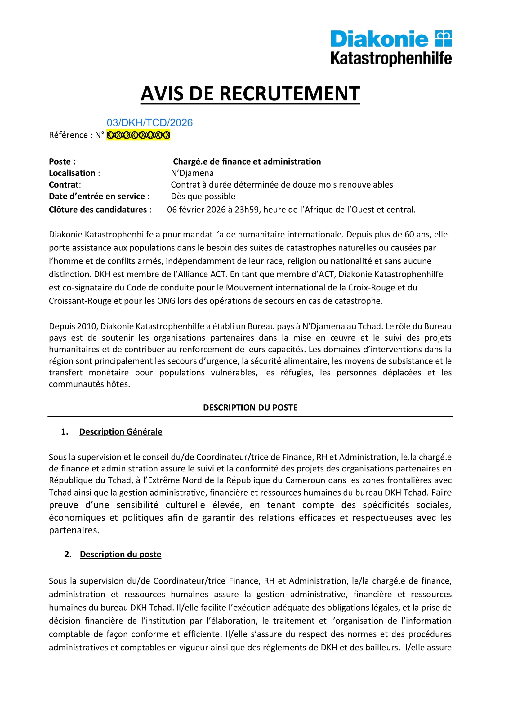 Diakonie Katastrophenhilfe recherche un(e) Chargé(e) de finance et administration, Tchad