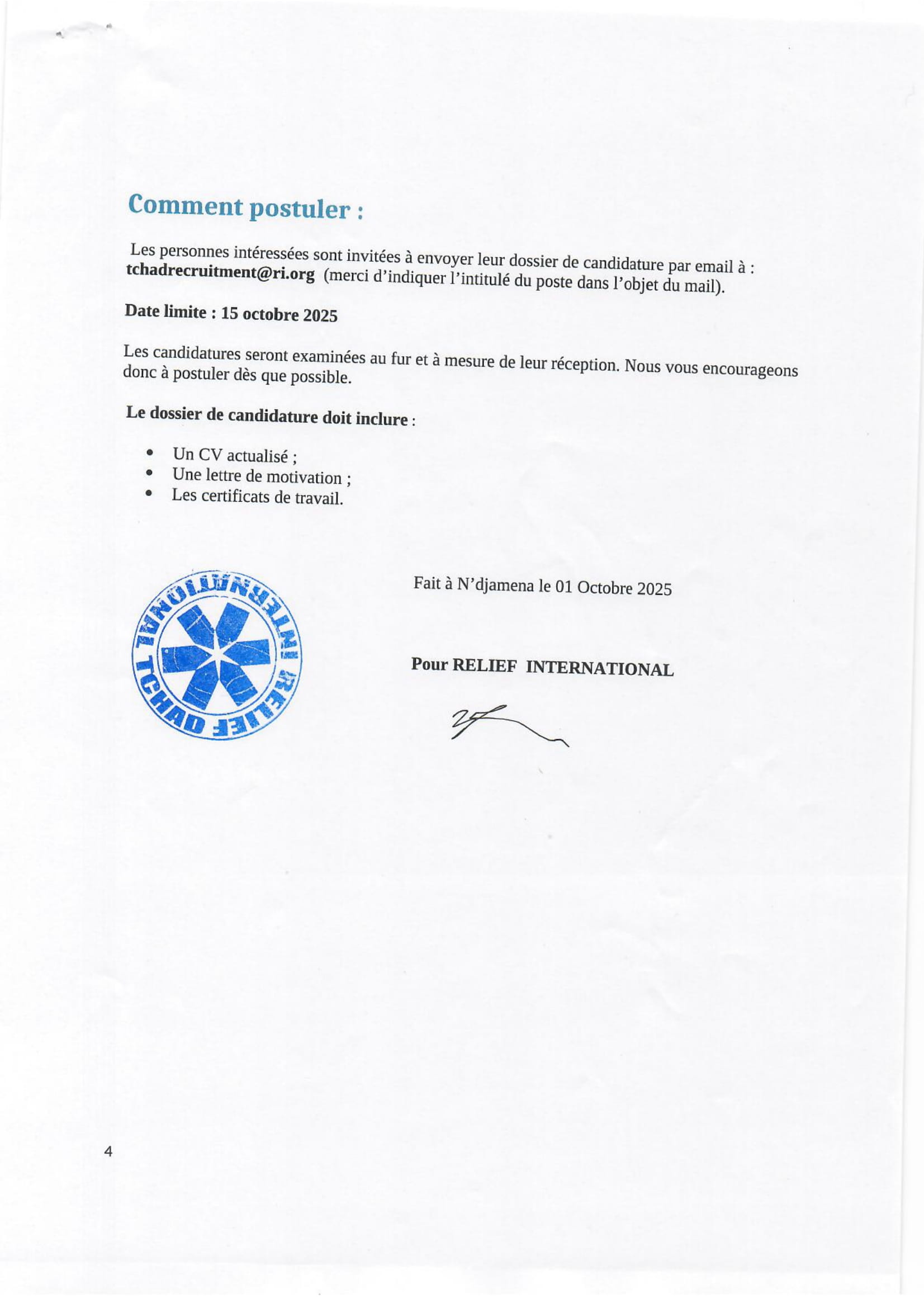 Accueil » Opportunités » Afrique » Tchad » Relief International recrute un Coordinateur MEAL (H/F) à N’Djamena, Tchad
