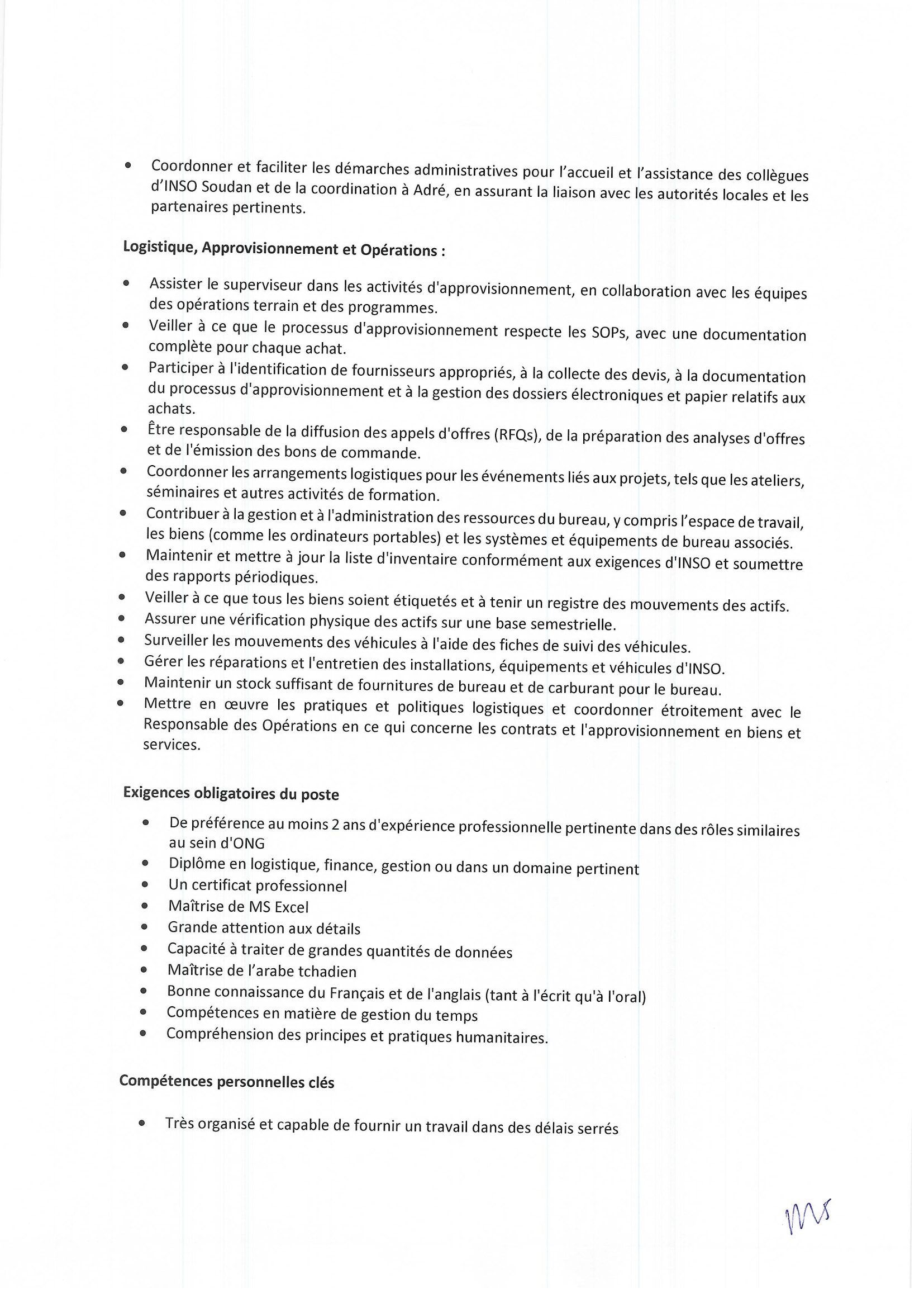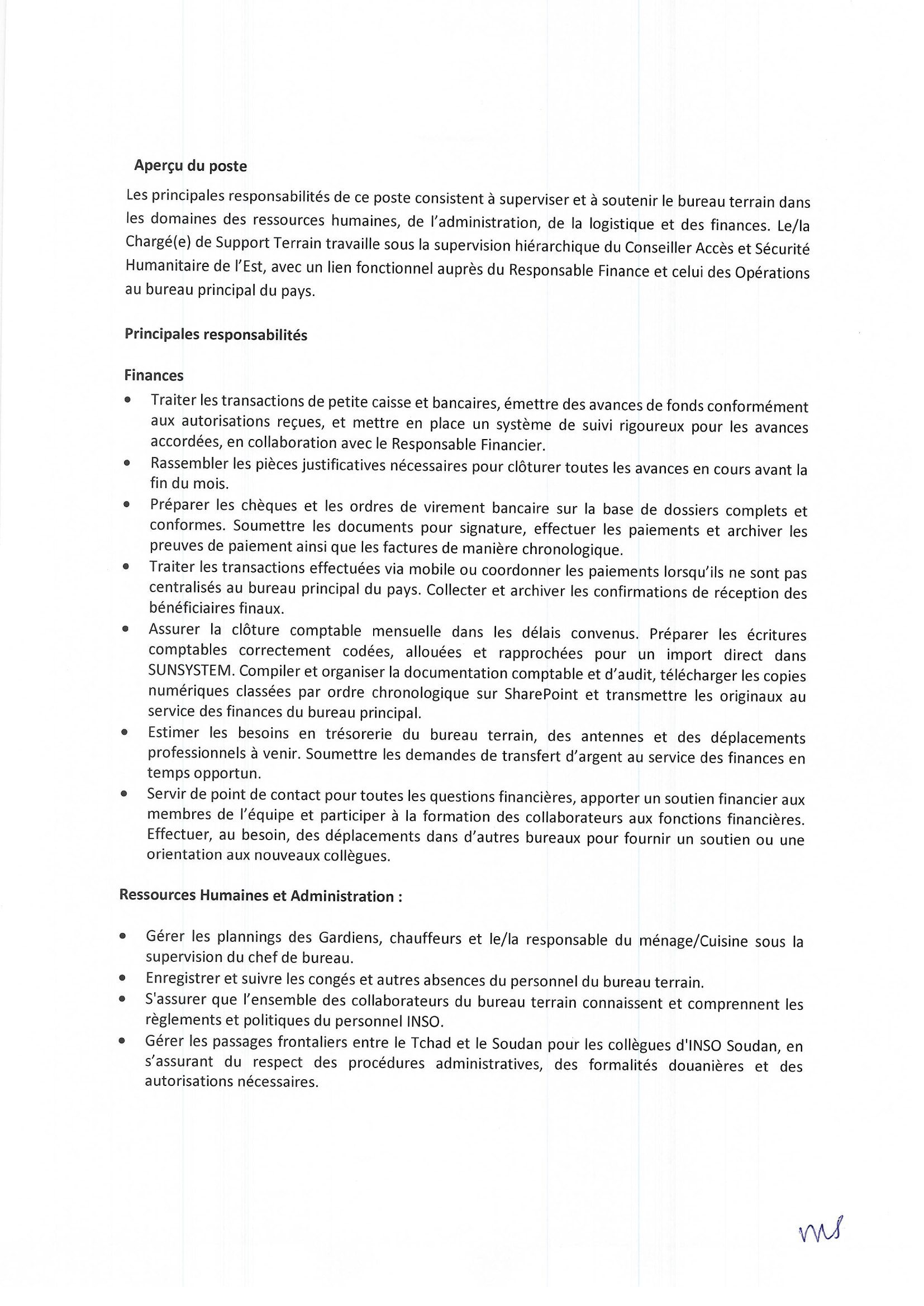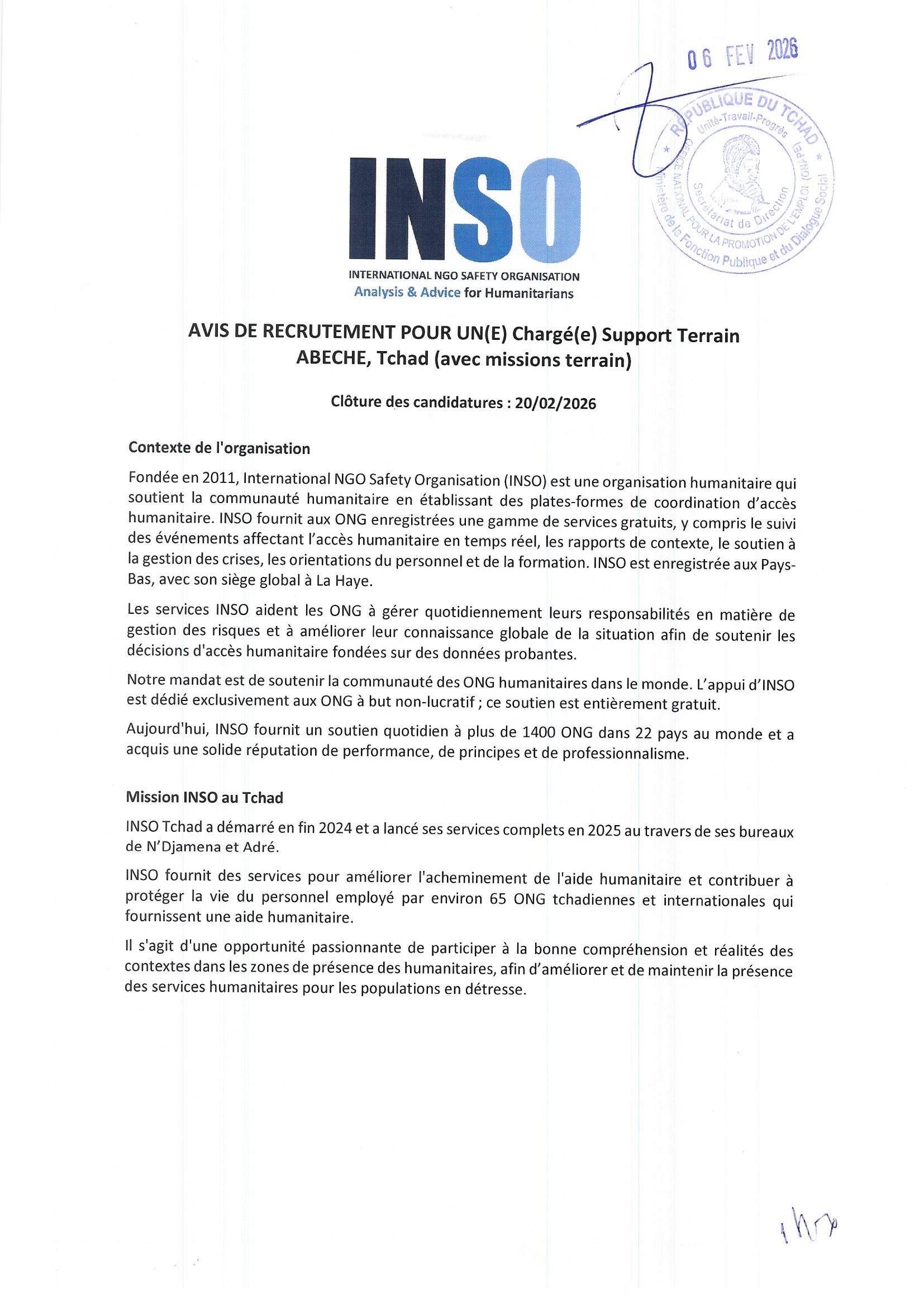 INSO recrute un(e) Chargé(e) support terrain basé(e) à Abéché, Tchad