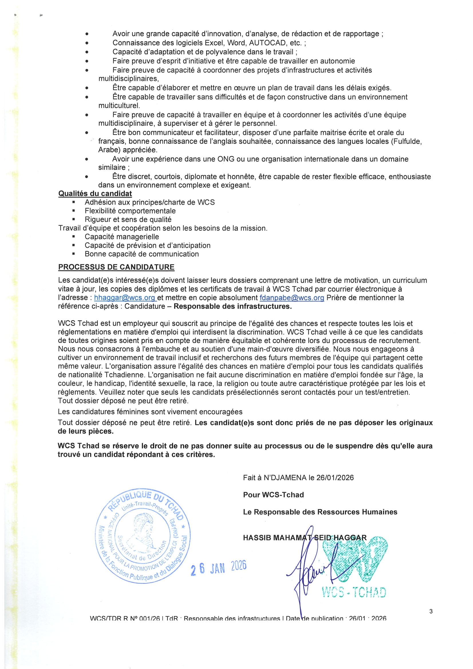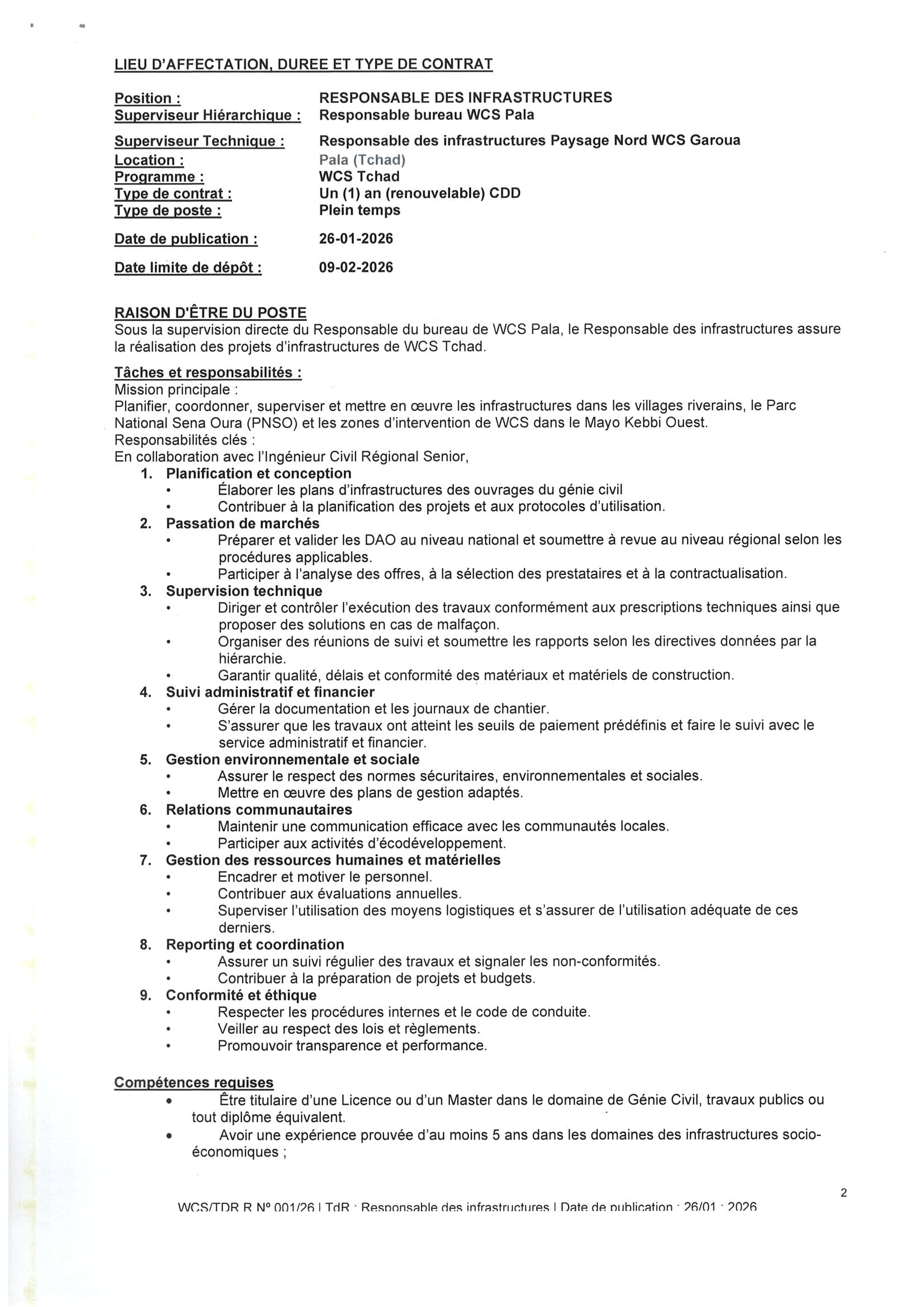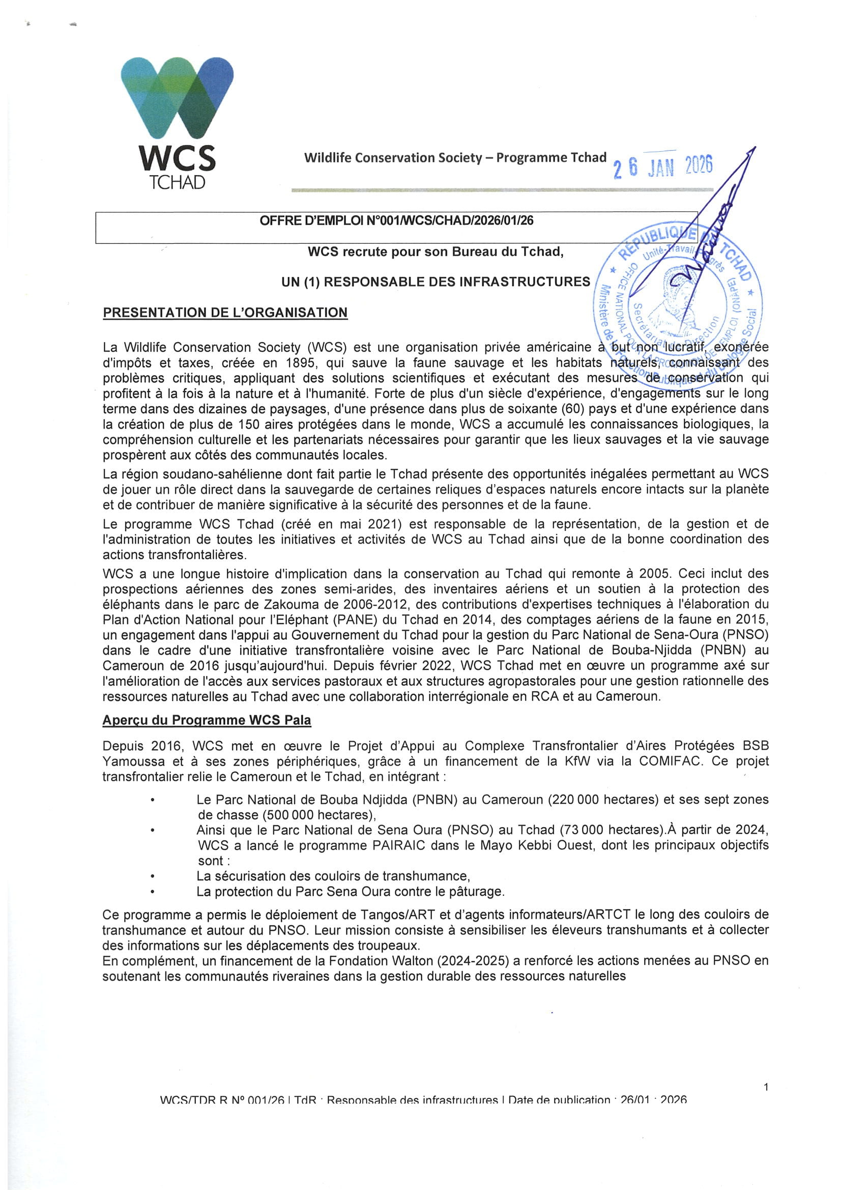 Accueil » Opportunités » Afrique » Tchad » La Wildlife Conservation Society (WCS) recrute un(e) Responsable des Infrastructures au Tchad