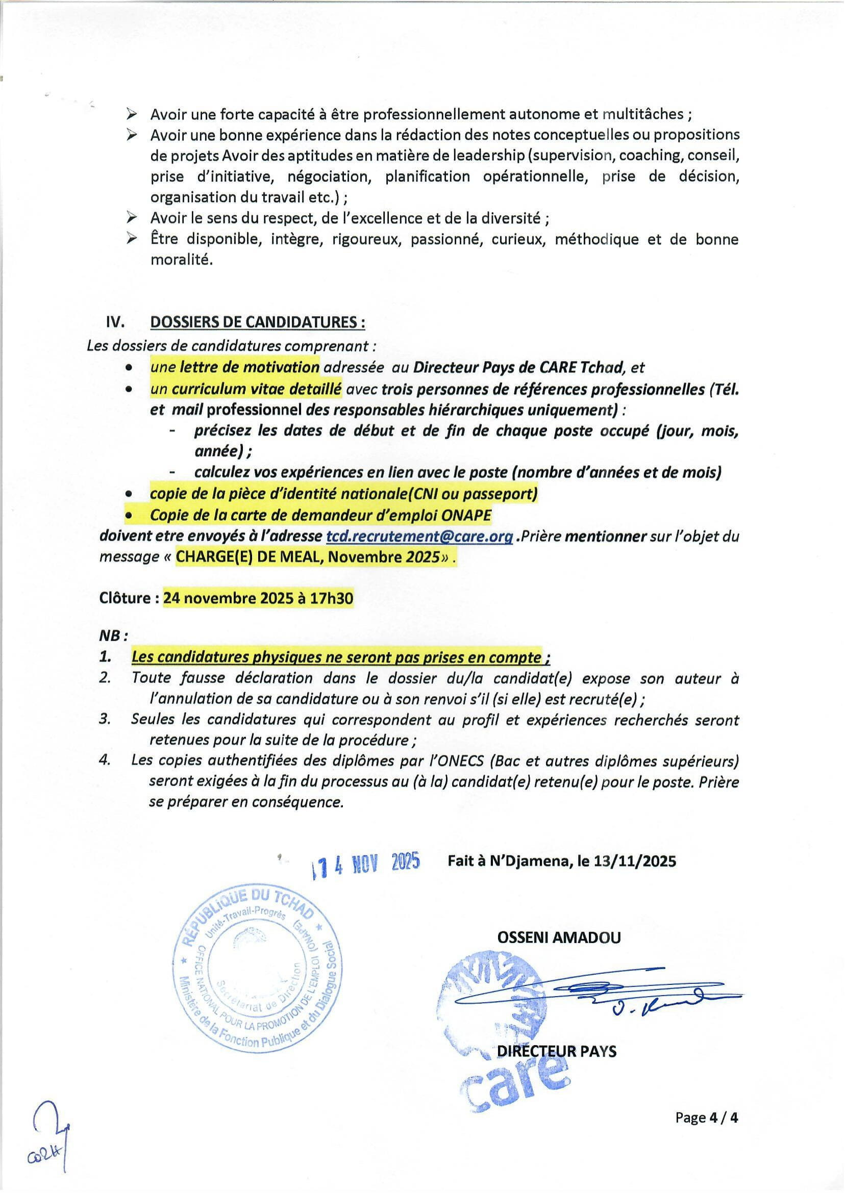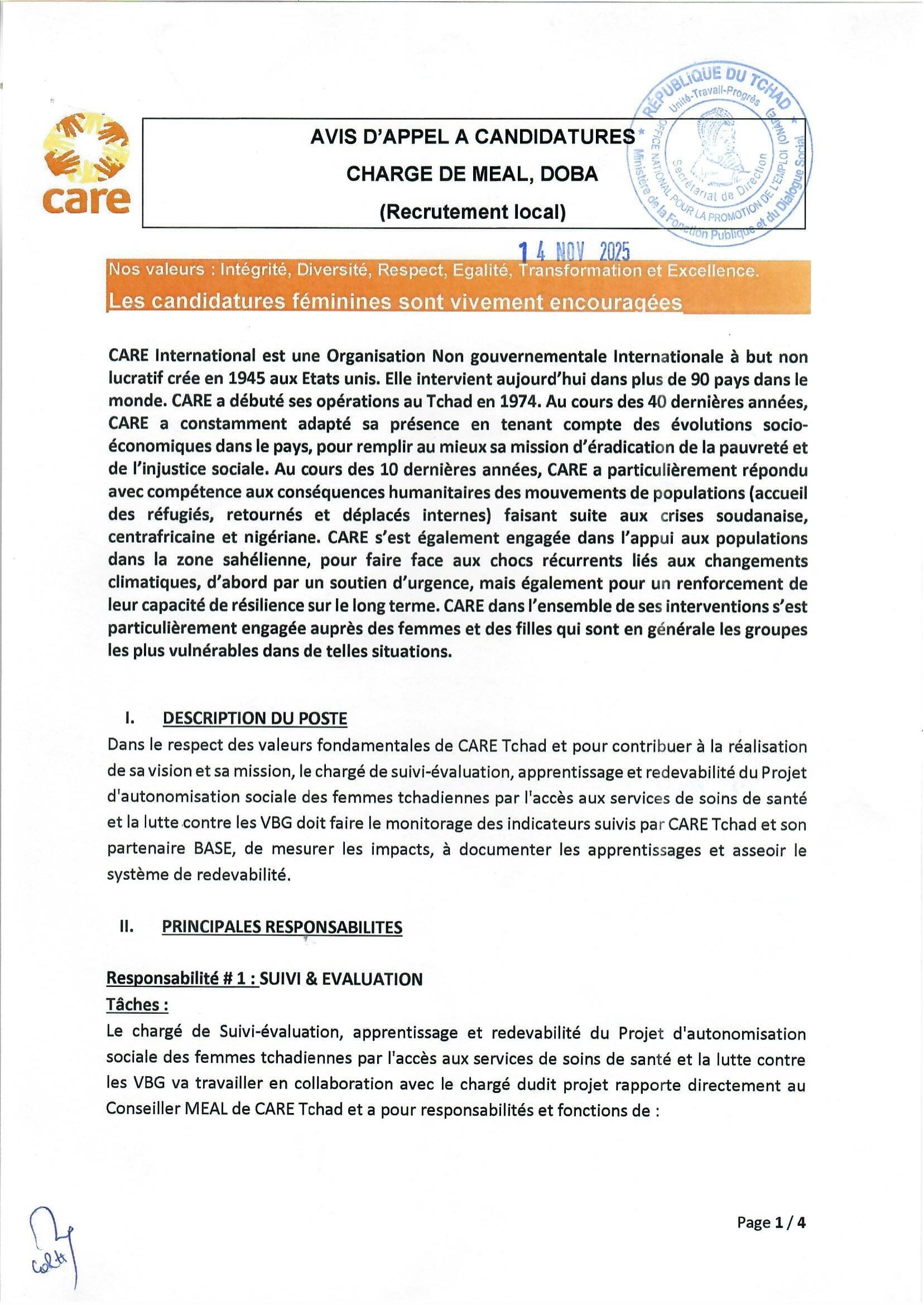 Accueil » Opportunités » Afrique » Tchad » CARE International recrute pour le poste d’un(e) Chargé(e) MEAL basé(e) à Doba, Tchad