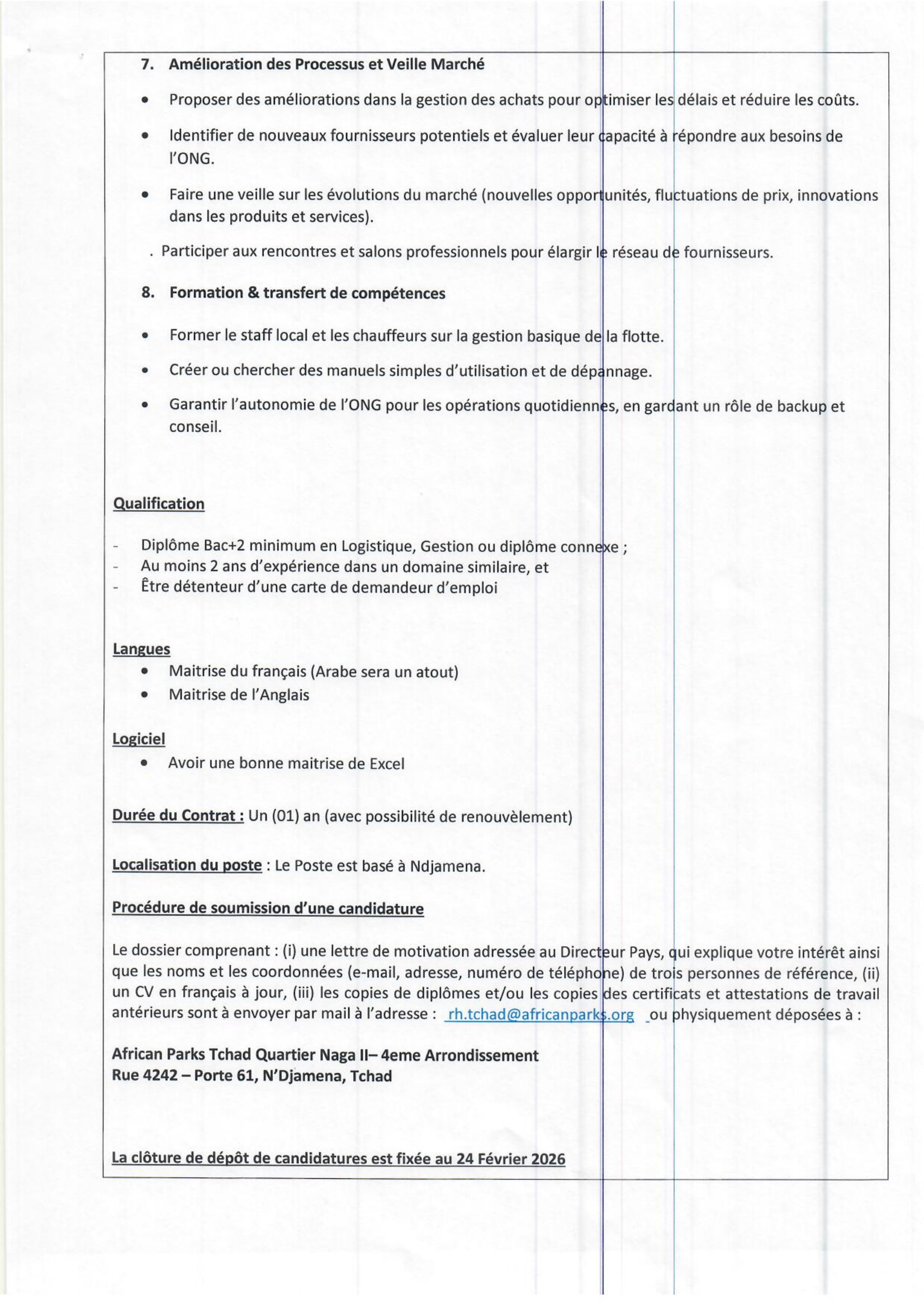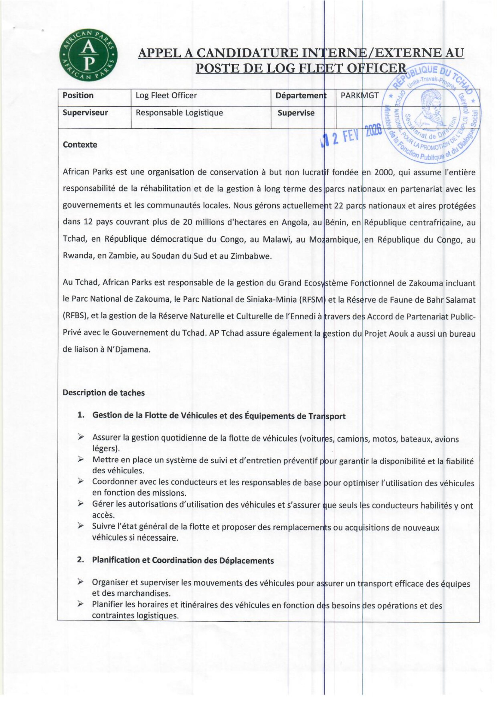 Accueil » Opportunités » Afrique » Tchad » African Parks recrute un(e) Log Fleet Officer, Tchad