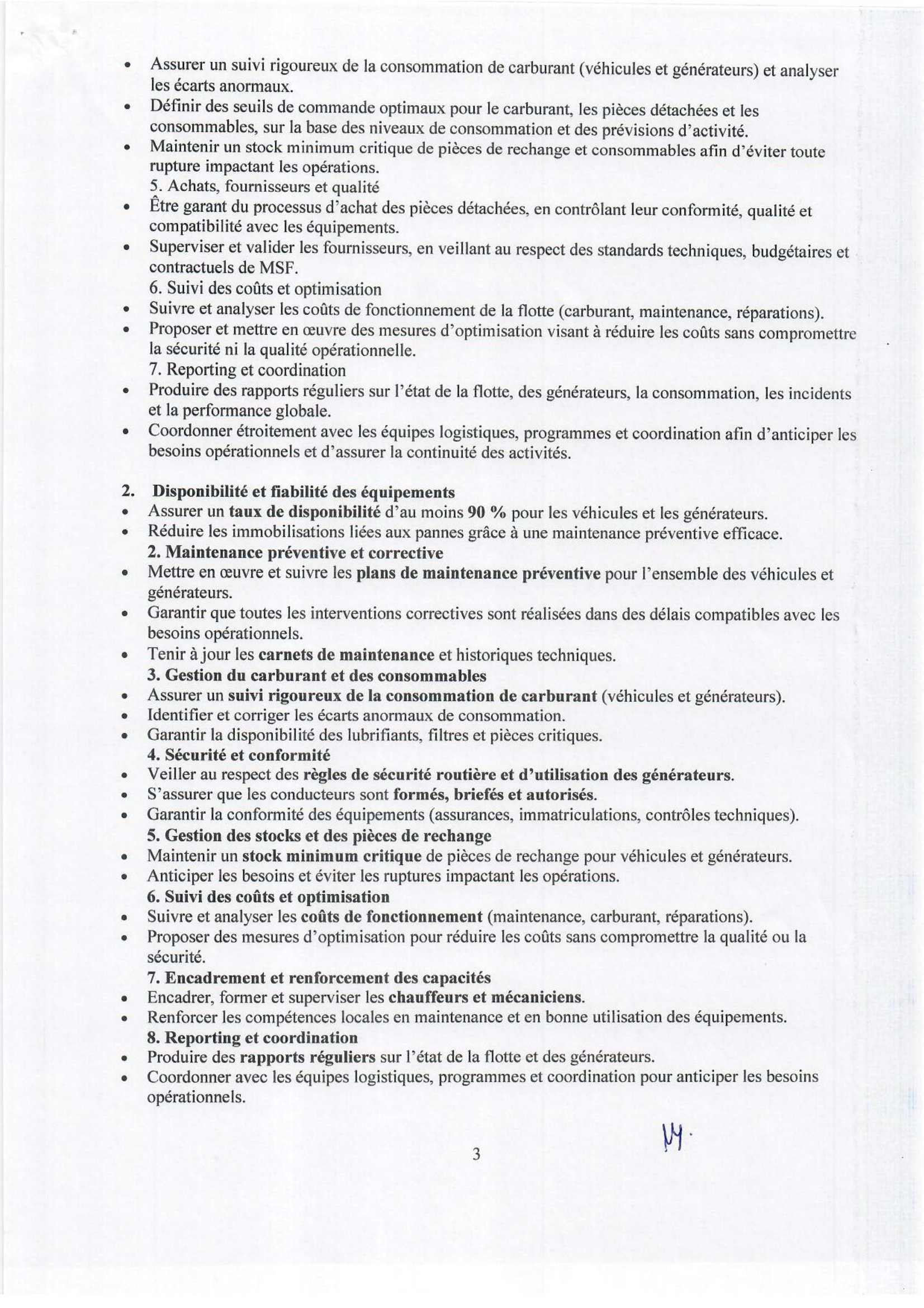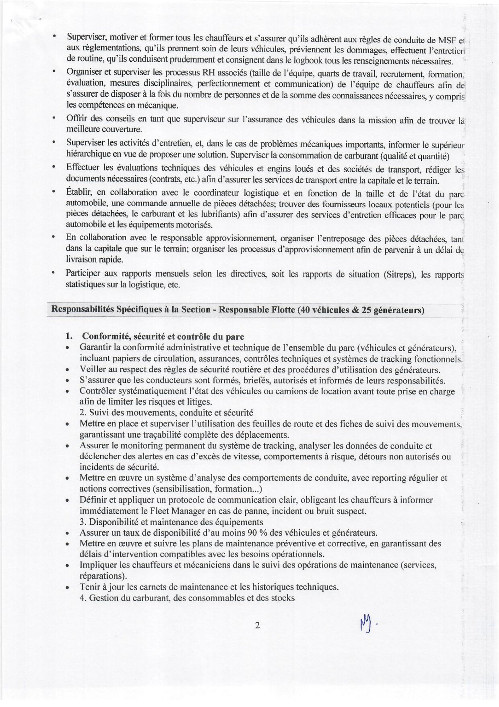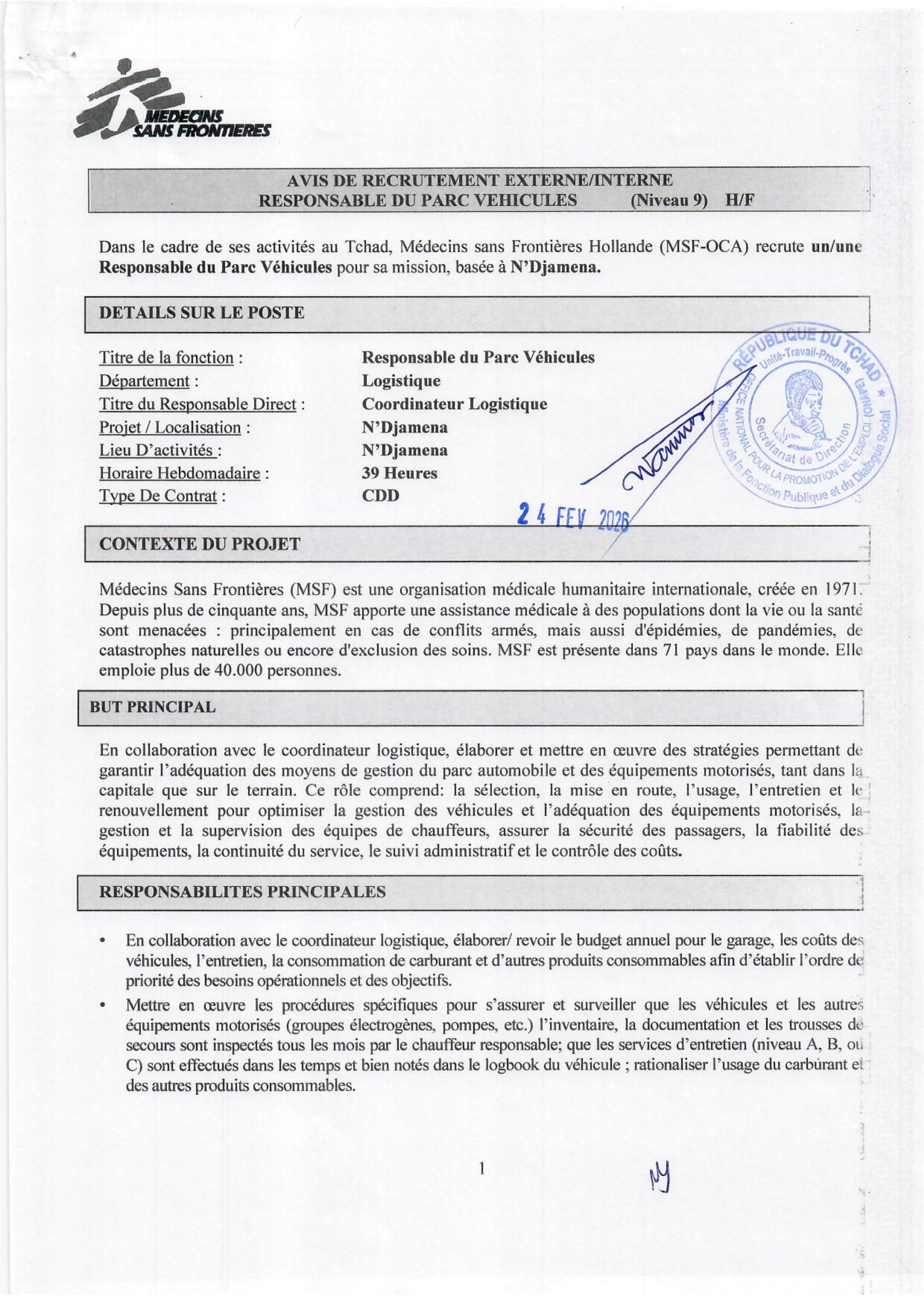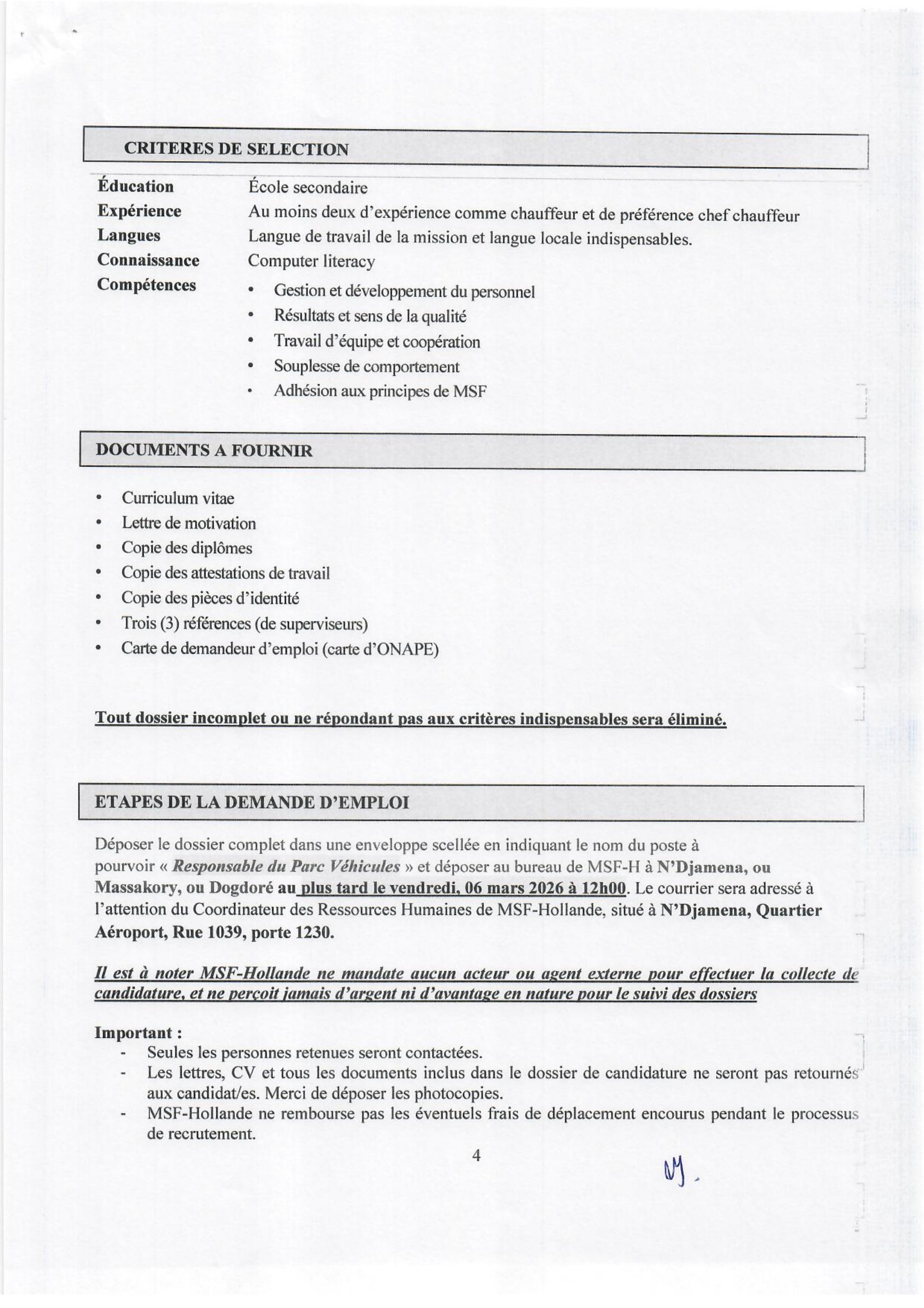 Médecins Sans Frontières (MSF) recrute un(e) Responsable du Parc Véhicules basé(e) à N’Djamena, Tchad