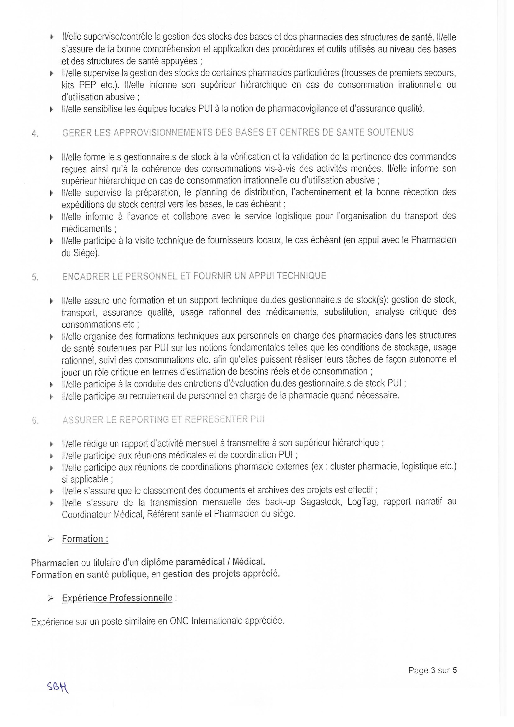 Première Urgence Internationale (PUI) recrute un(e) Responsable Pharmacie à Adré (Tchad) – Offre humanitaire