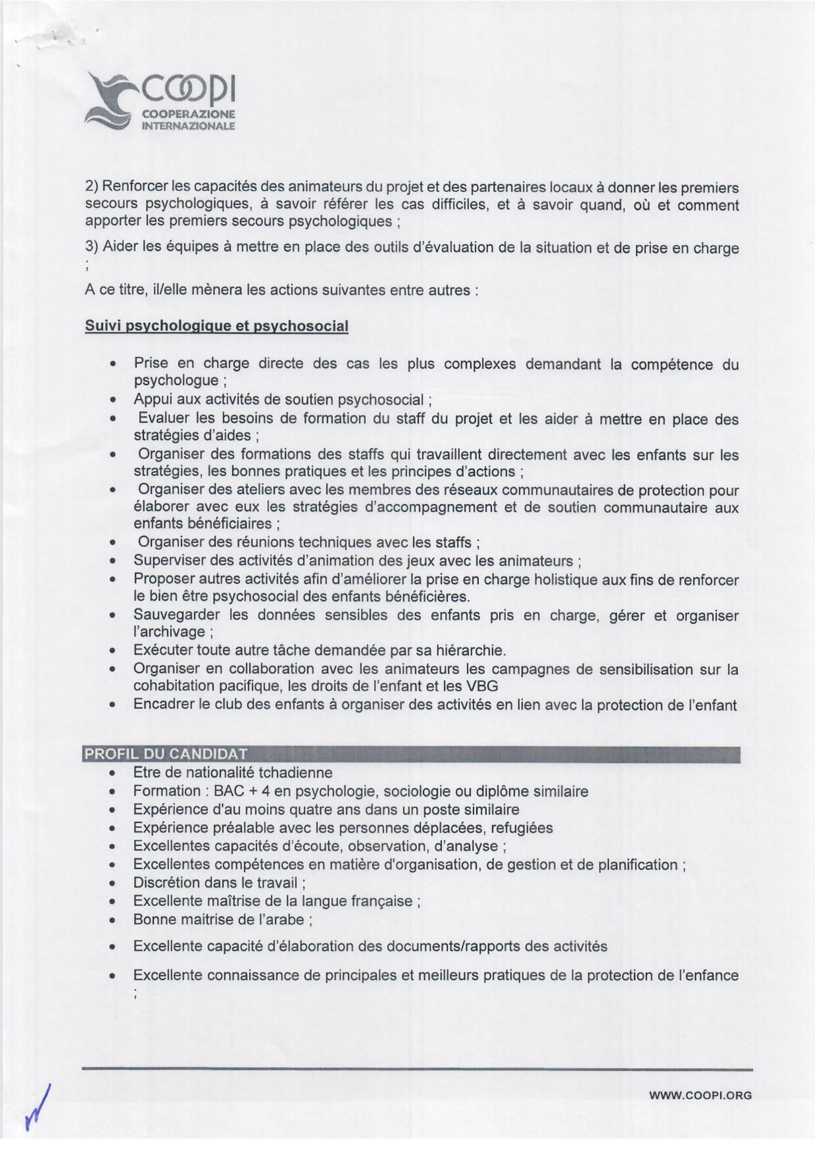 Accueil » Opportunités » Afrique » Tchad » Carrière: Cooperazione Internazionale (COOPI) recrute un Psychologue (H/F), Bol, Tchad