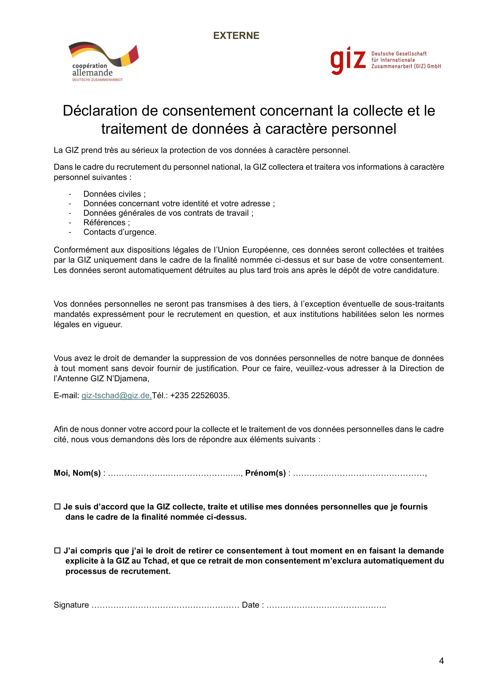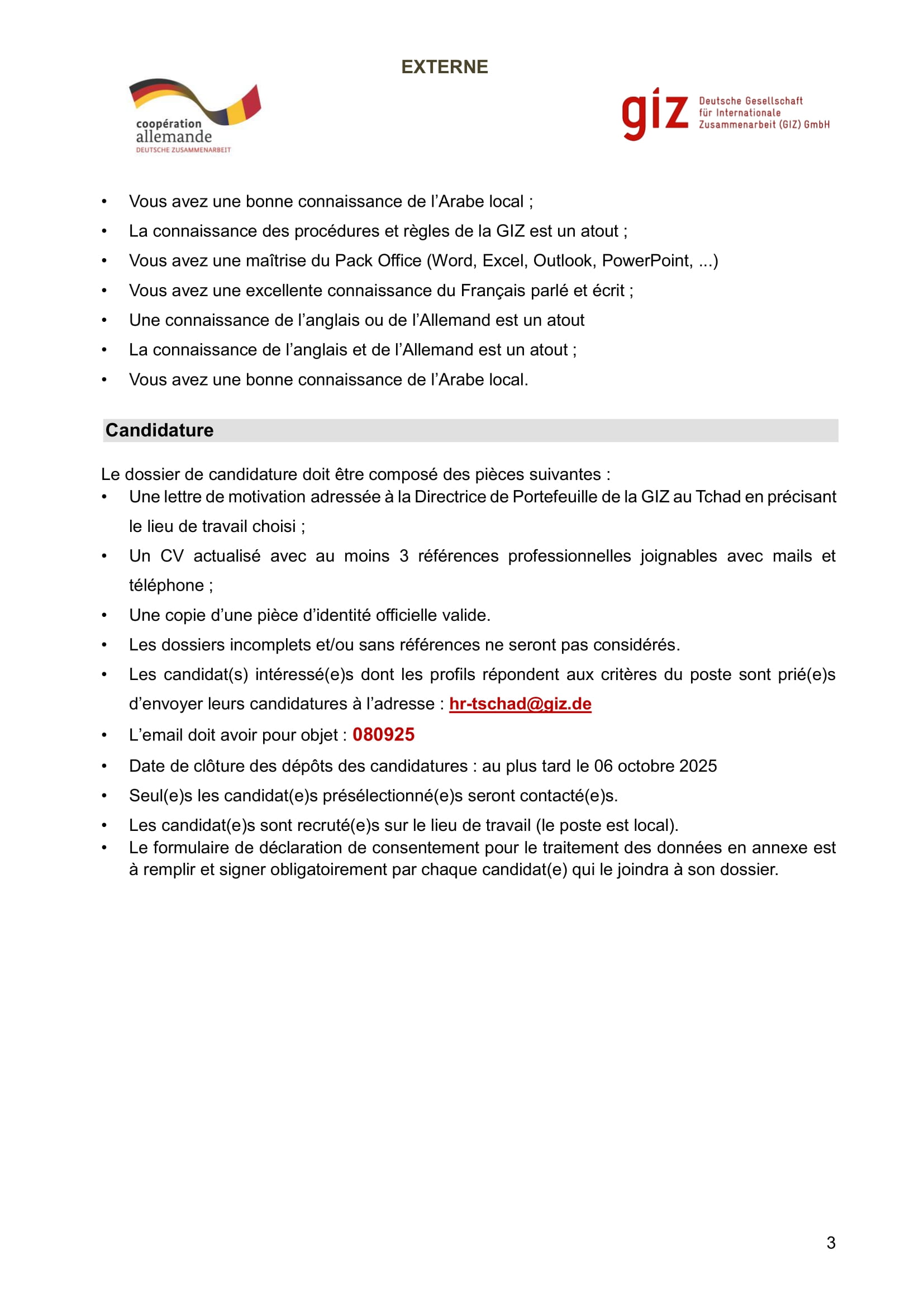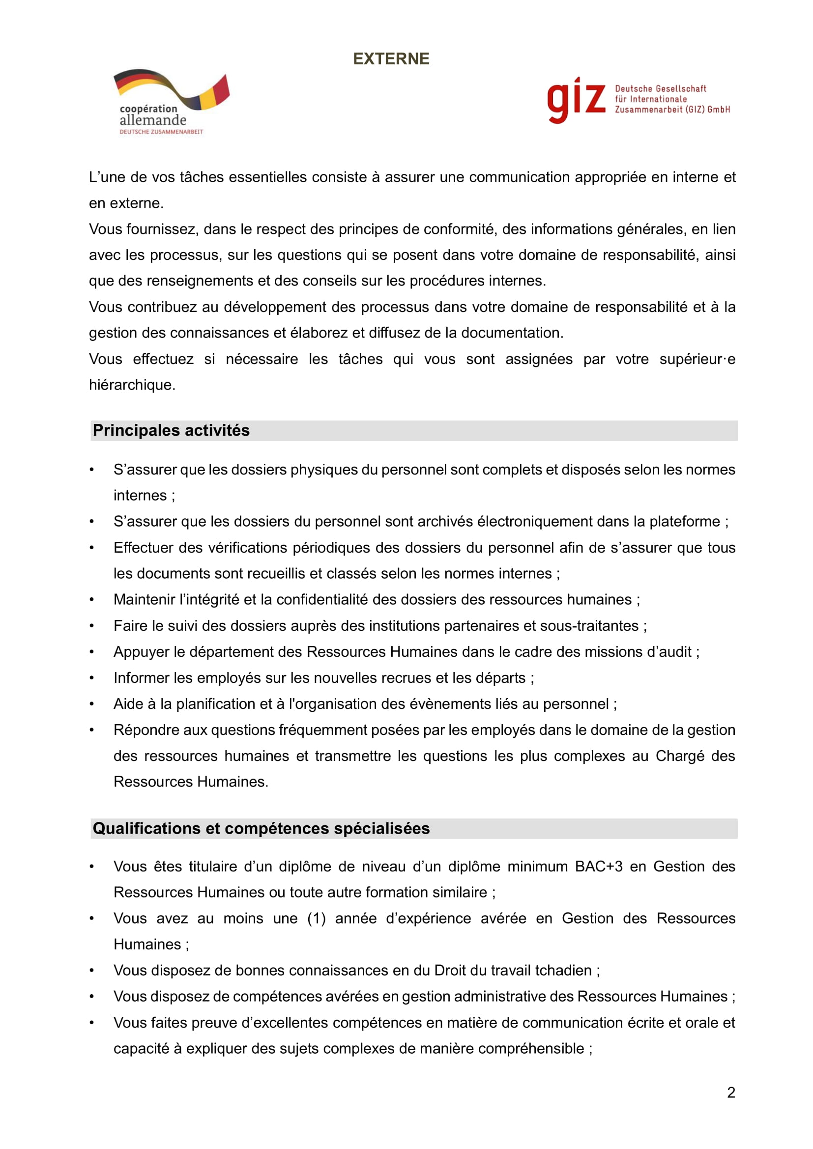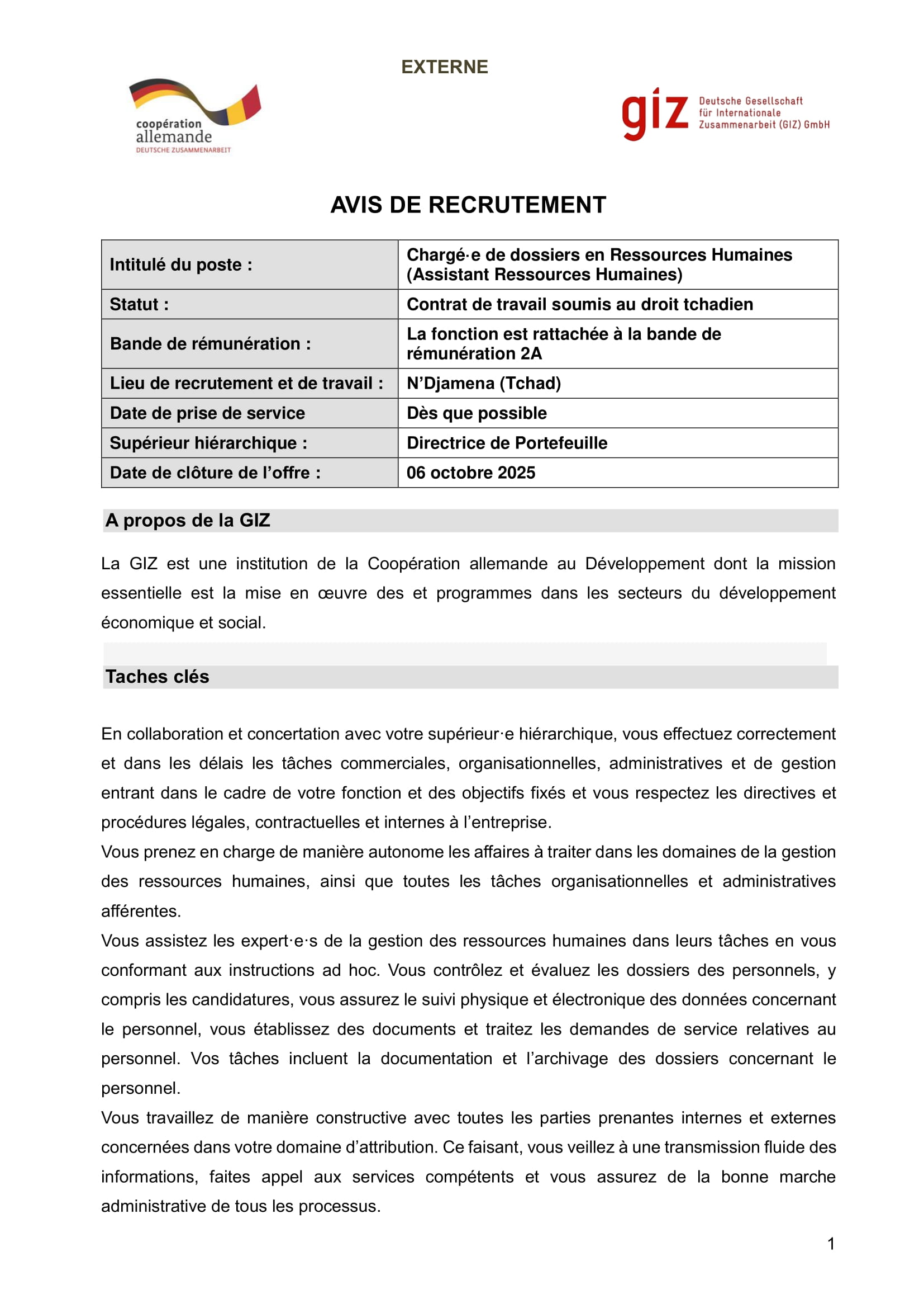 Accueil » Opportunités » Afrique » Tchad » GIZ recrute un Assistant des Ressources Humaines (H/F) à N’Djamena, Tchad