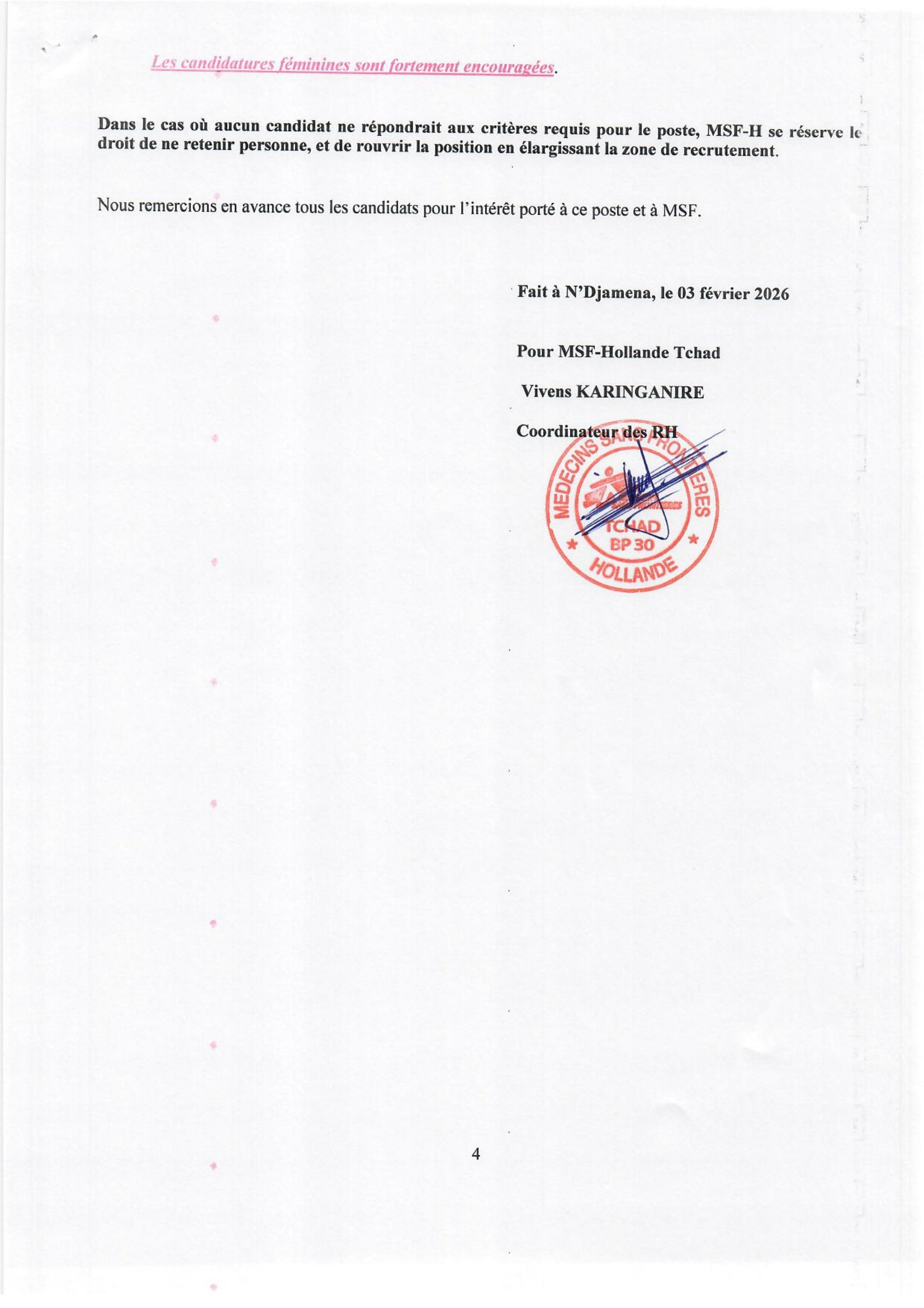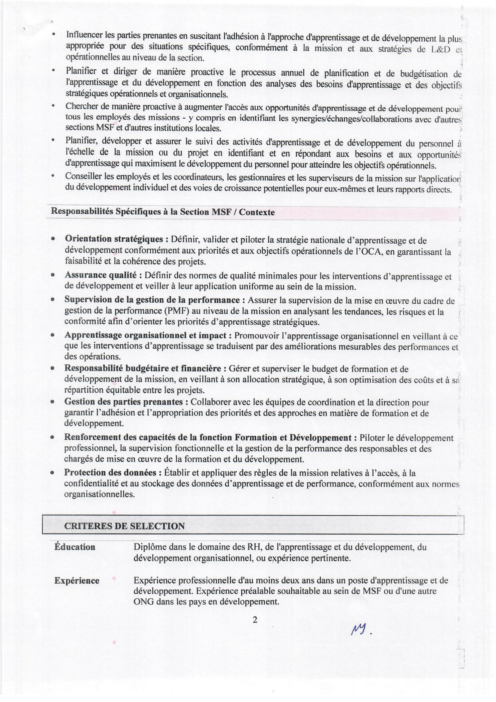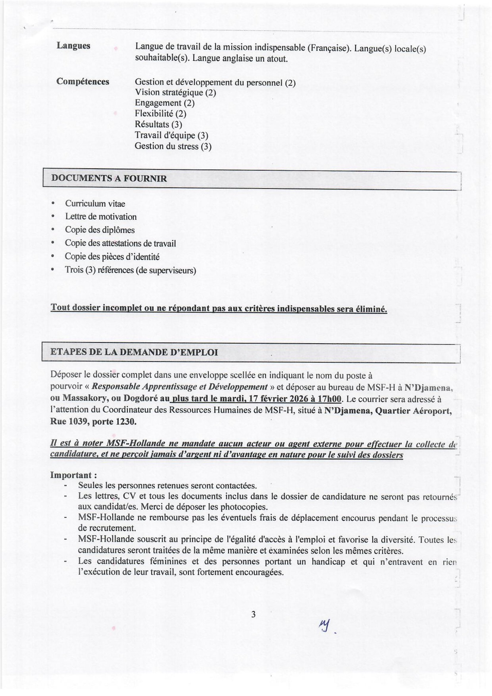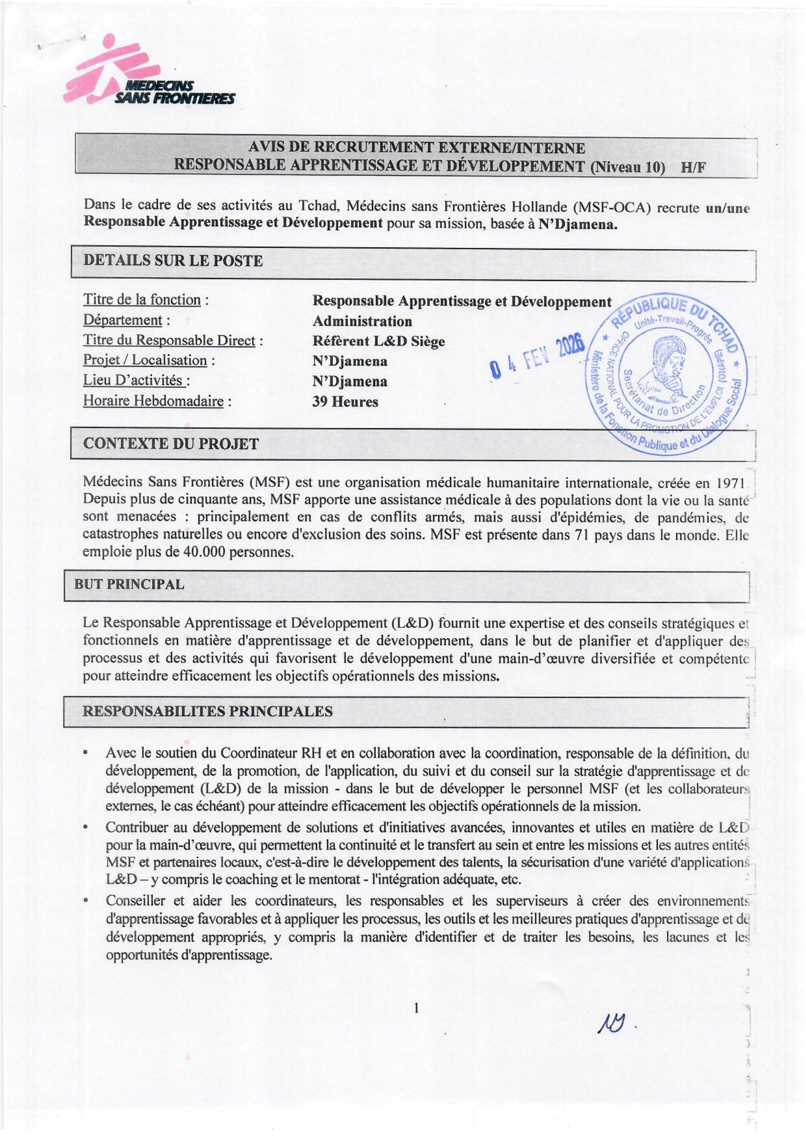 Médecins Sans Frontières (MSF) recrute un(e) Responsable Apprentissage et Développement au Tchad, poste basé à N’Djamena