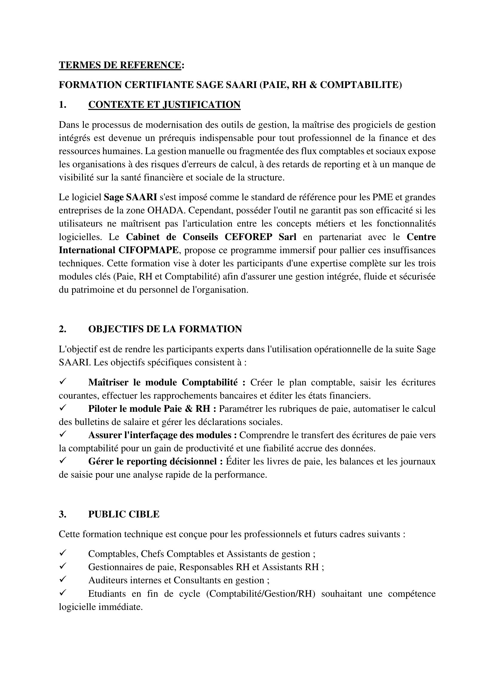 Accueil » Opportunités » Afrique » Tchad » Participez à la Formation certifiante en SAGE SAARI (PAIE, RH & COMPTABILITE)