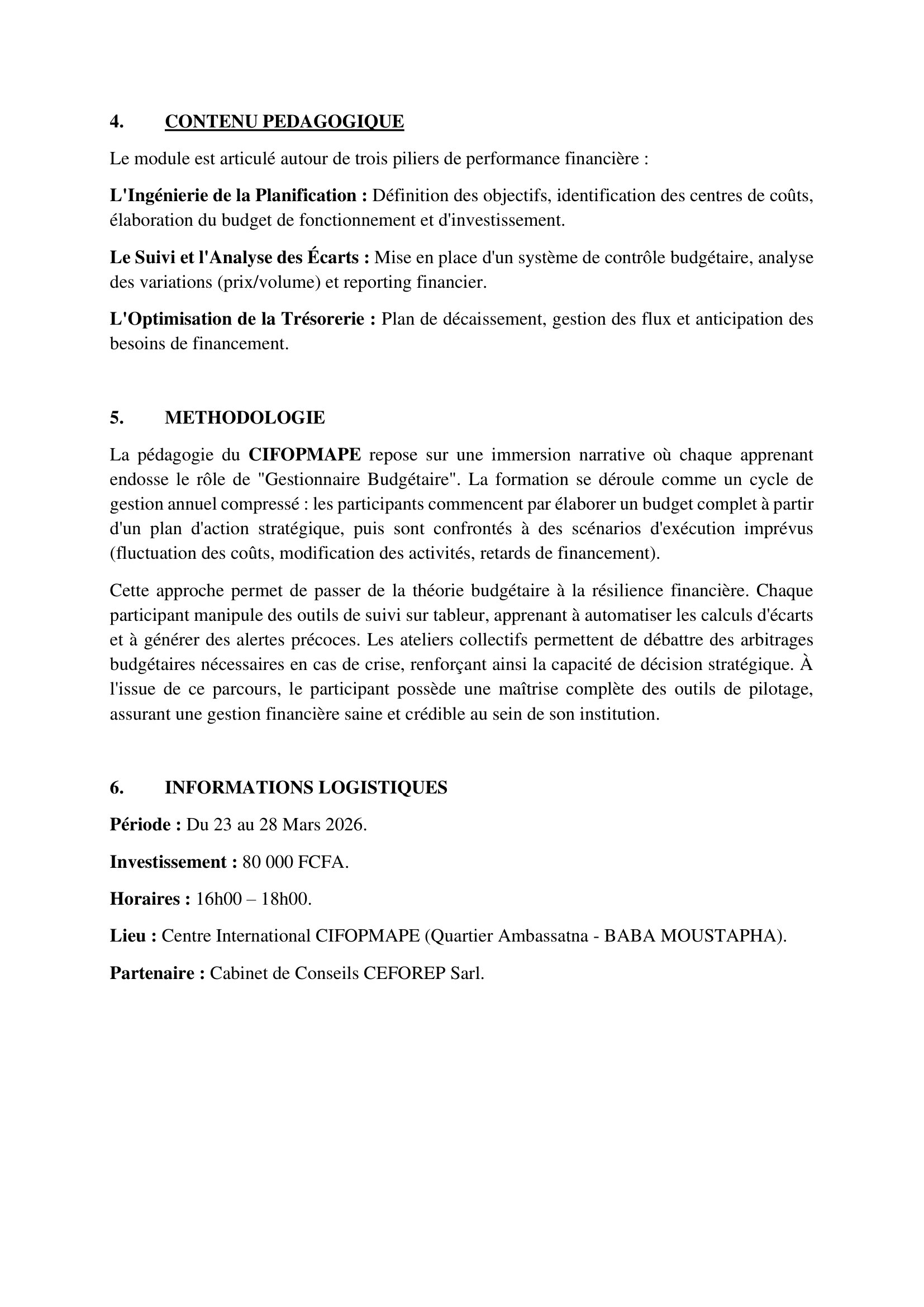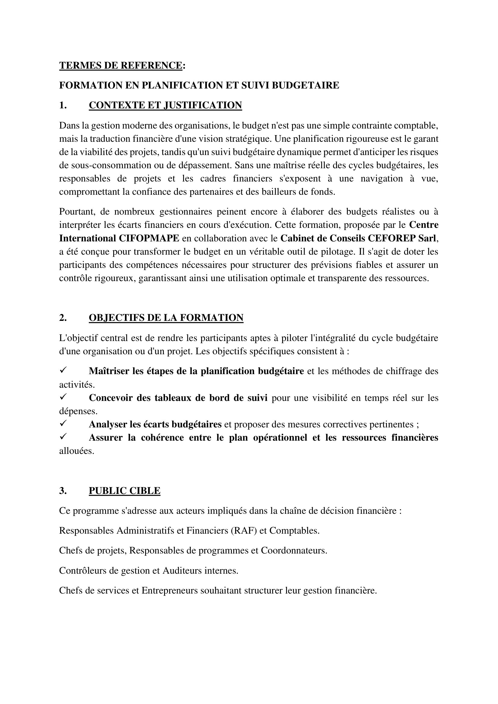 Accueil » Opportunités » Afrique » Tchad » Renforcez vos compétences en Planification et Suivi Budgétaire à l’aide de la Formation certifiante organisée par le Centre CIFOPMAPE et le Cabinet CEFOREP Sarl
