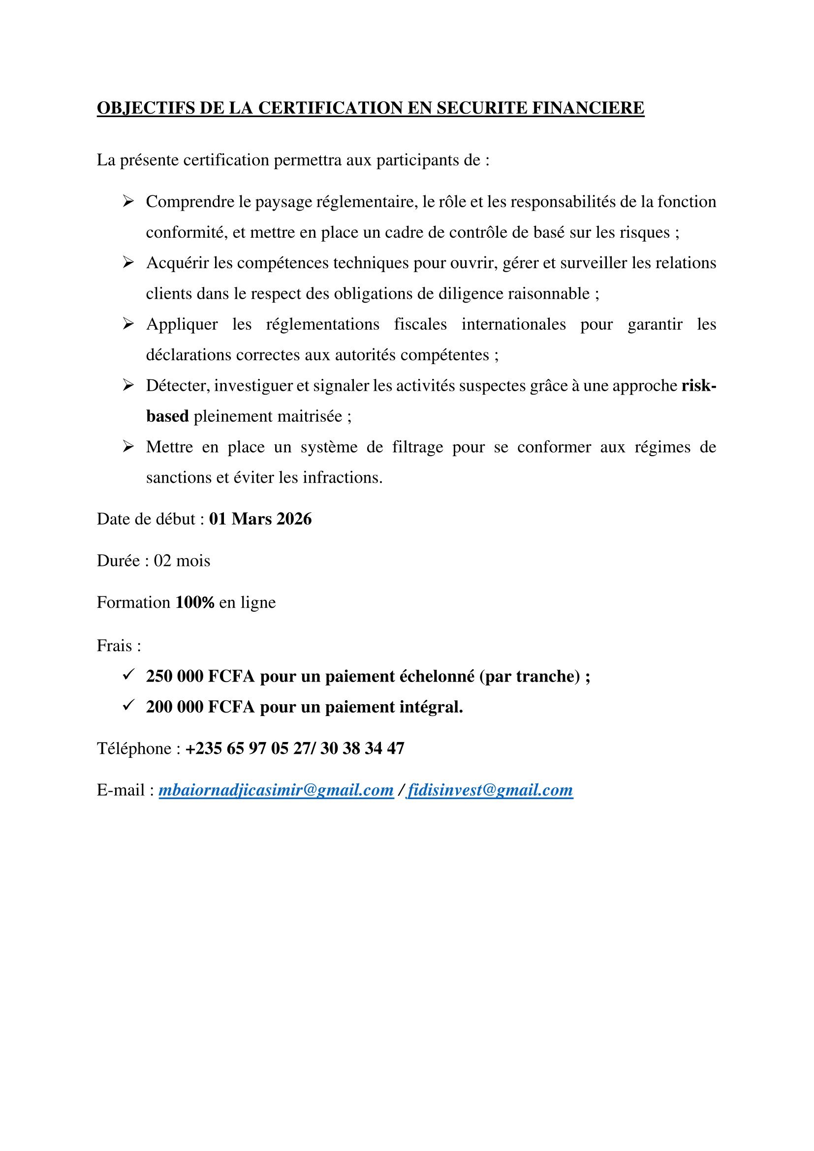 Participez à la formation certifiante en sécurité financière organisée par Ceforep SARL, Fidis Invest et KSBC
