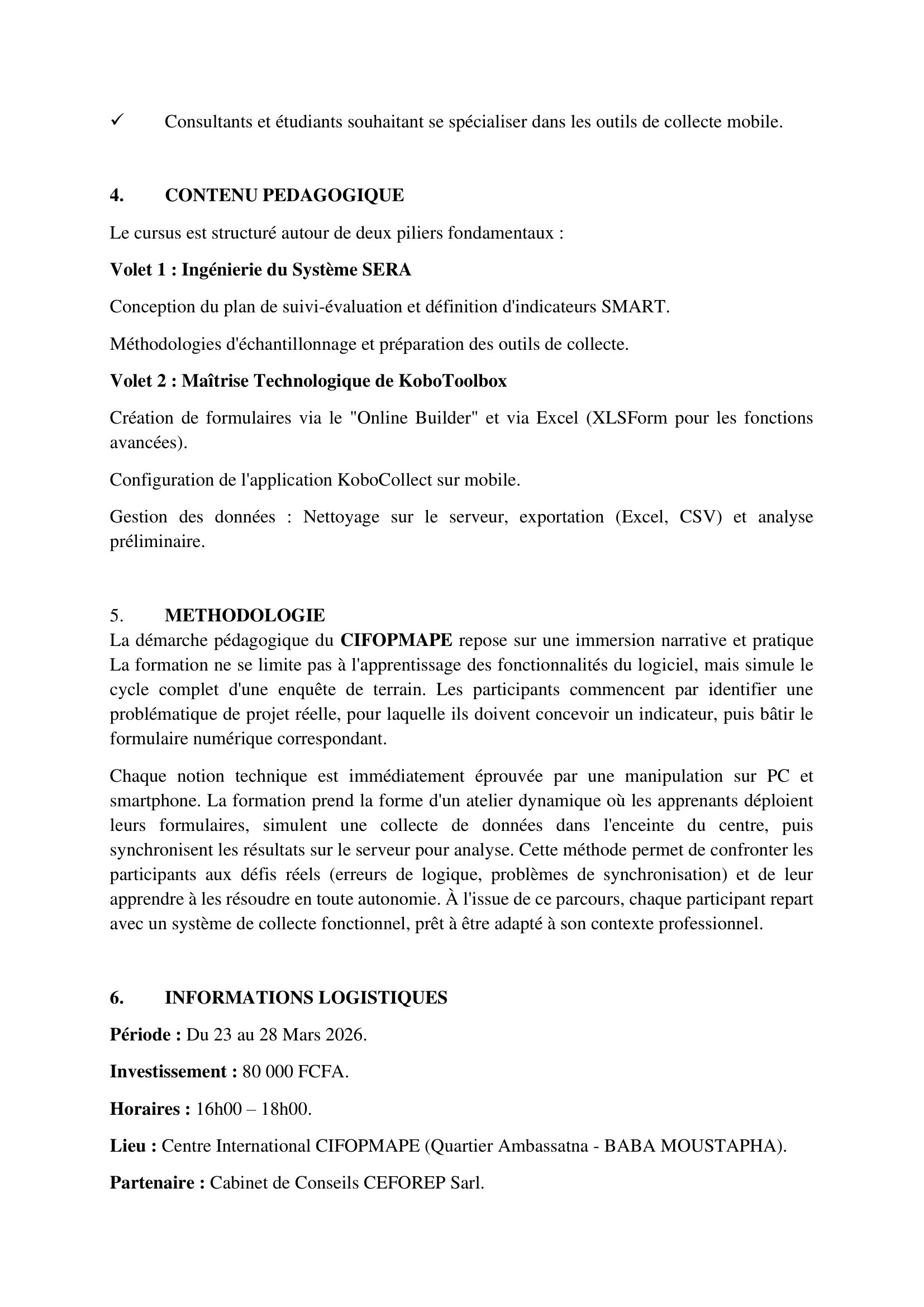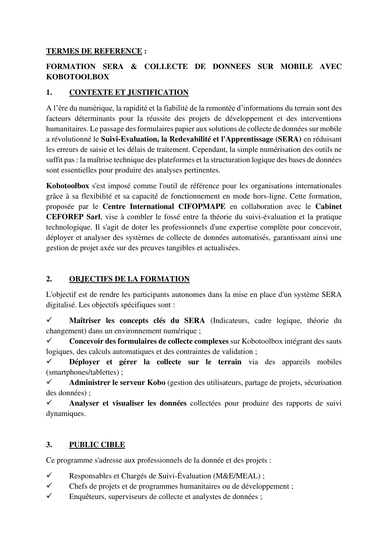 Accueil » Opportunités » Afrique » Tchad » Participez à la formation certifiante sur le SERA et la collecte de données mobile avec KoboToolbox