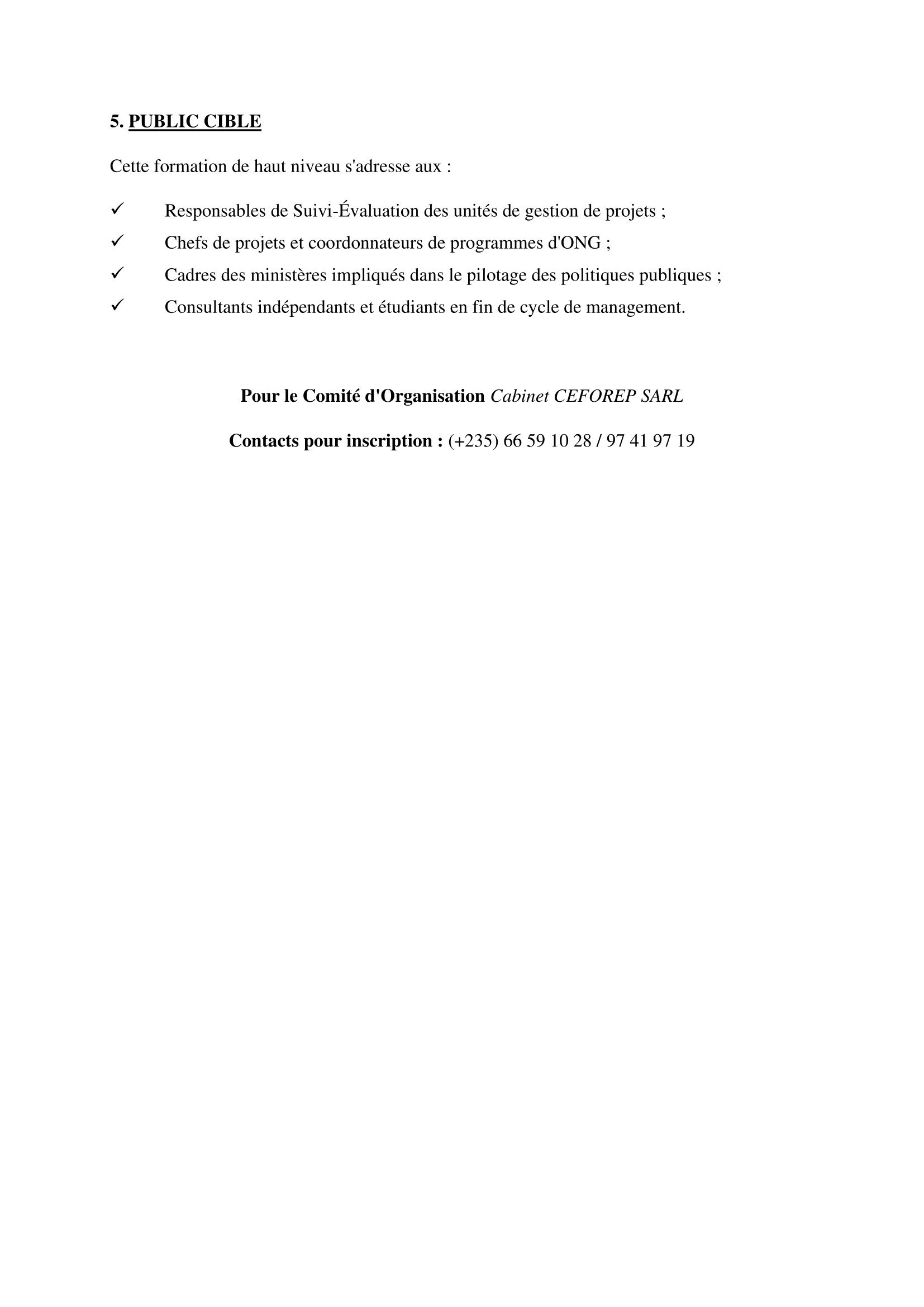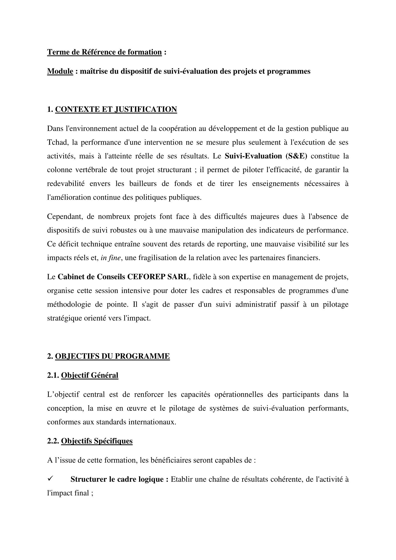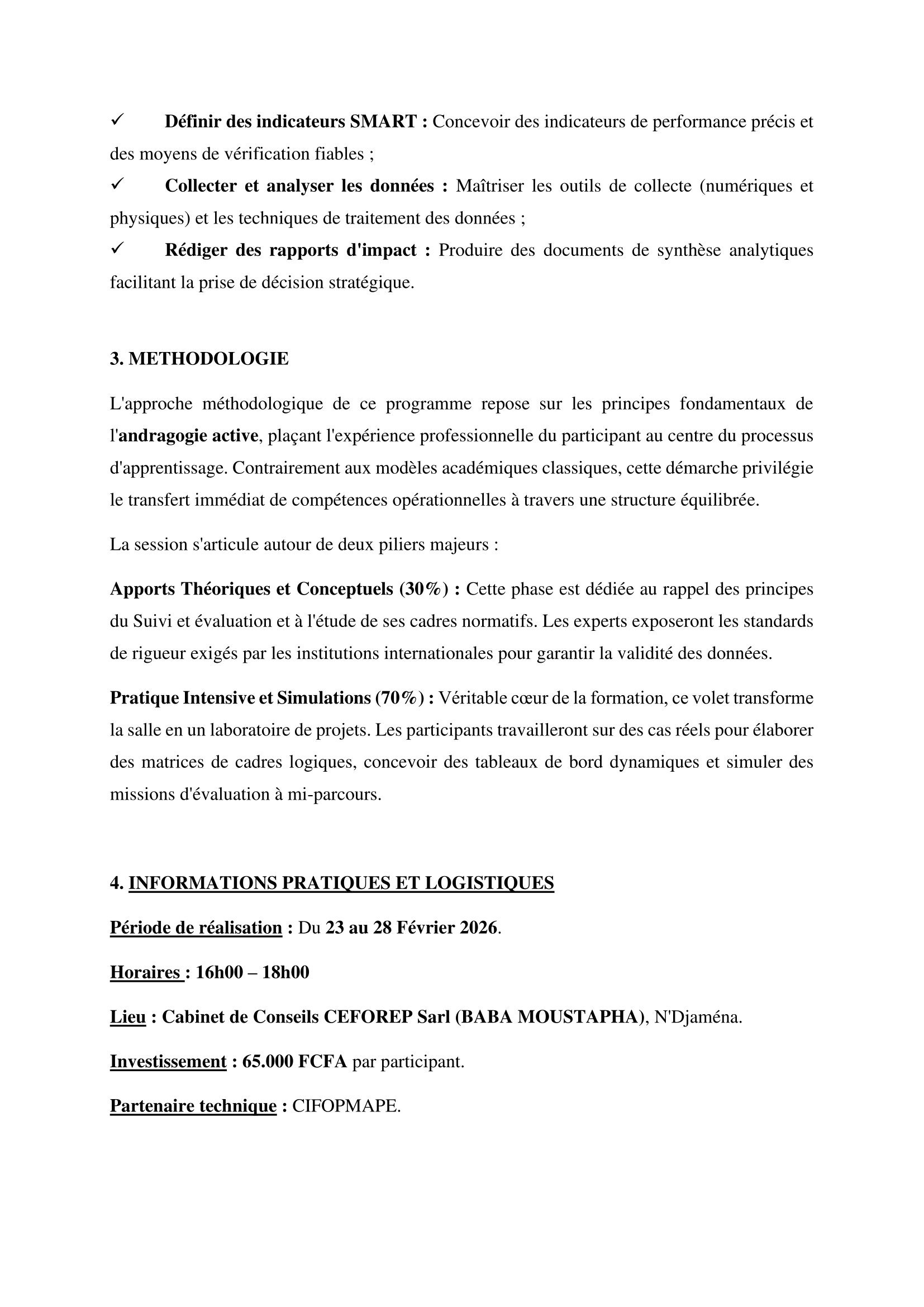 Accueil » Opportunités » Afrique » Tchad » Formation certifiante en suivi-évaluation des projets et programmes à N’Djamena, Tchad